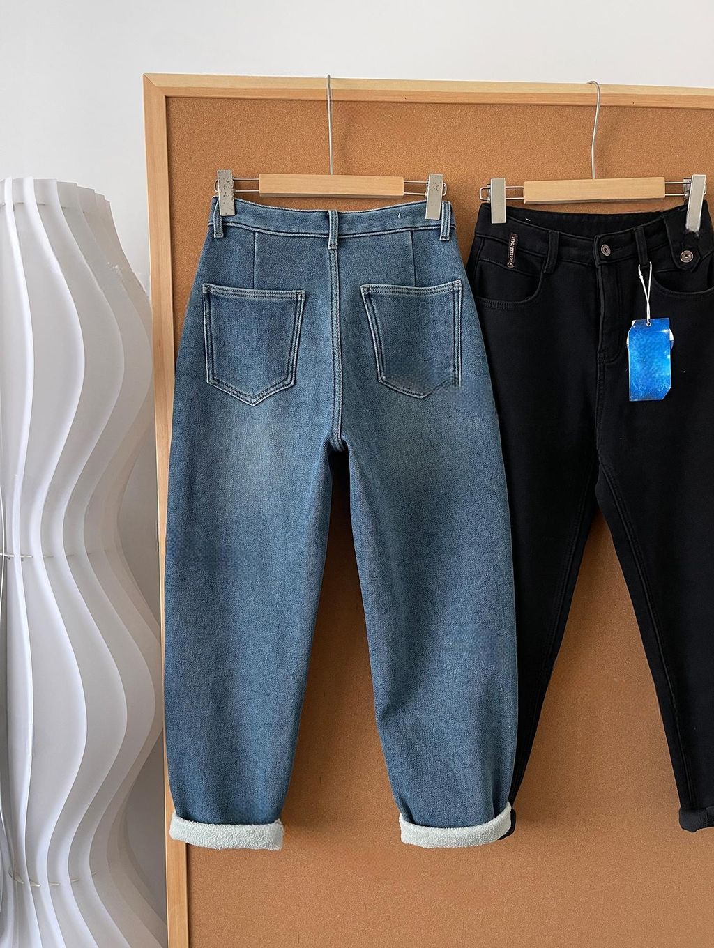 冬日必備!超保暖刷毛修飾感彈力牛仔褲 *黑藍*S-XL【S1216-23】