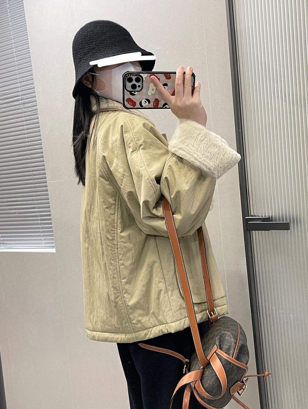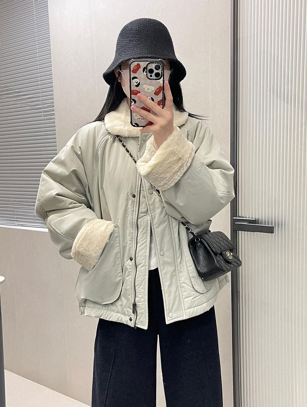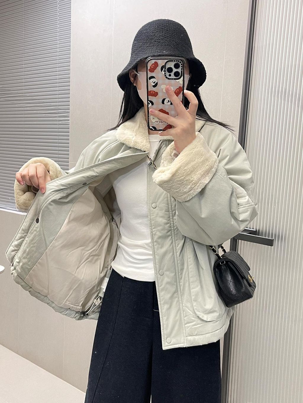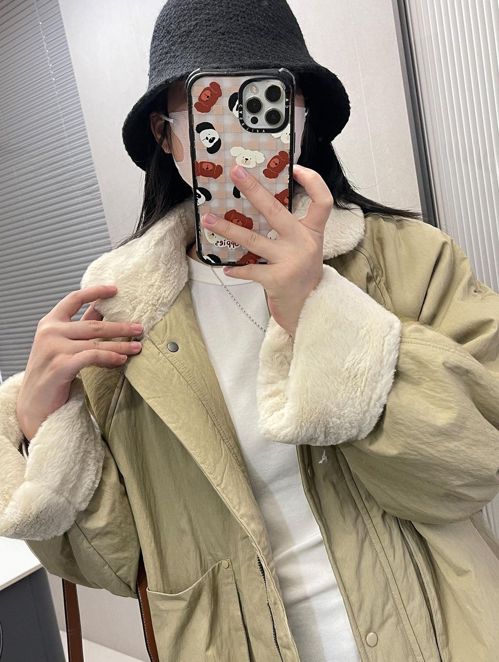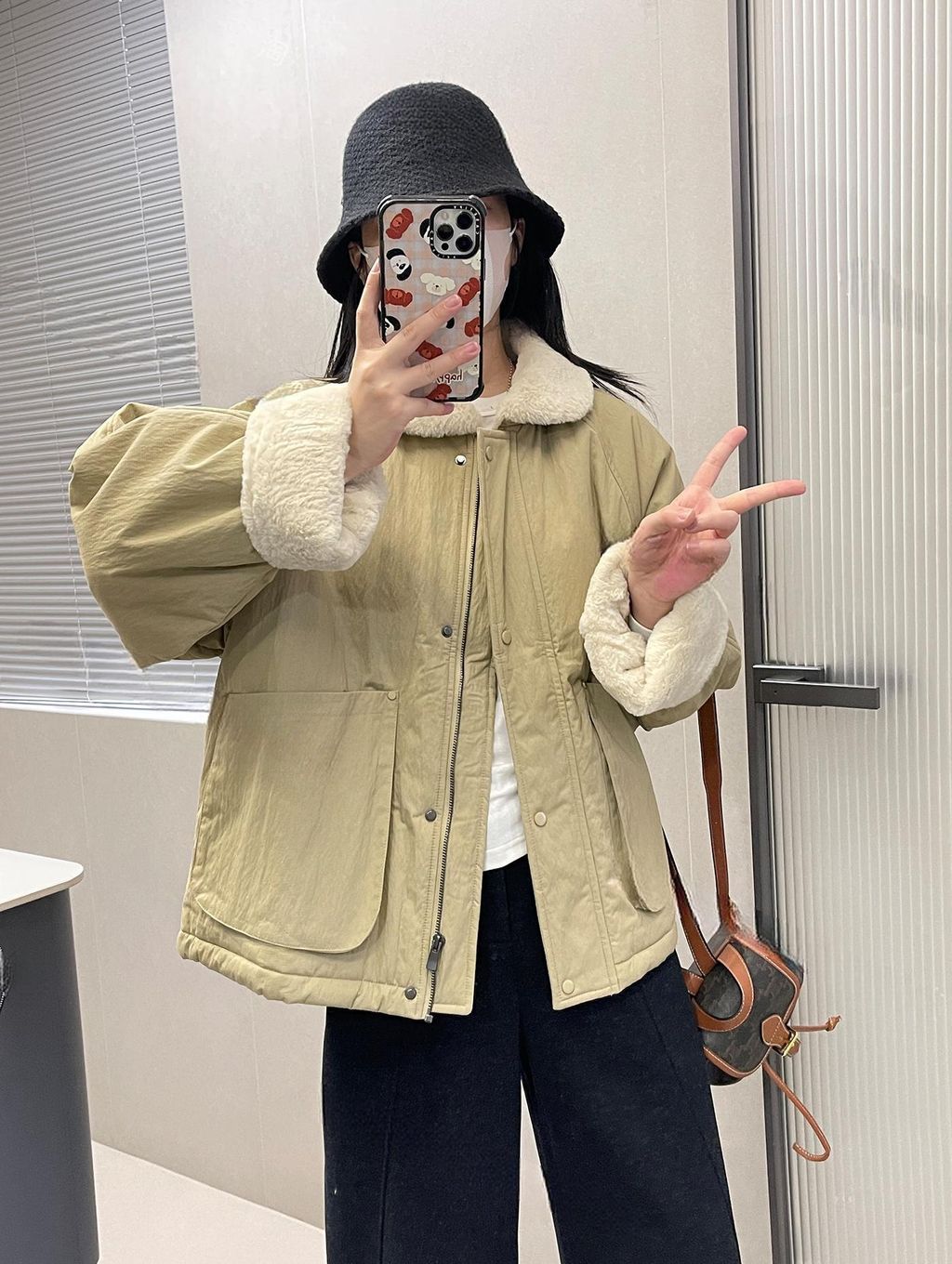 北歐風格拼接毛毛質感保暖鋪棉外套*卡其灰藍*【S1216-31】