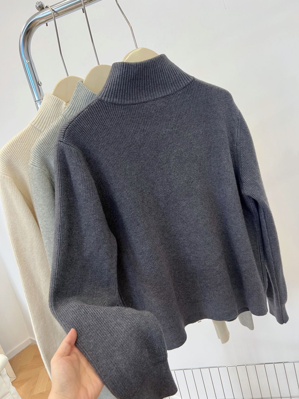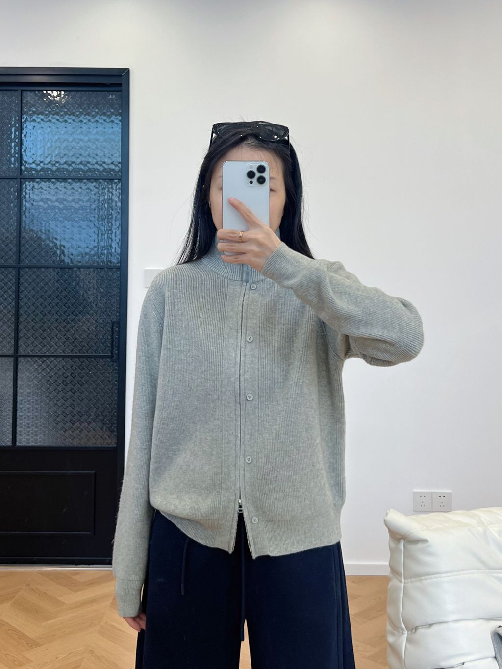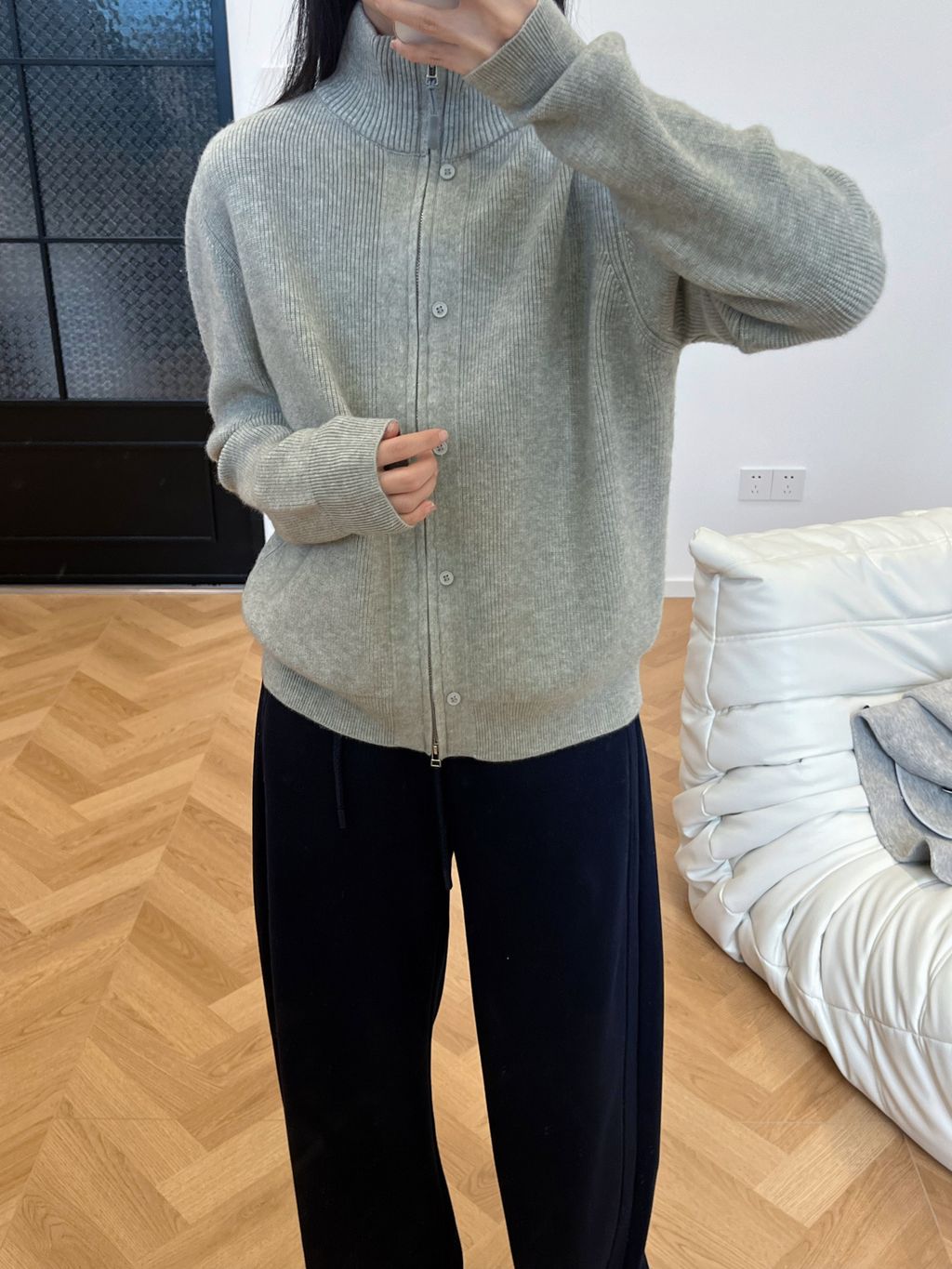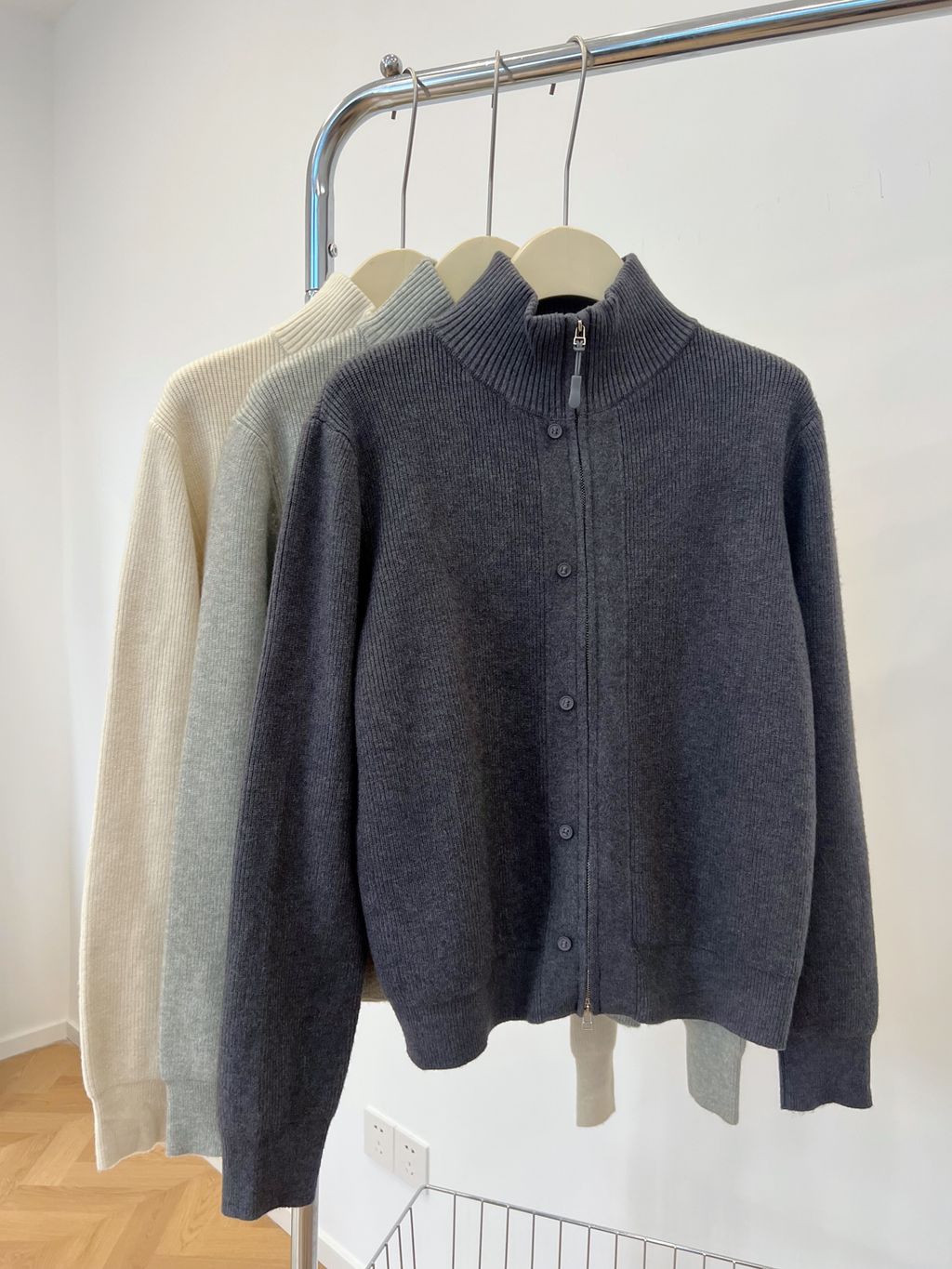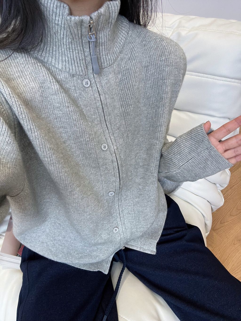 回饋特價!可愛雙拉鍊小扣子針織毛衣外套*淺灰深灰杏*【S1216-180】