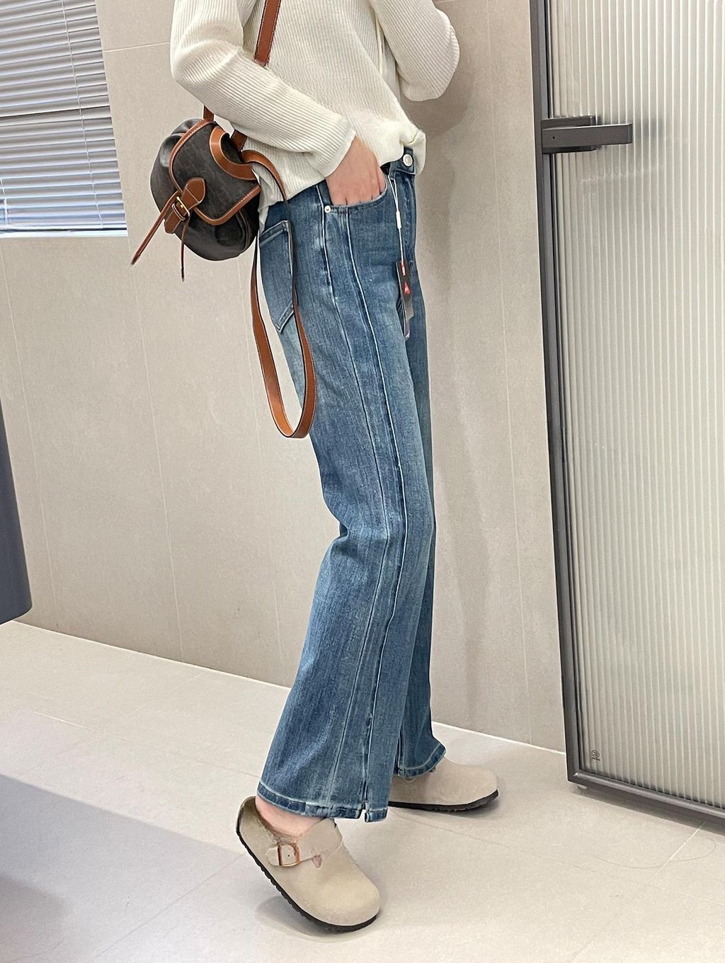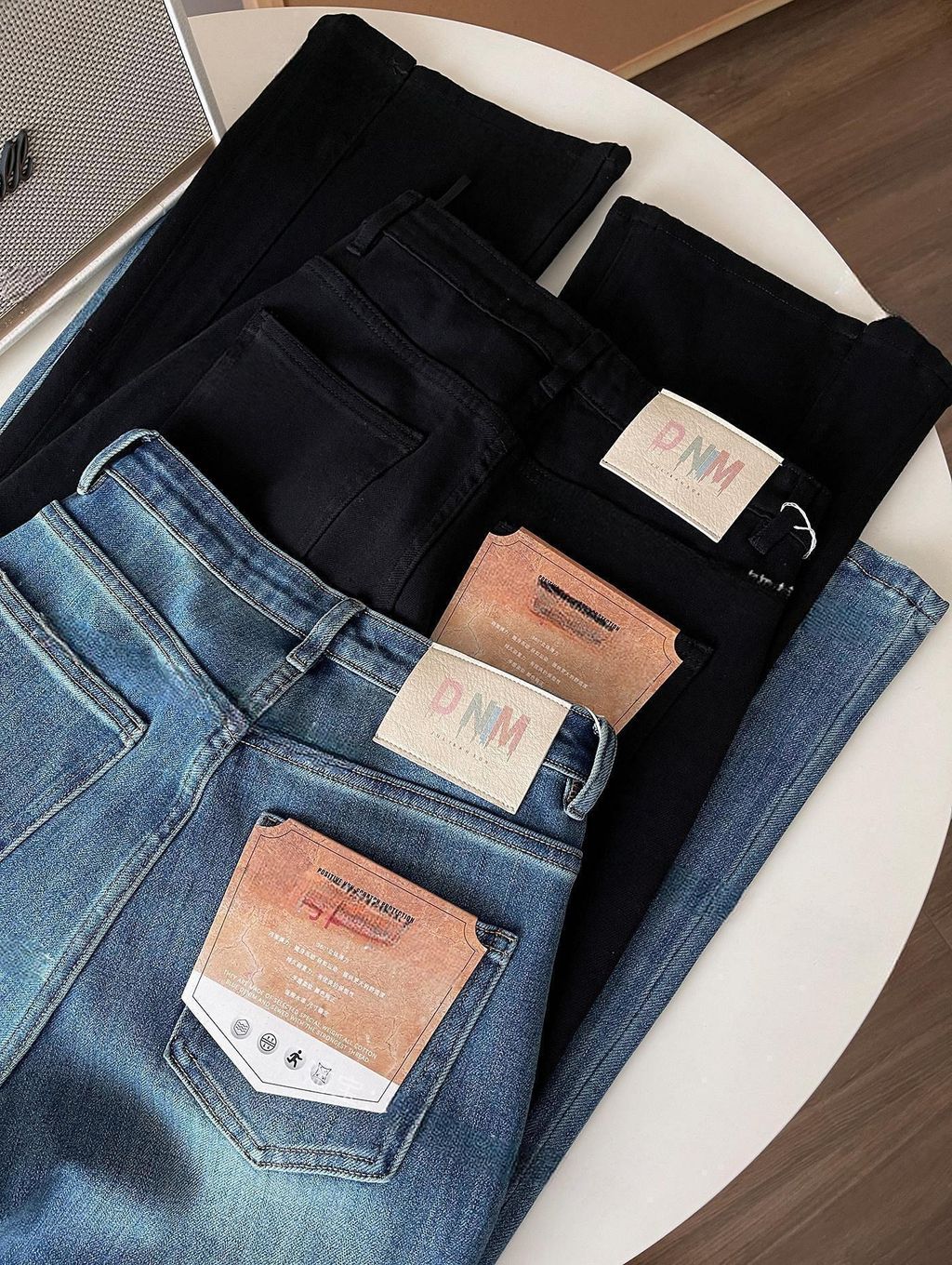 復古刷色拼接設計顯瘦彈力牛仔褲 *黑藍*26-30【S1216-10】