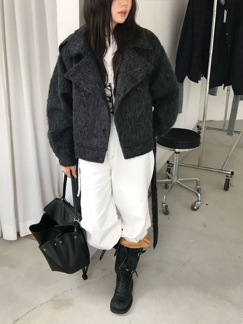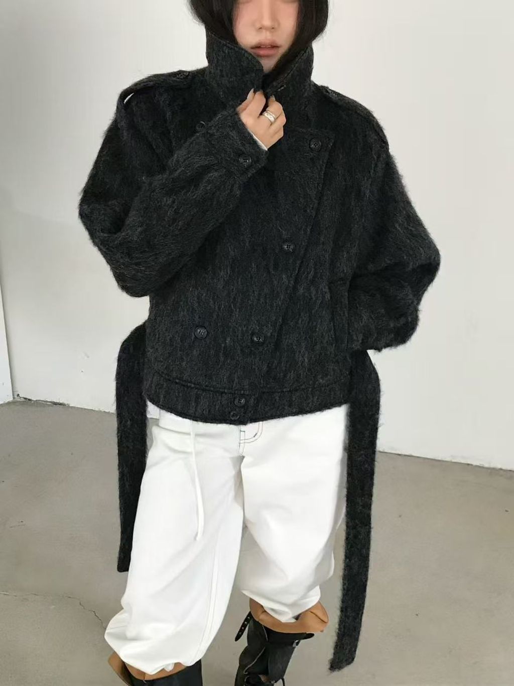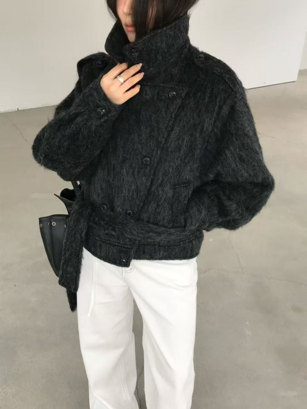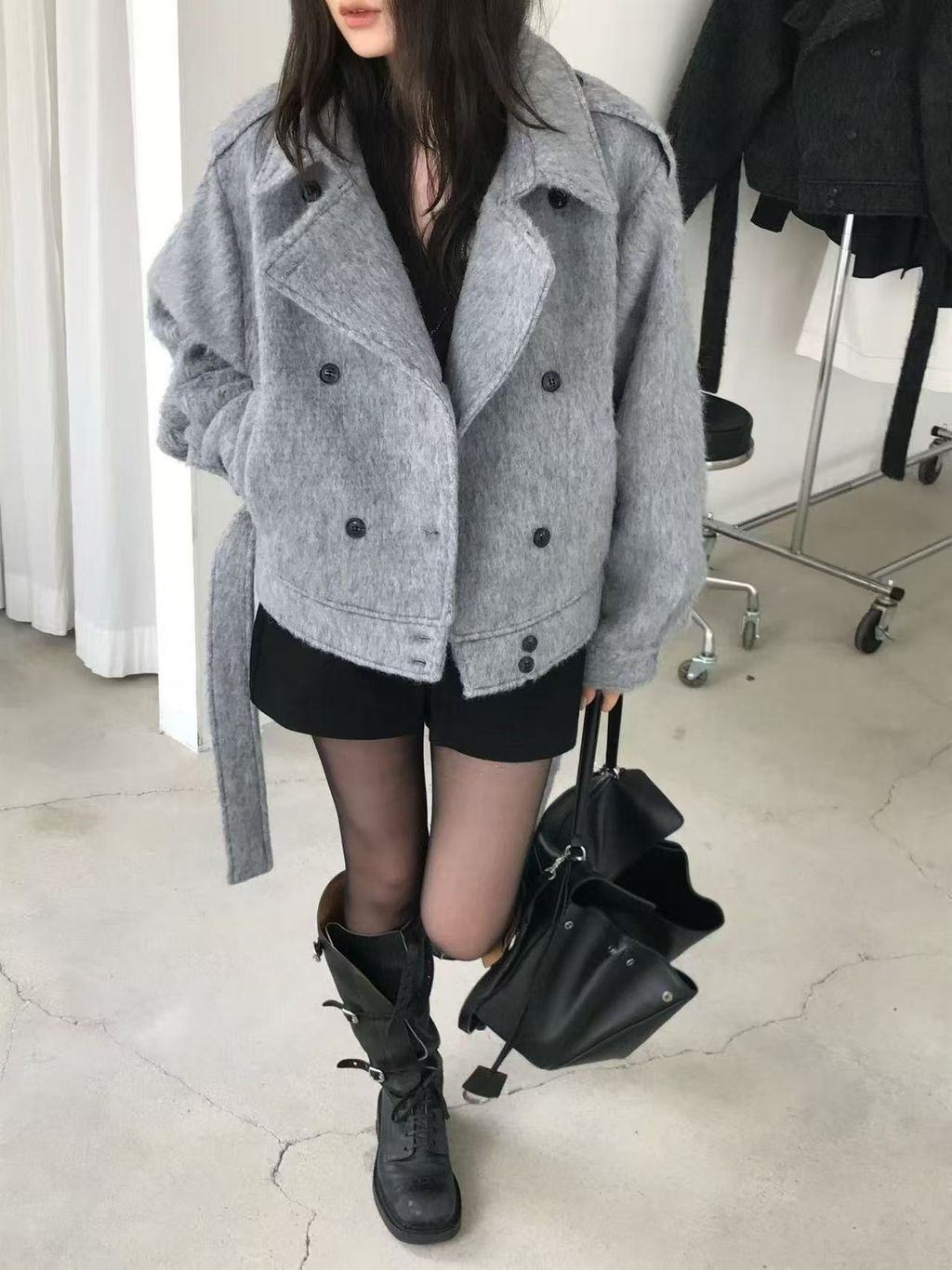 正韓 個性復古雙排釦翻領羊毛大衣外套*黑灰淺灰*【S1216-138】