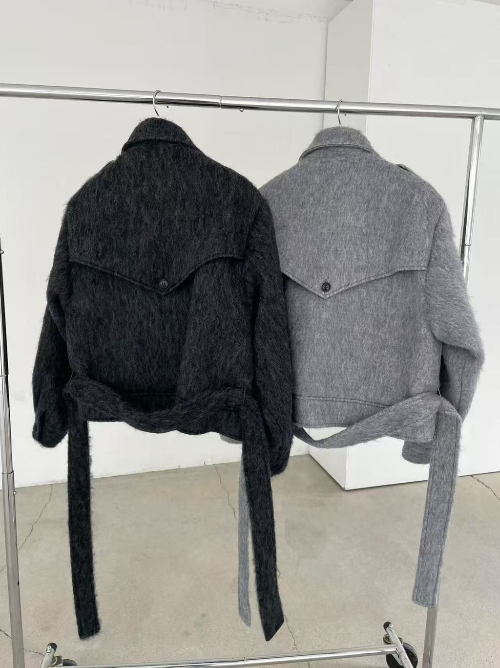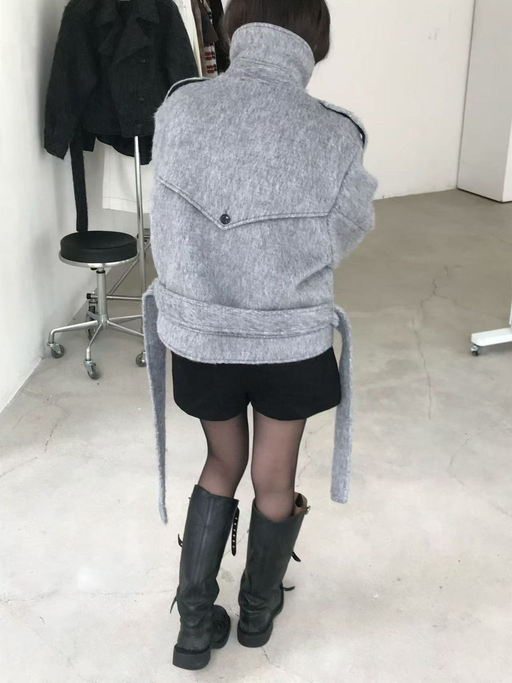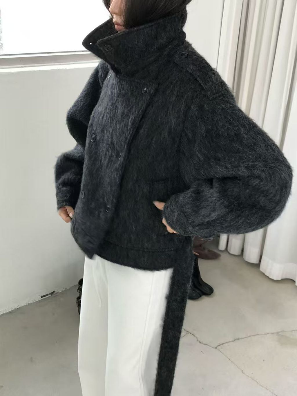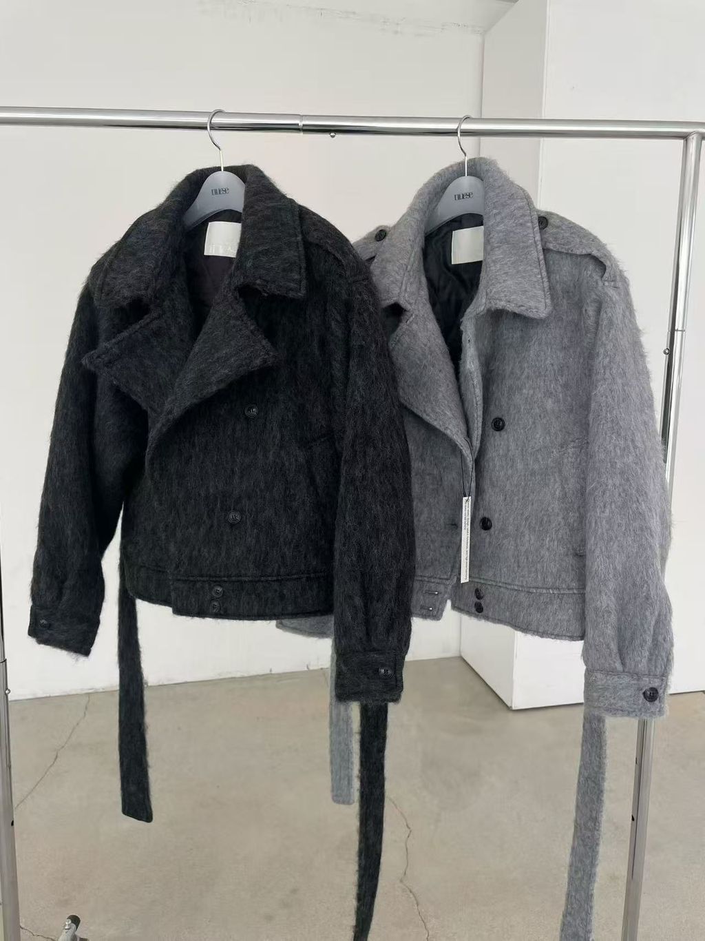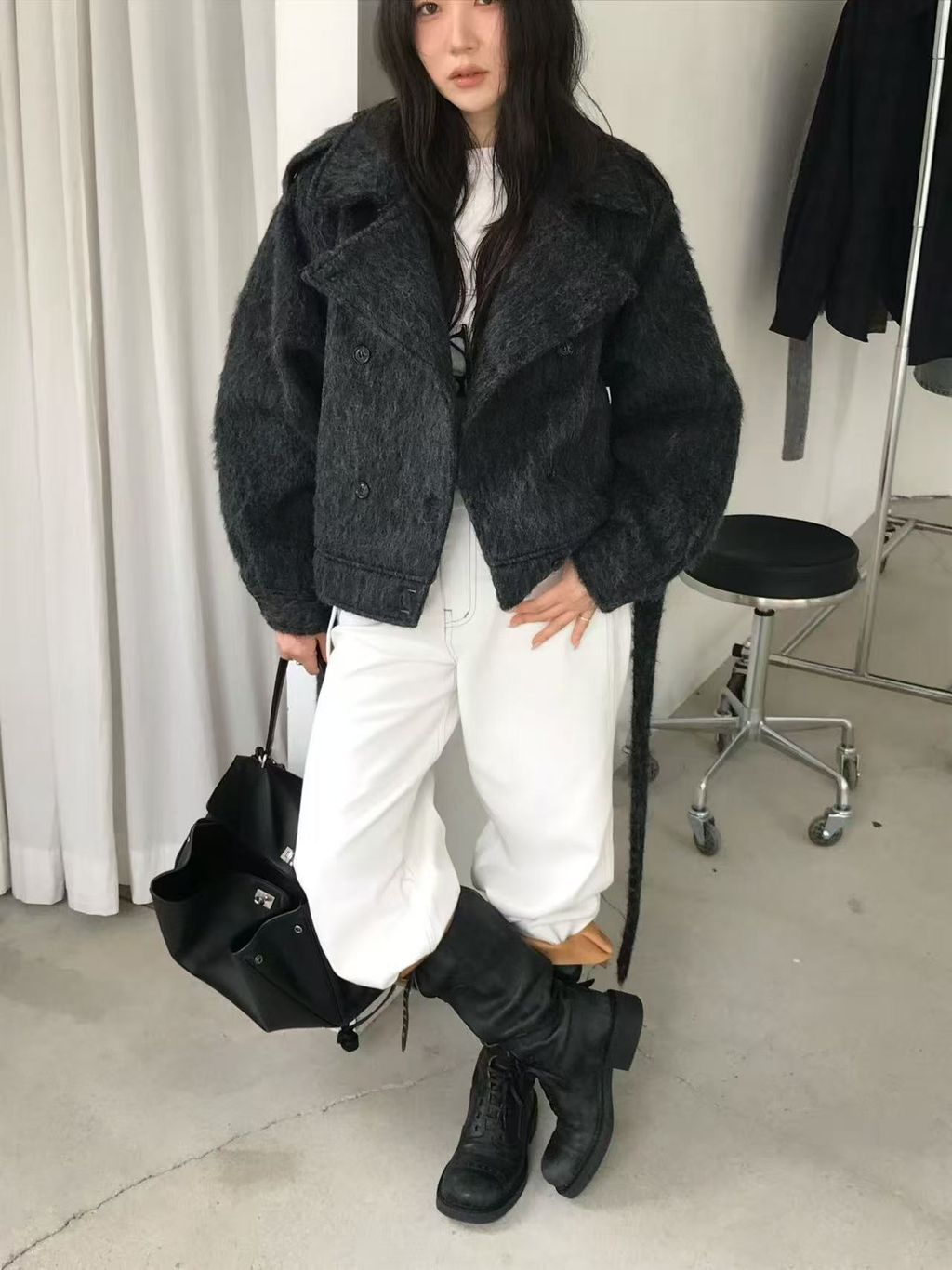 正韓 個性復古雙排釦翻領羊毛大衣外套*黑灰淺灰*【S1216-138】