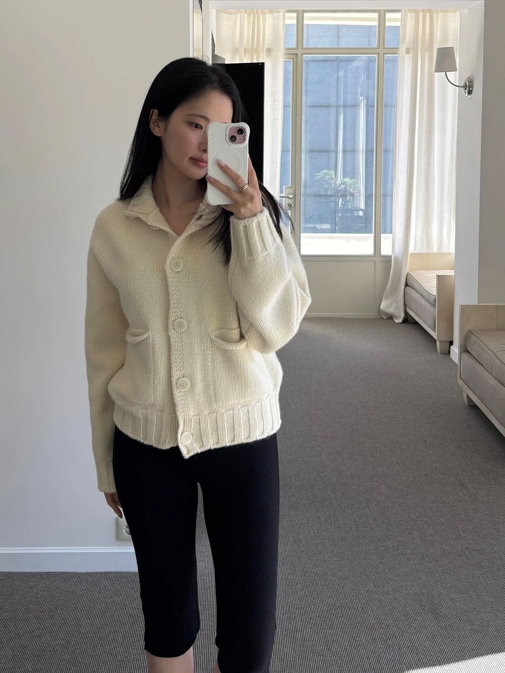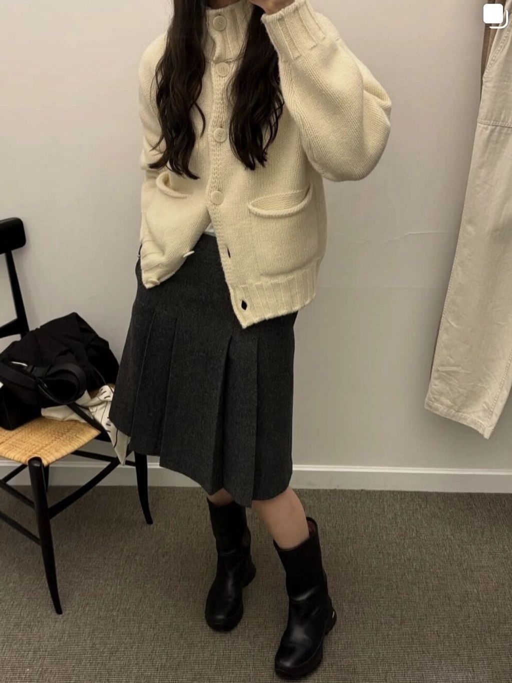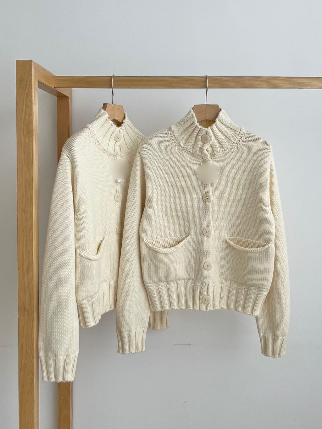 正韓 可愛女孩捲邊質感羊毛針織毛衣外套*奶油米深灰*【S1216-128】