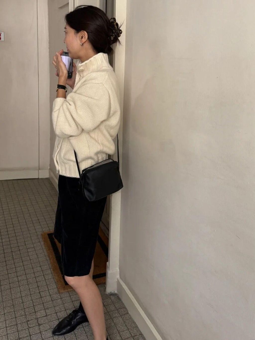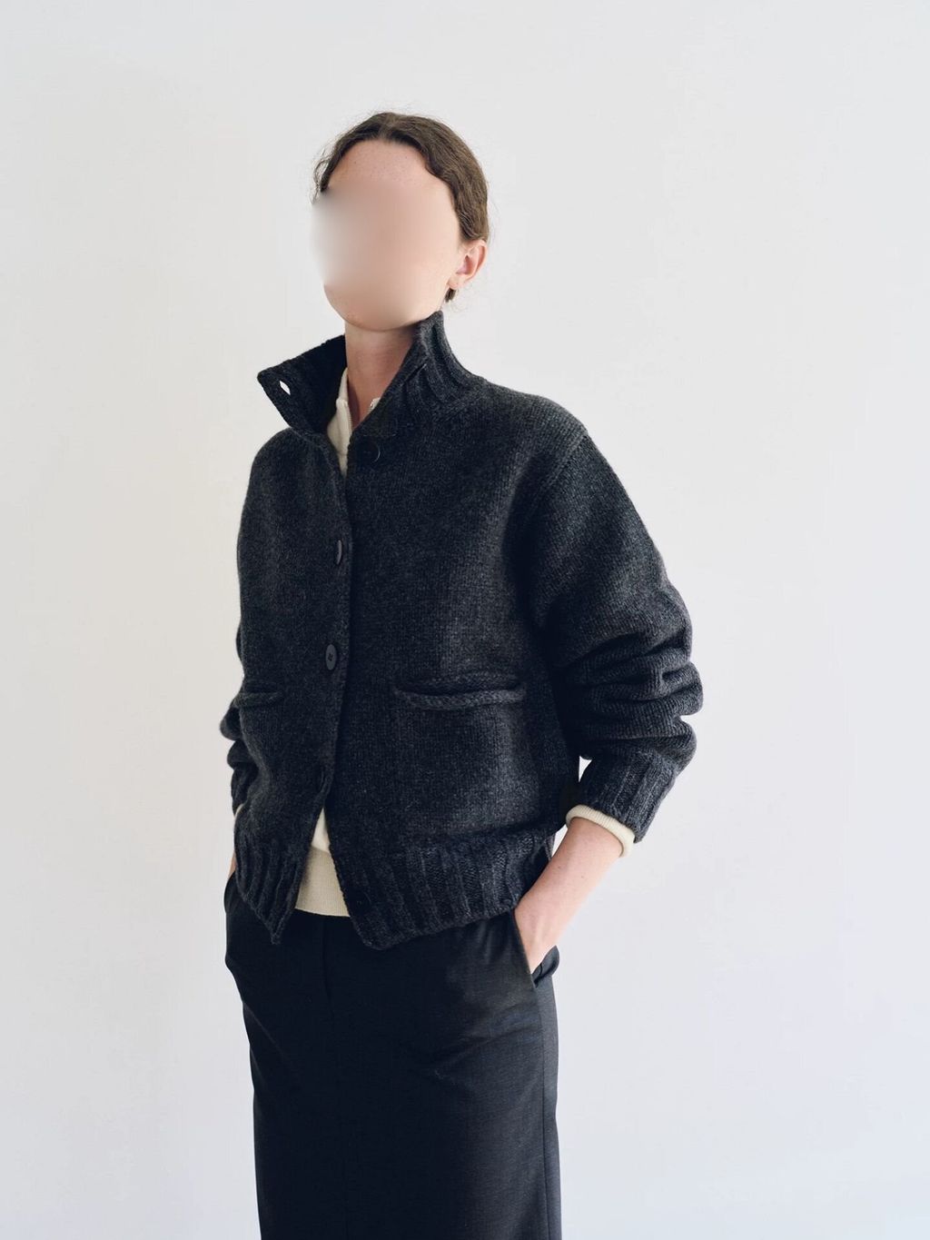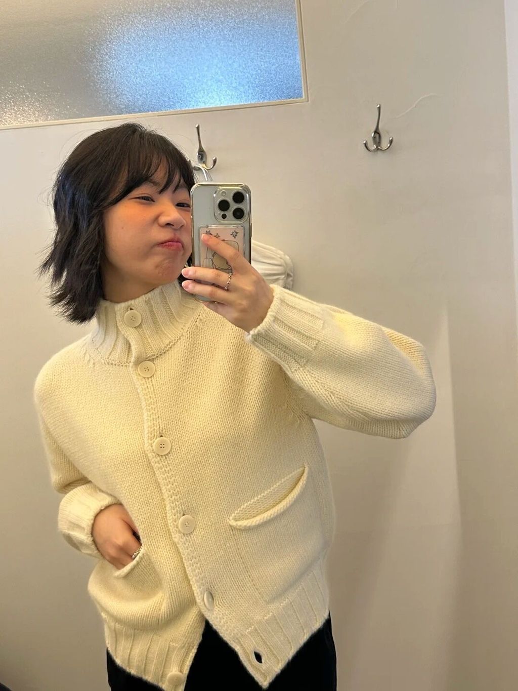 正韓 可愛女孩捲邊質感羊毛針織毛衣外套*奶油米深灰*【S1216-128】