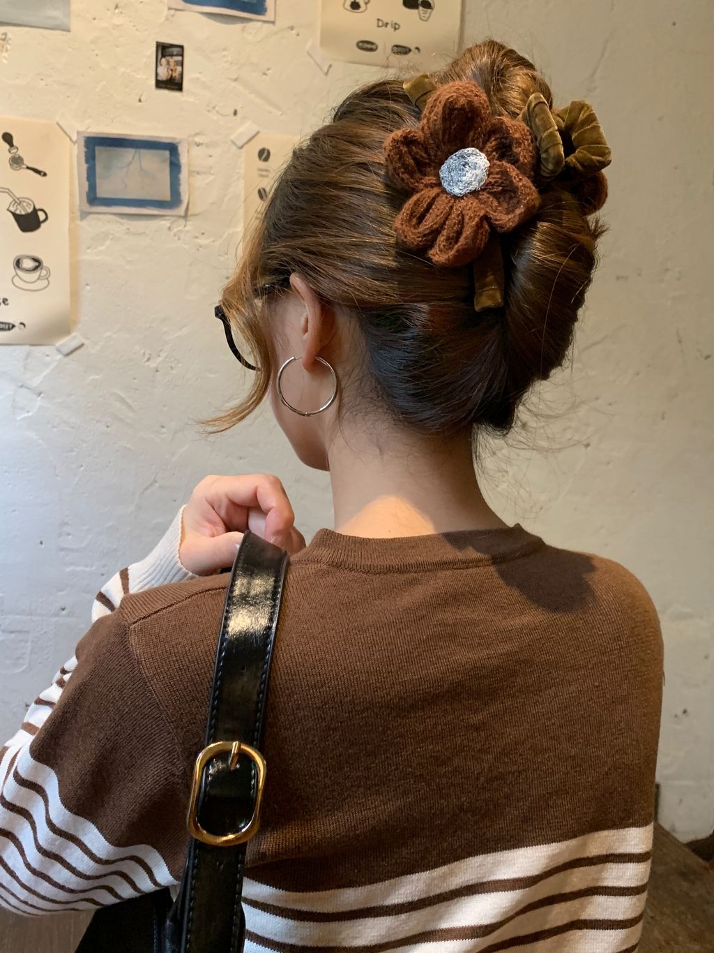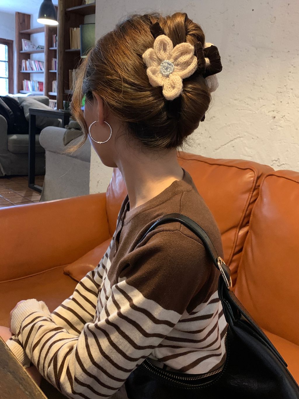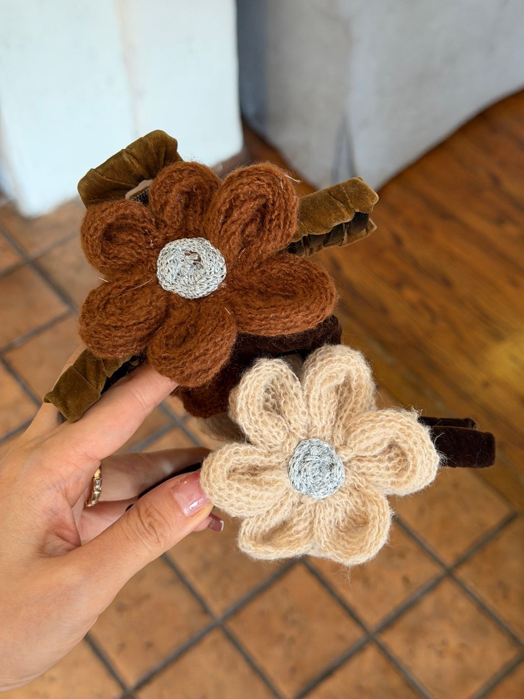 正韓 復古日系甜美毛線編織花朵髮夾*米咖*【S1216-102】