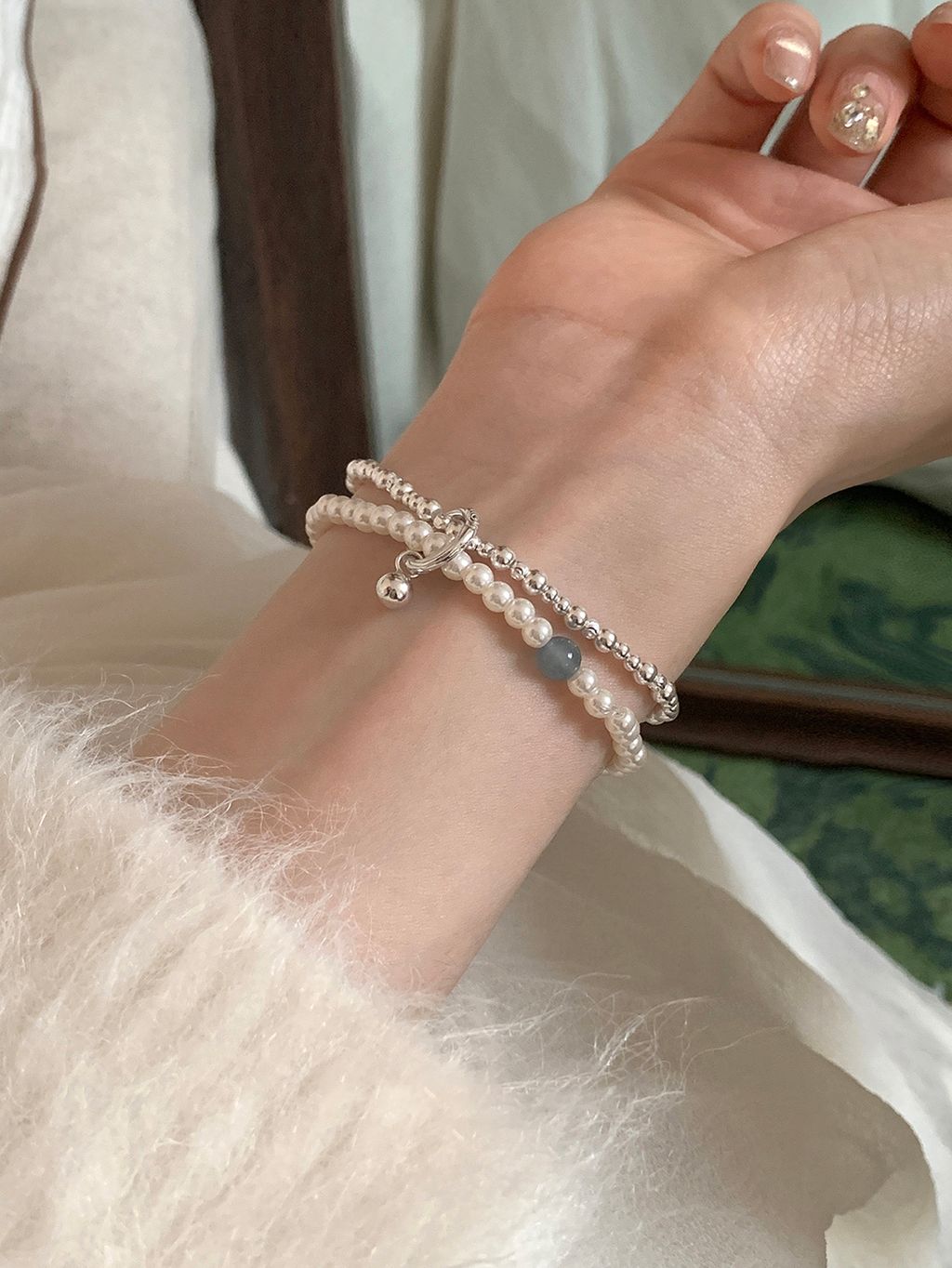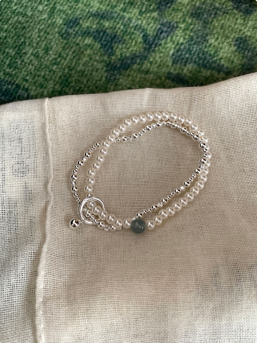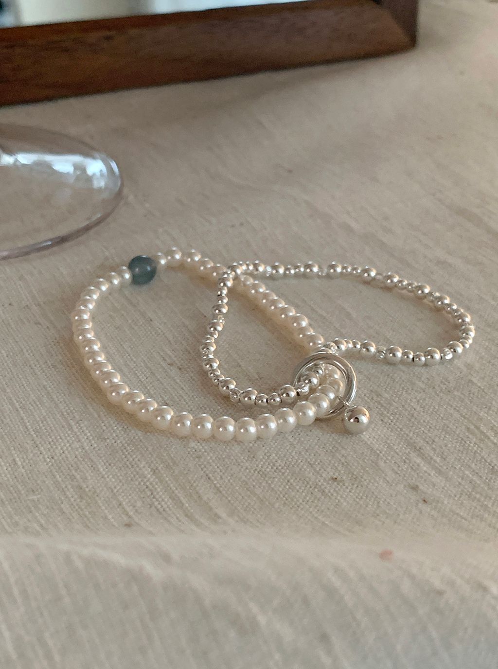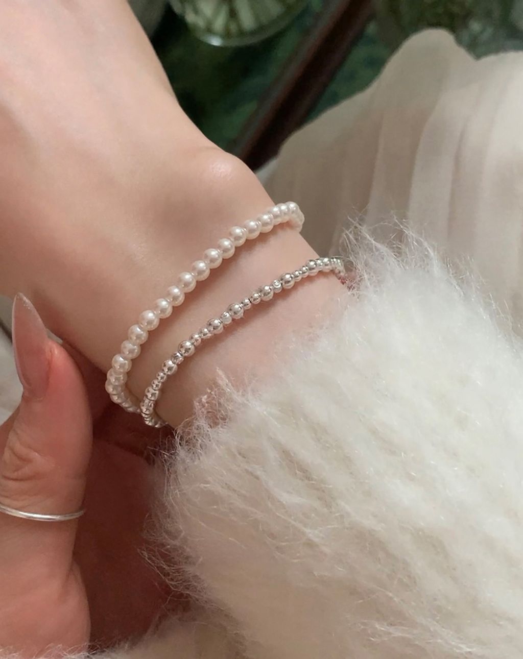 正韓 法式優雅氣質珍珠銀珠質感手鍊*銀*【S1216-78】