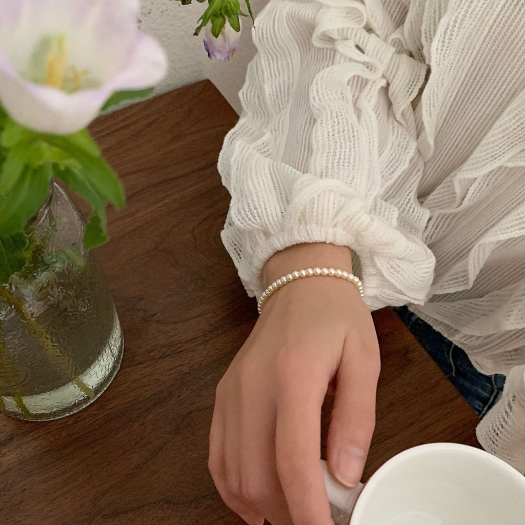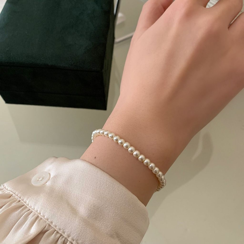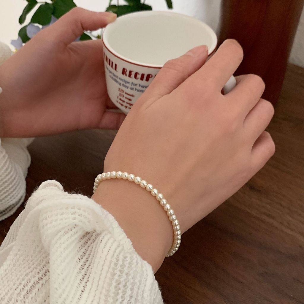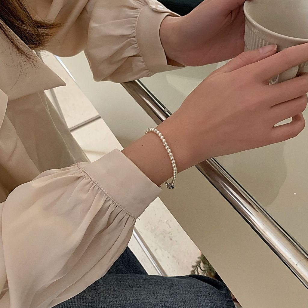 正韓 法式優雅高級珍珠純銀手鍊*銀*【S1216-104】