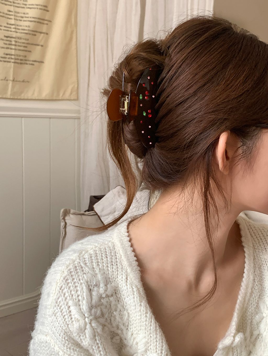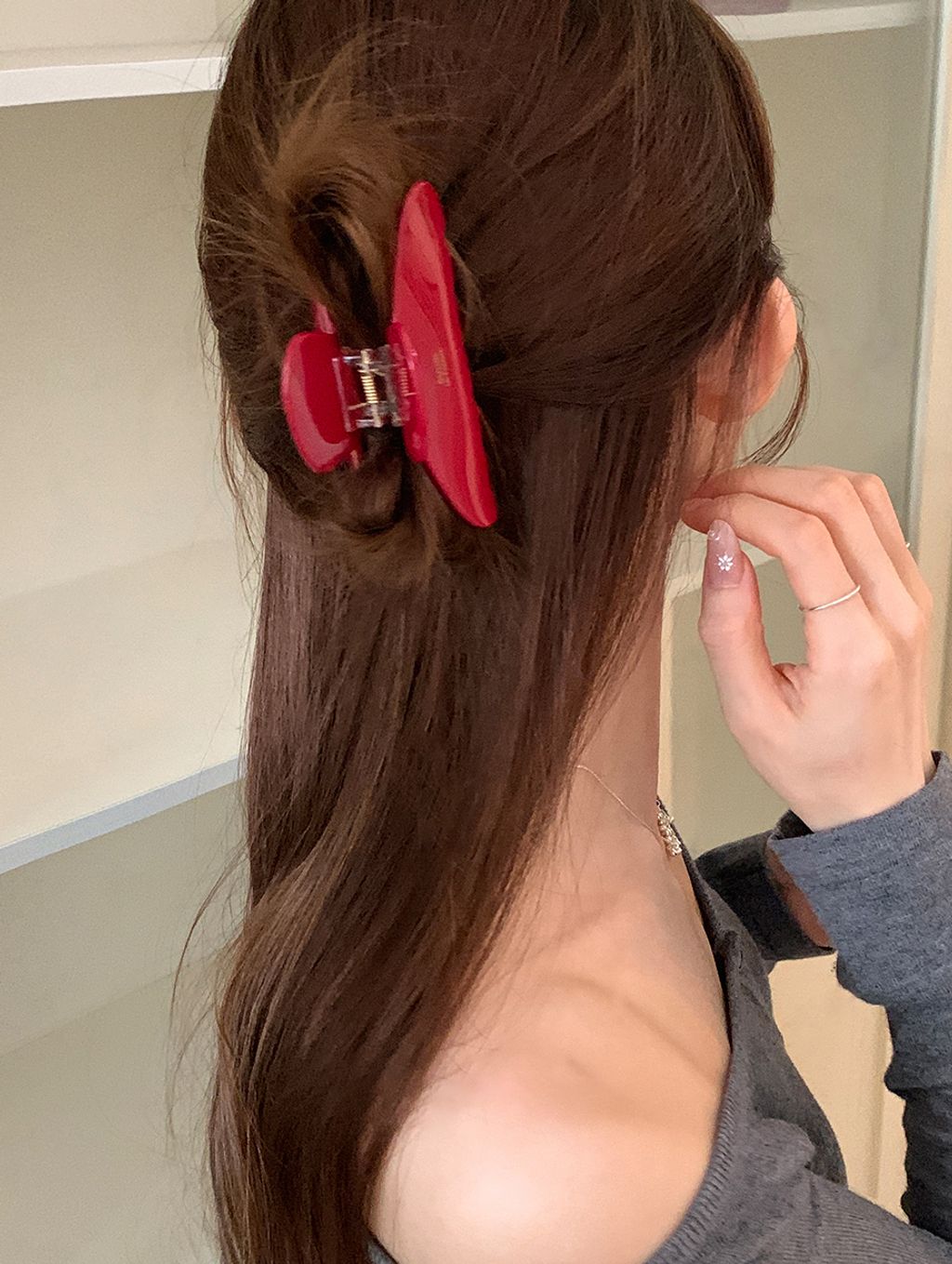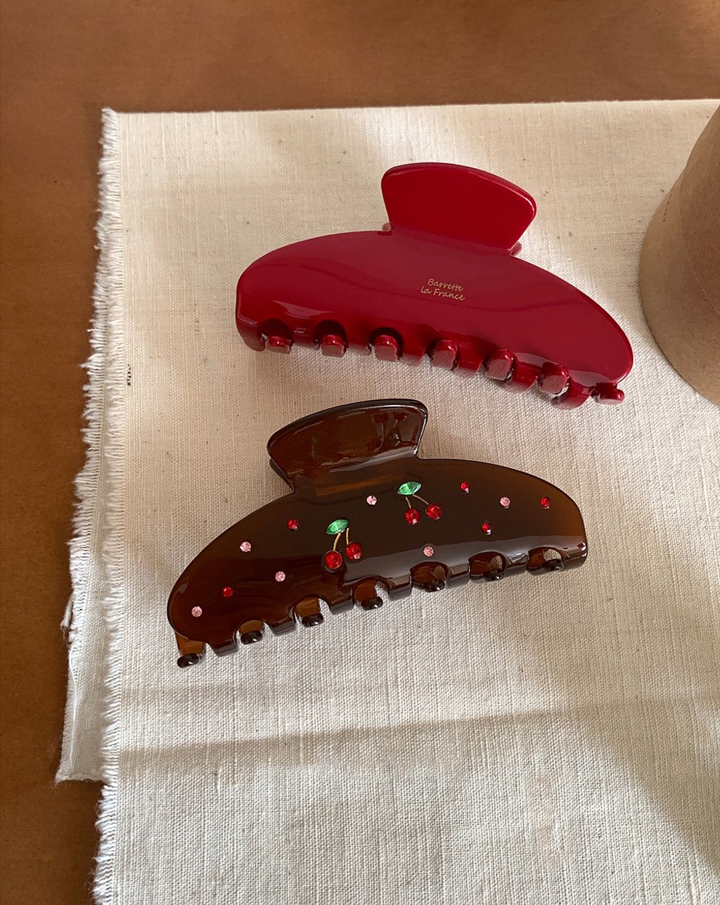 正韓 法式小金標質感水鑽櫻桃純色髮夾抓夾*紅咖*【S1216-76】