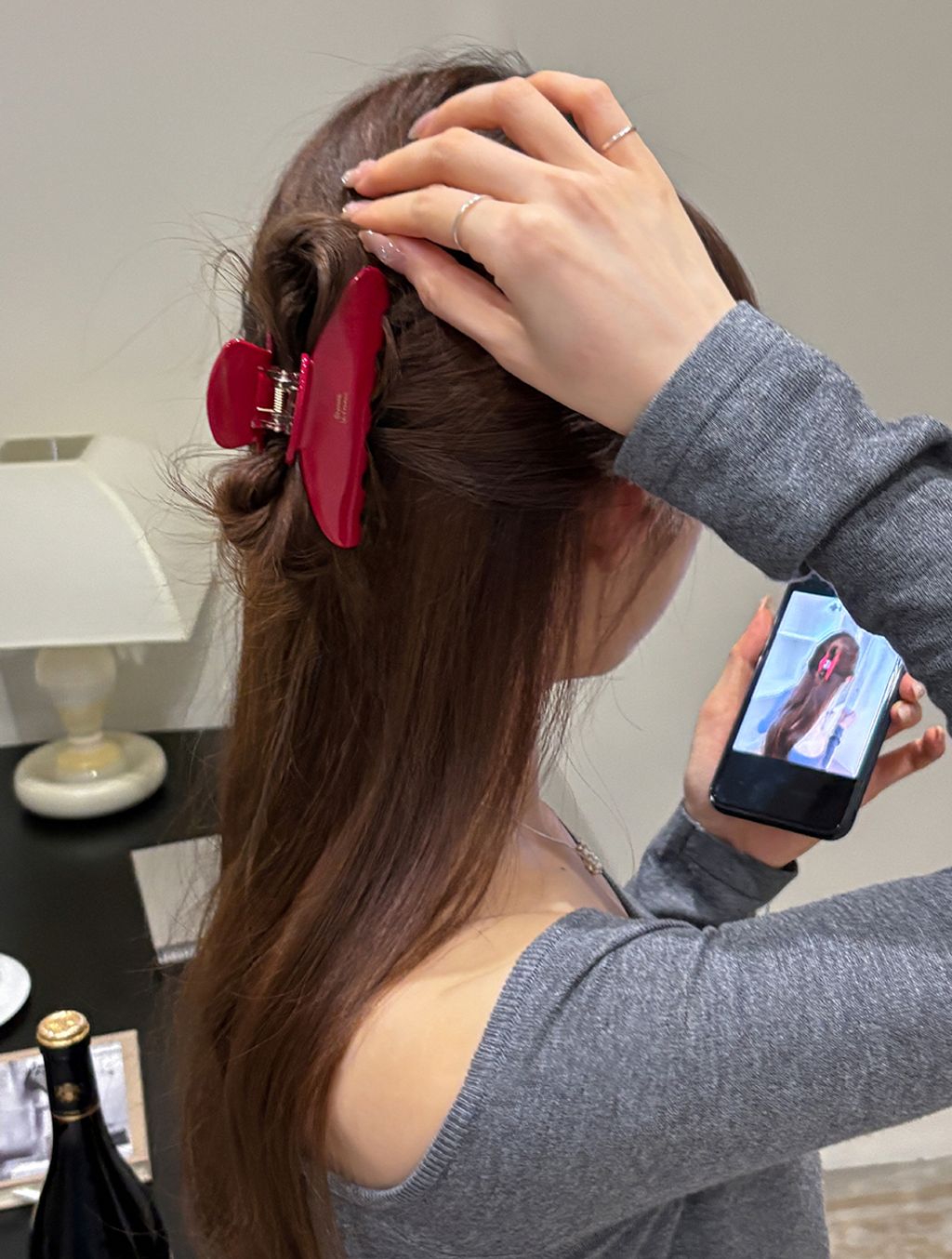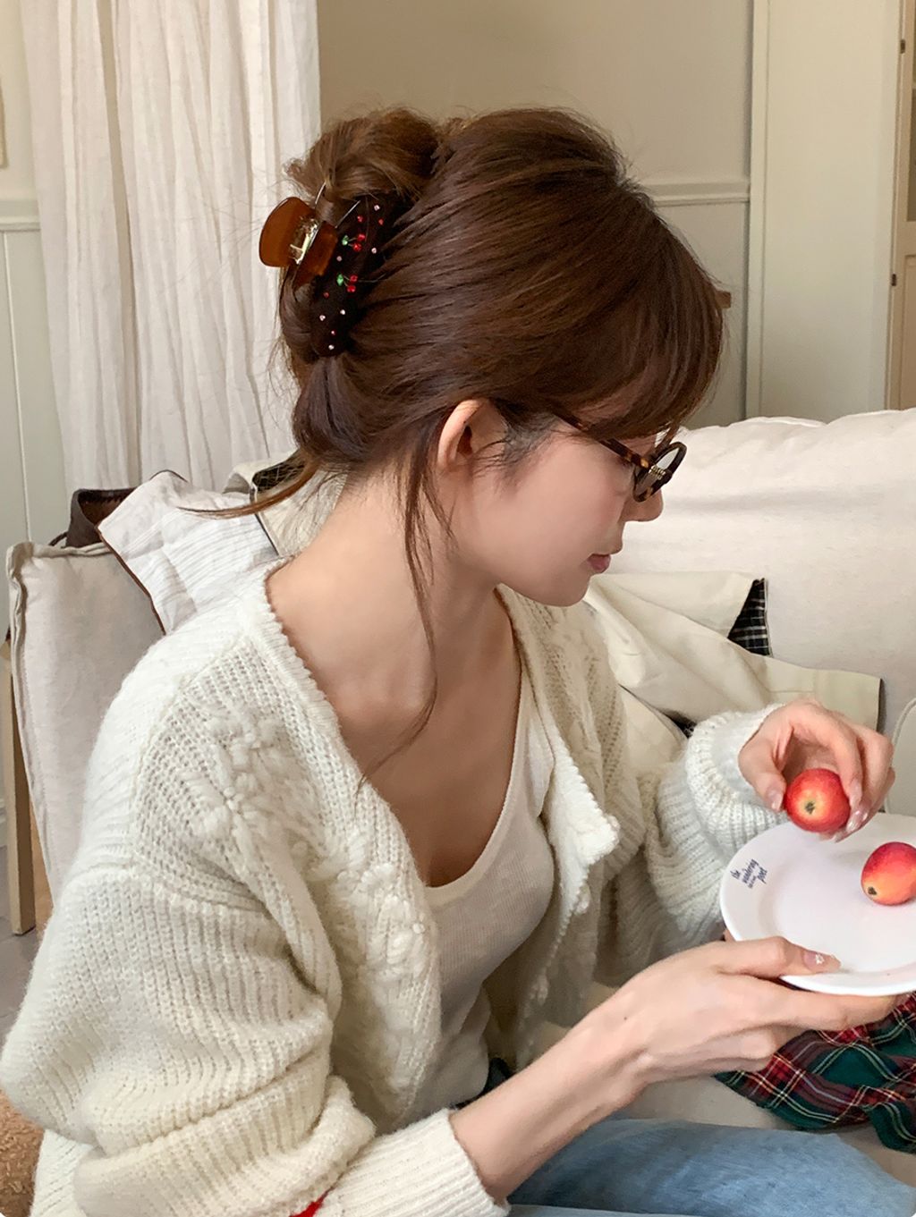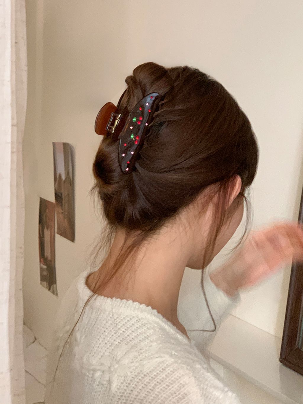 正韓 法式小金標質感水鑽櫻桃純色髮夾抓夾*紅咖*【S1216-76】