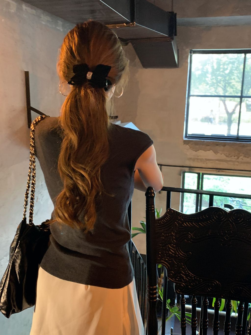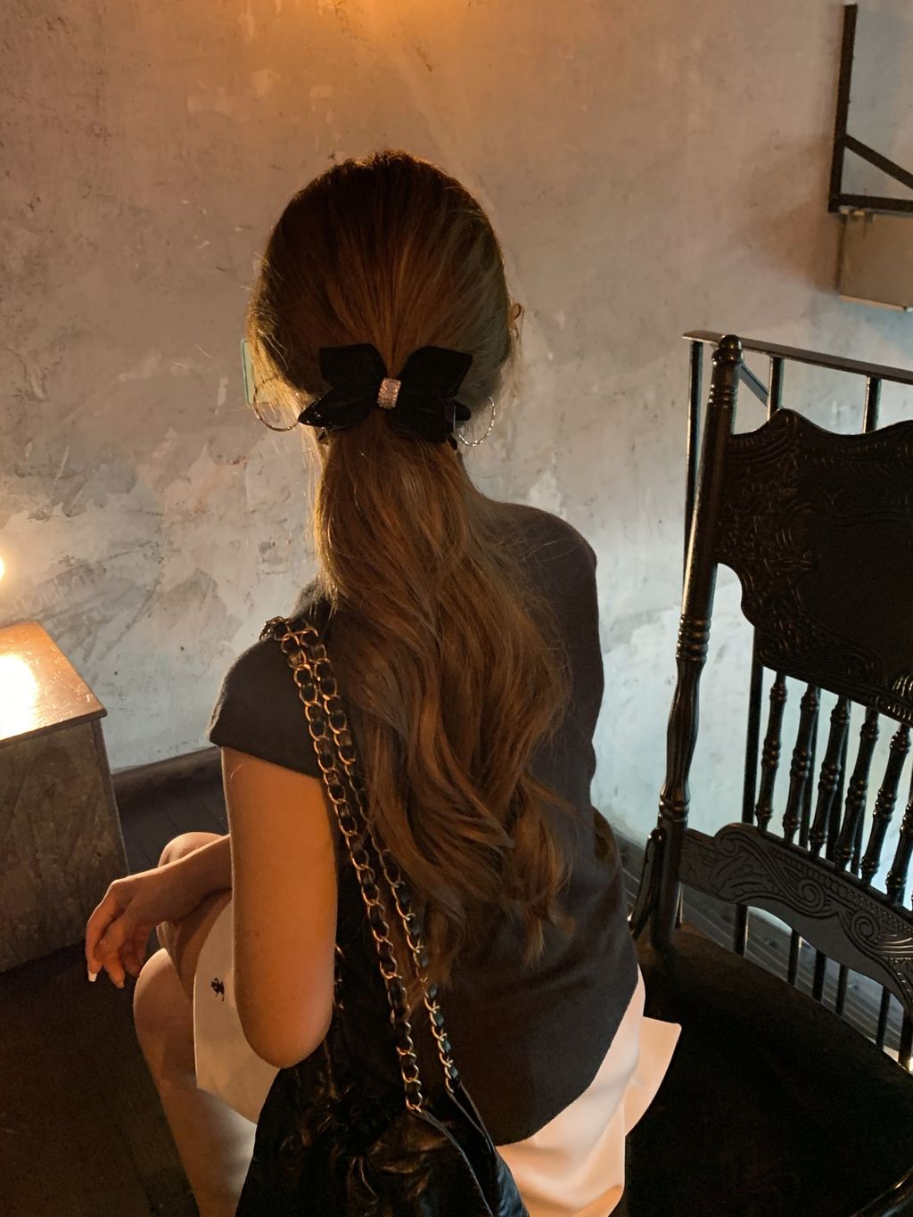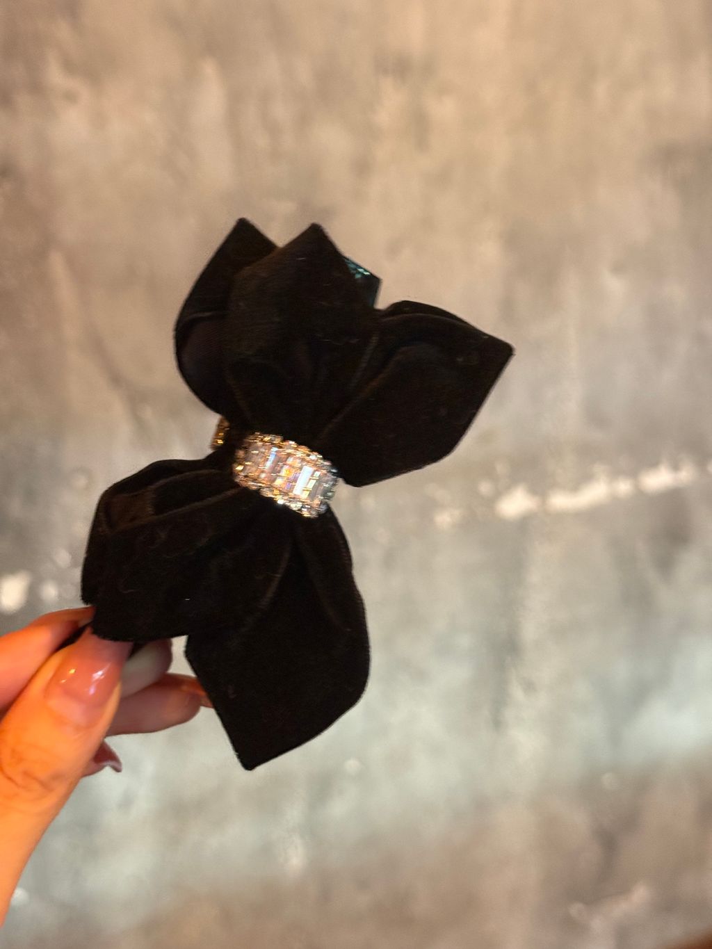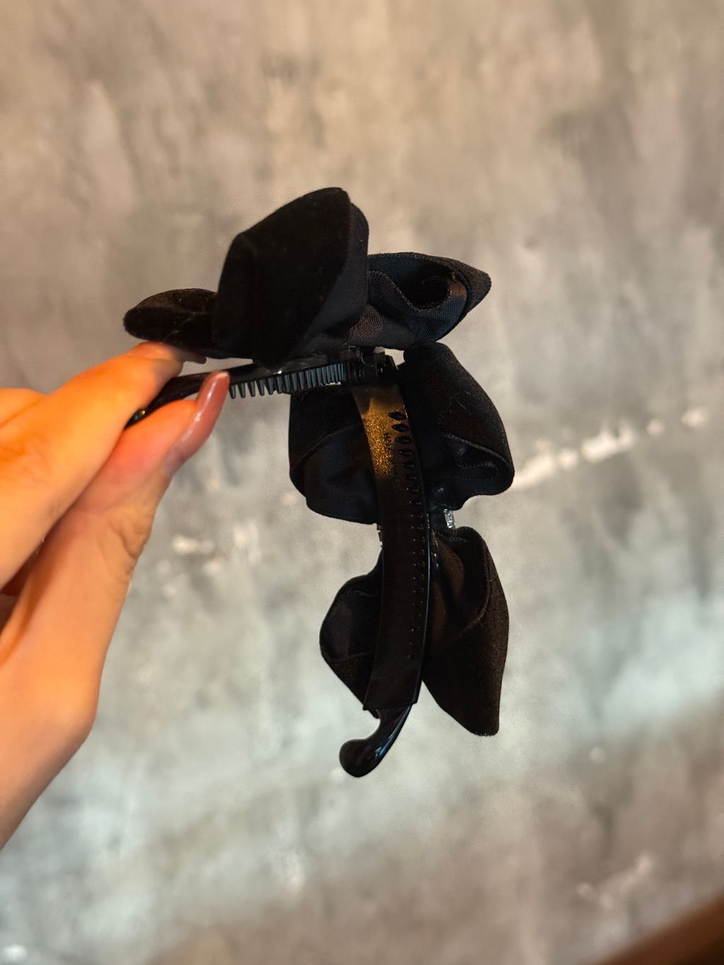 正韓 法式巴洛克水鑽絲絨蝴蝶結髮夾香蕉夾*黑*【S1216-91】