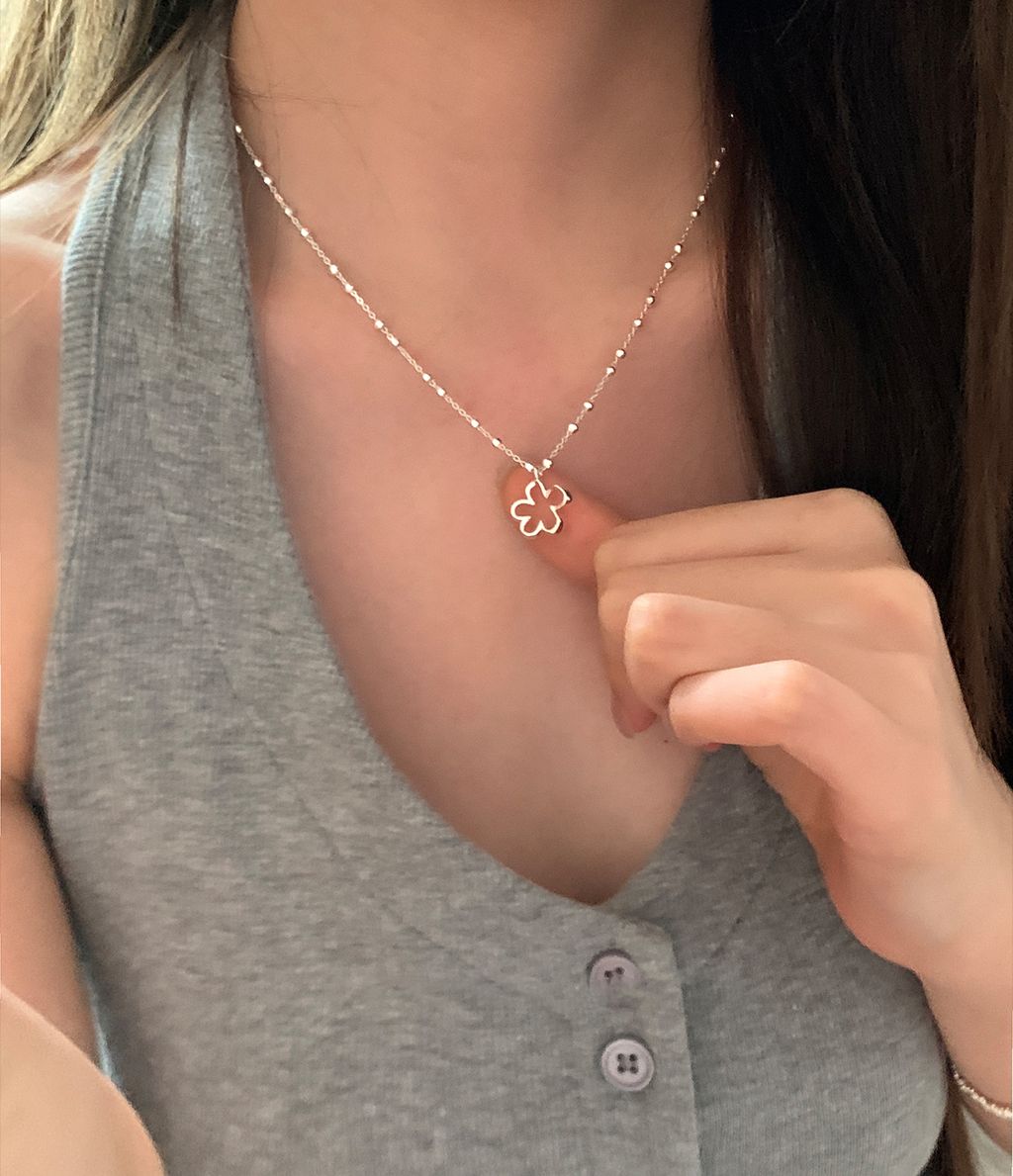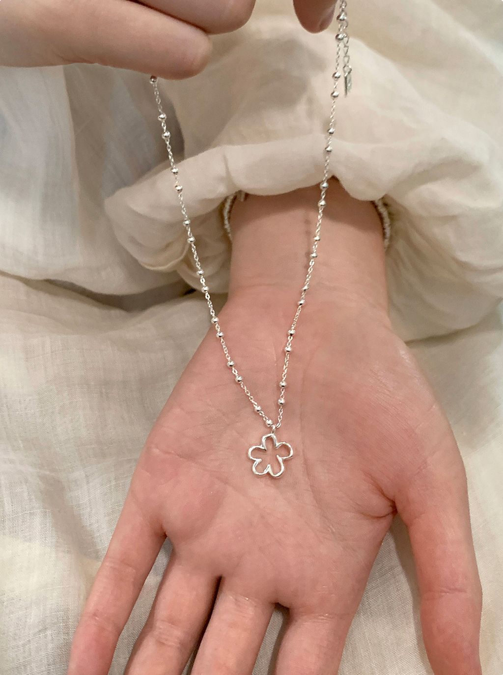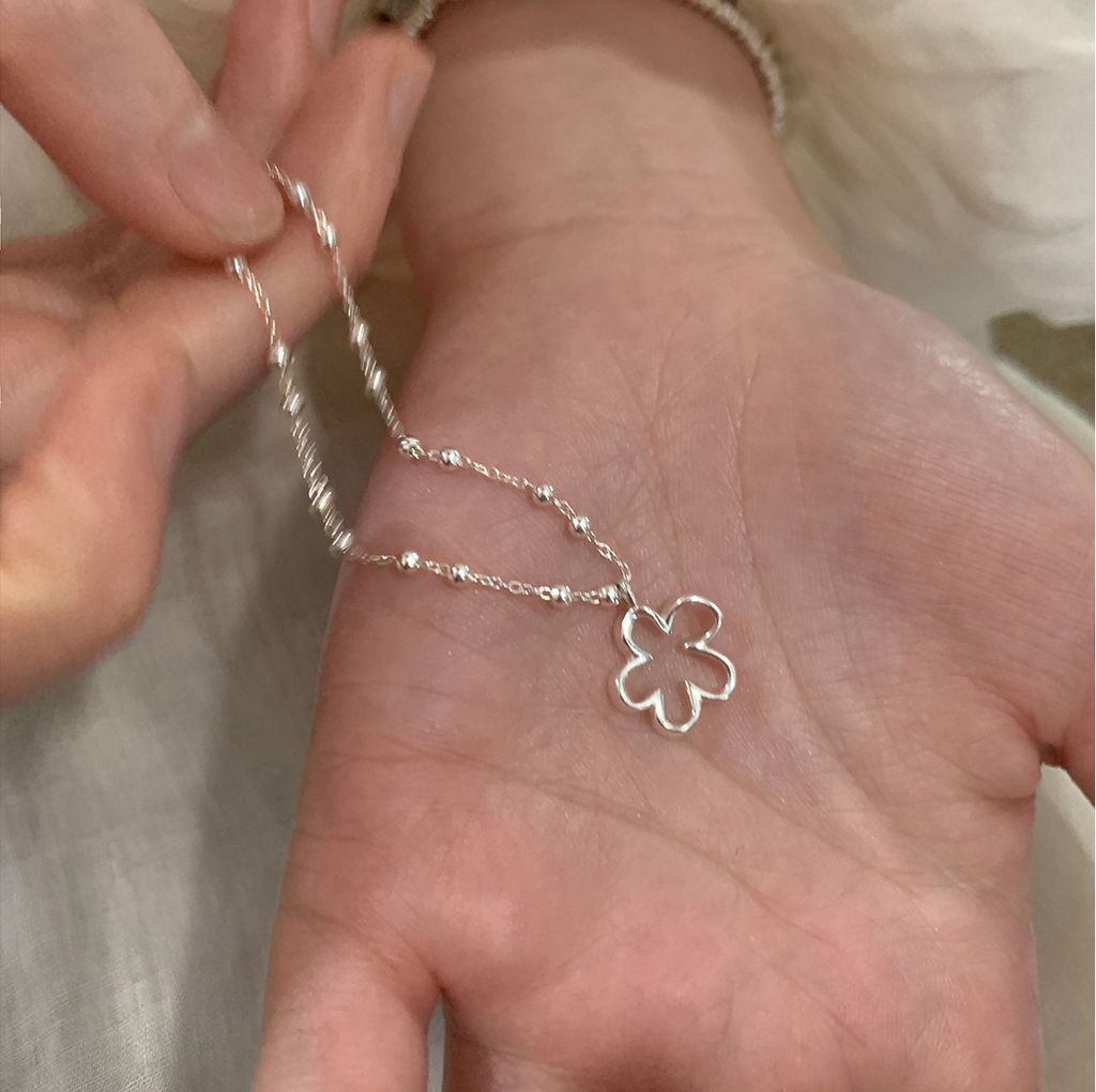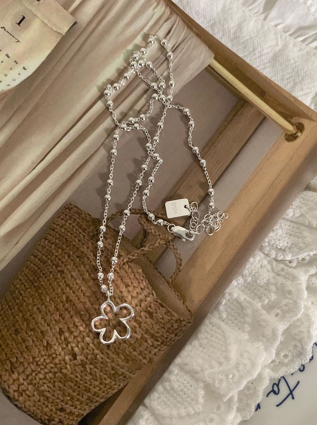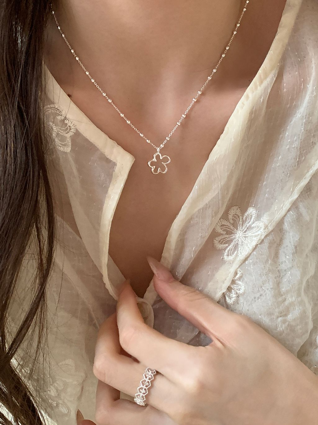 正韓 甜美女孩鏤空花朵質感純銀項鍊*銀*【S1216-100】