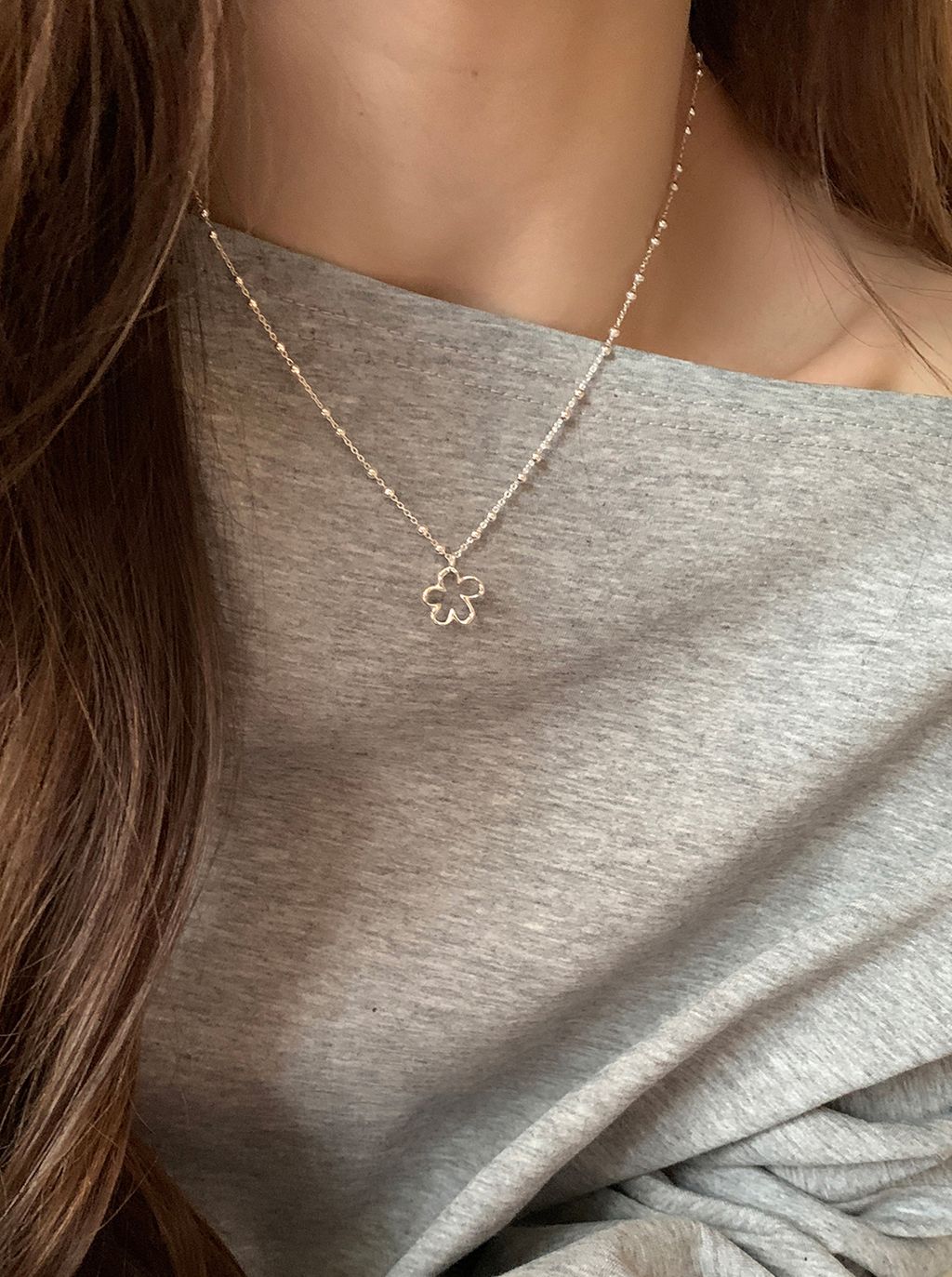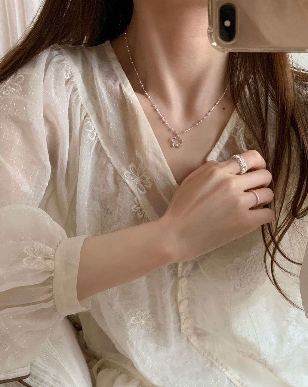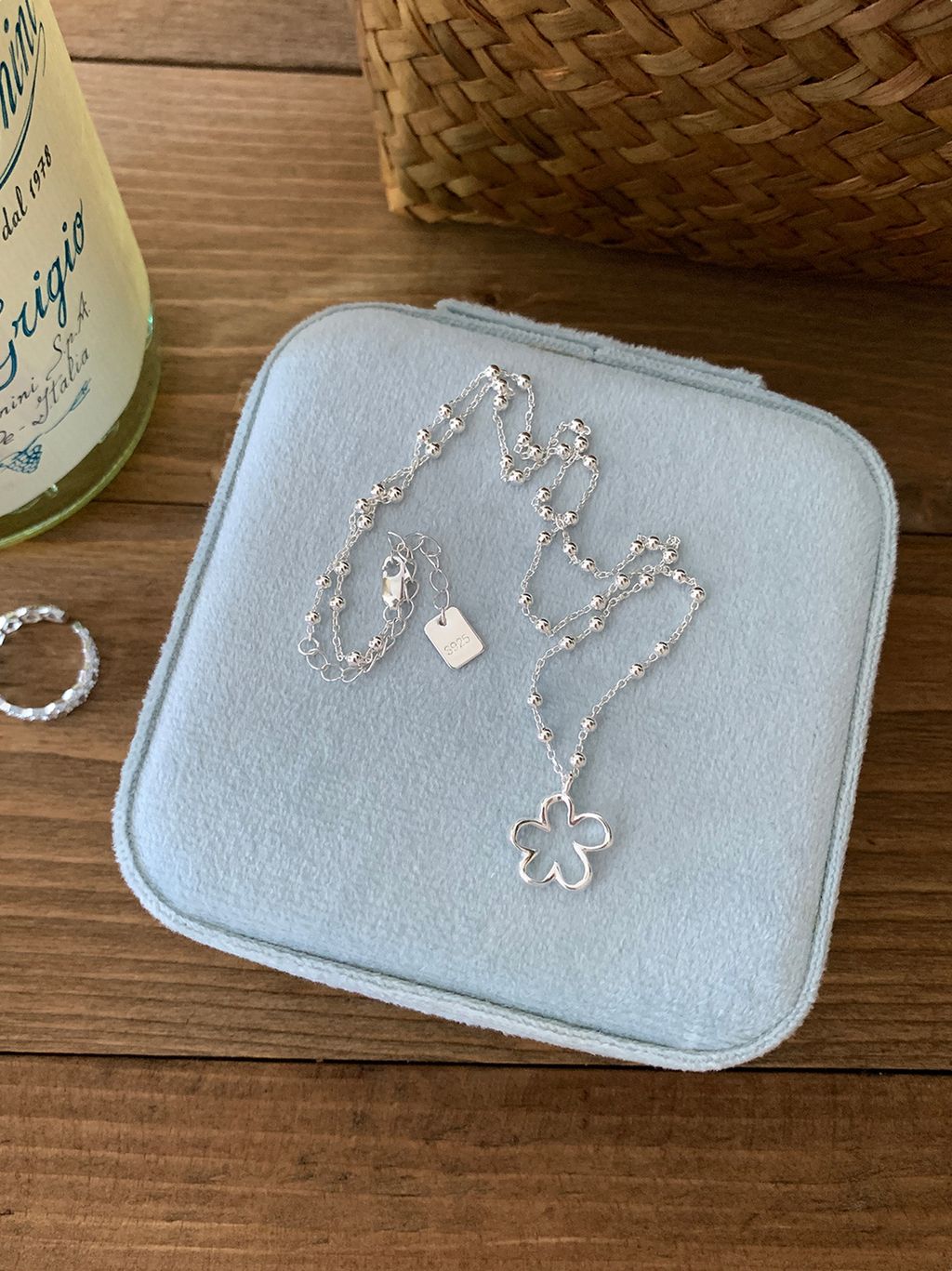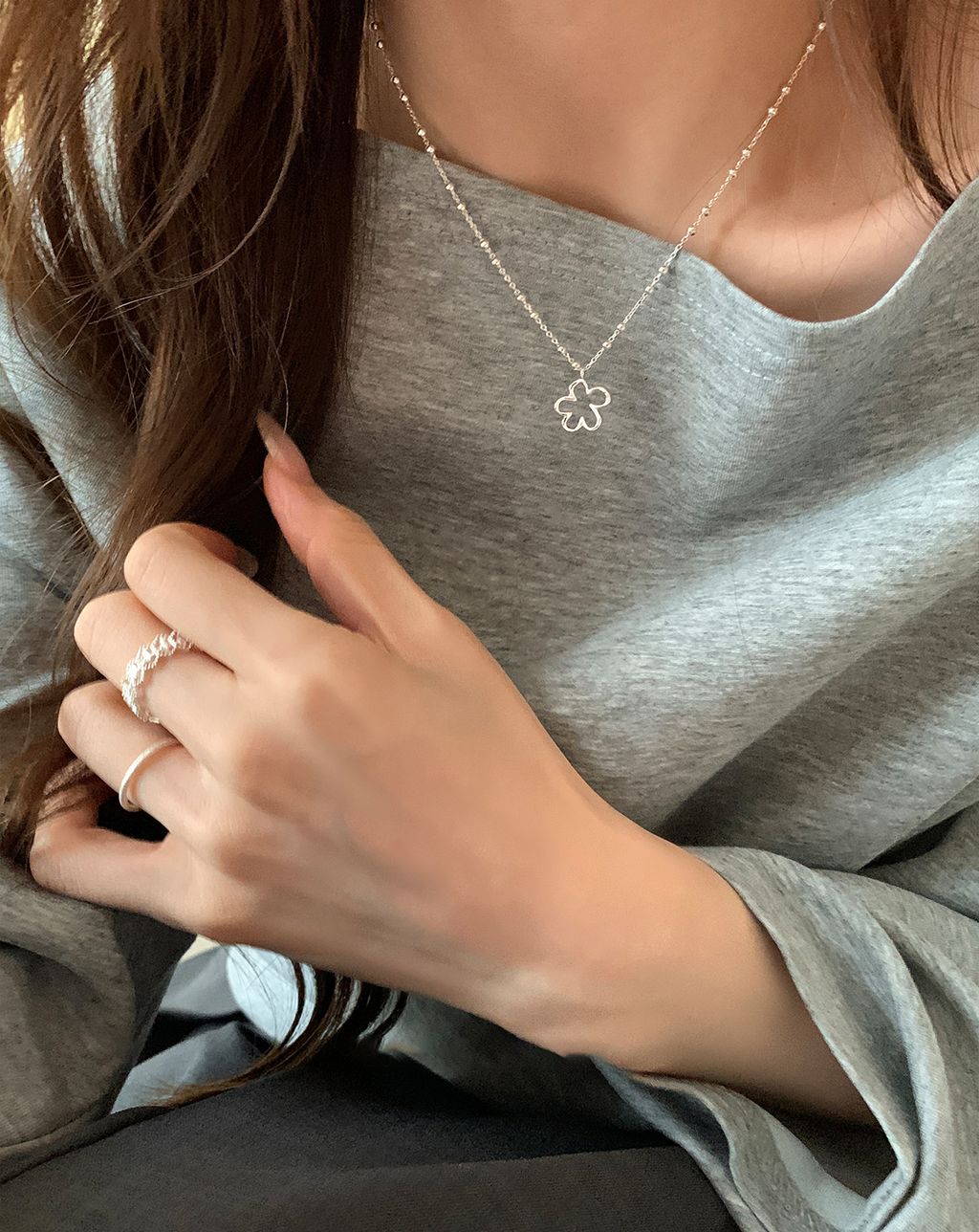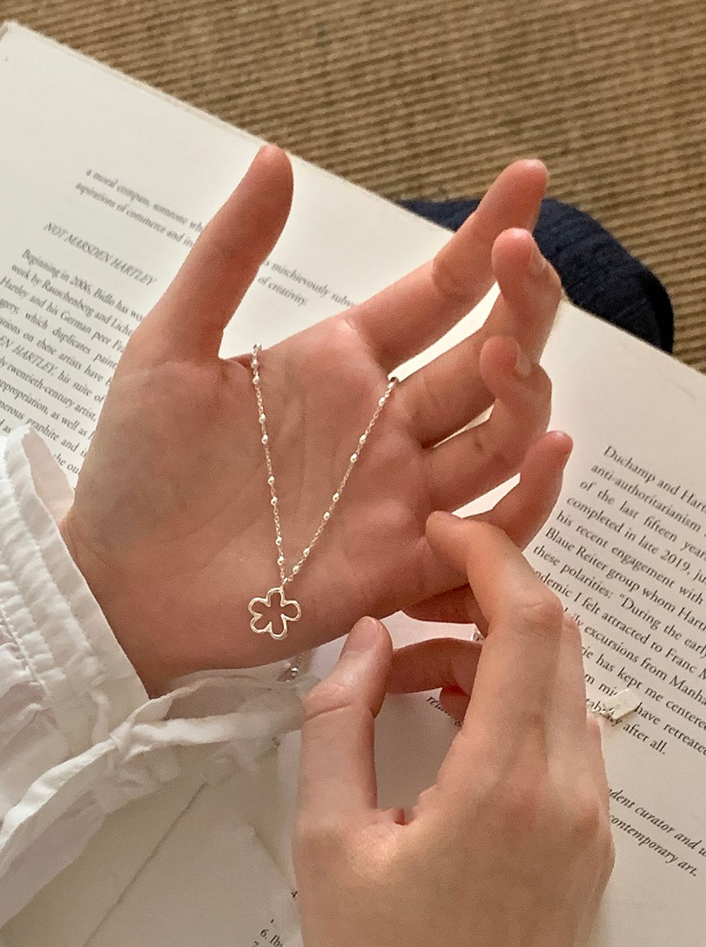 正韓 甜美女孩鏤空花朵質感純銀項鍊*銀*【S1216-100】