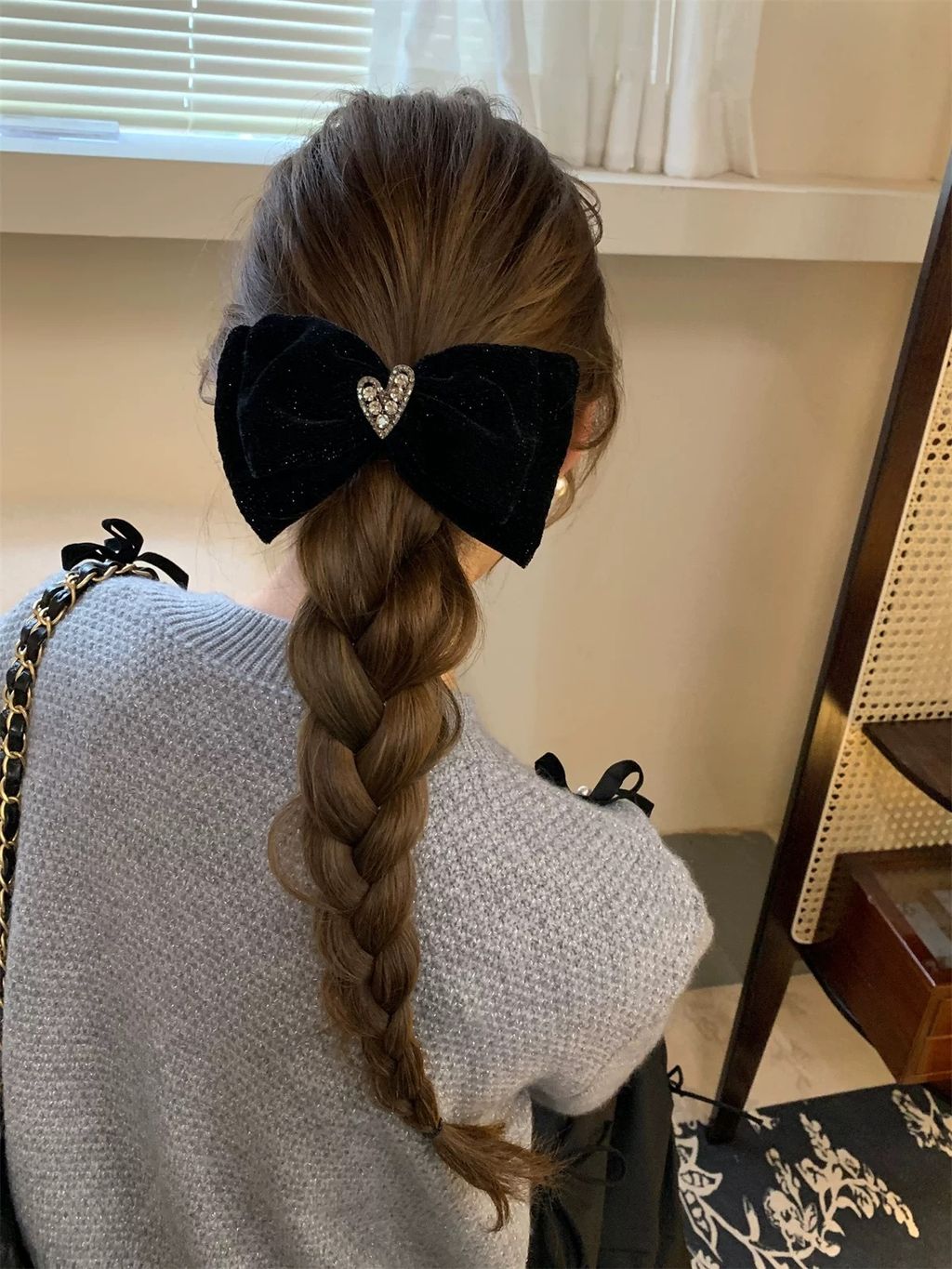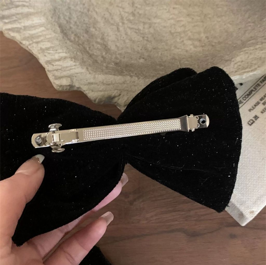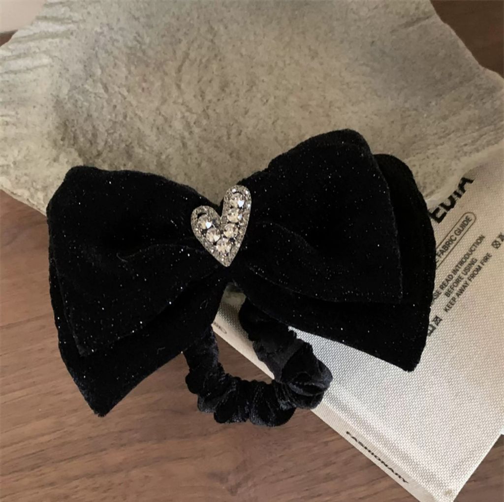 正韓 甜美愛心水鑽絲絨蝴蝶結髮夾髮圈*黑*【S1216-64】