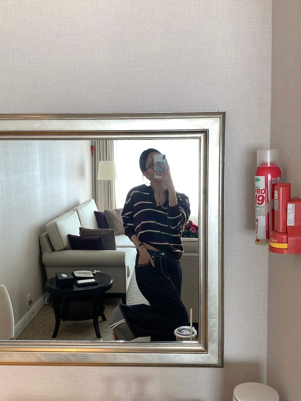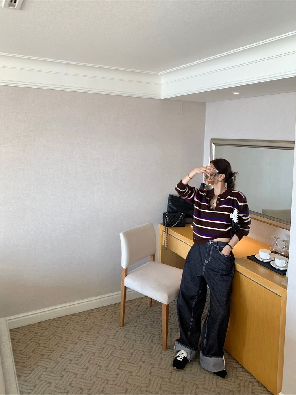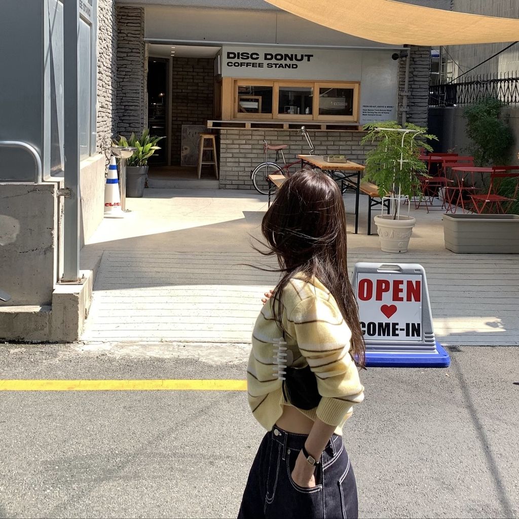 正韓 甜美檸檬撞色條紋翻領針織上衣*檸檬黃*【S1216-127】
