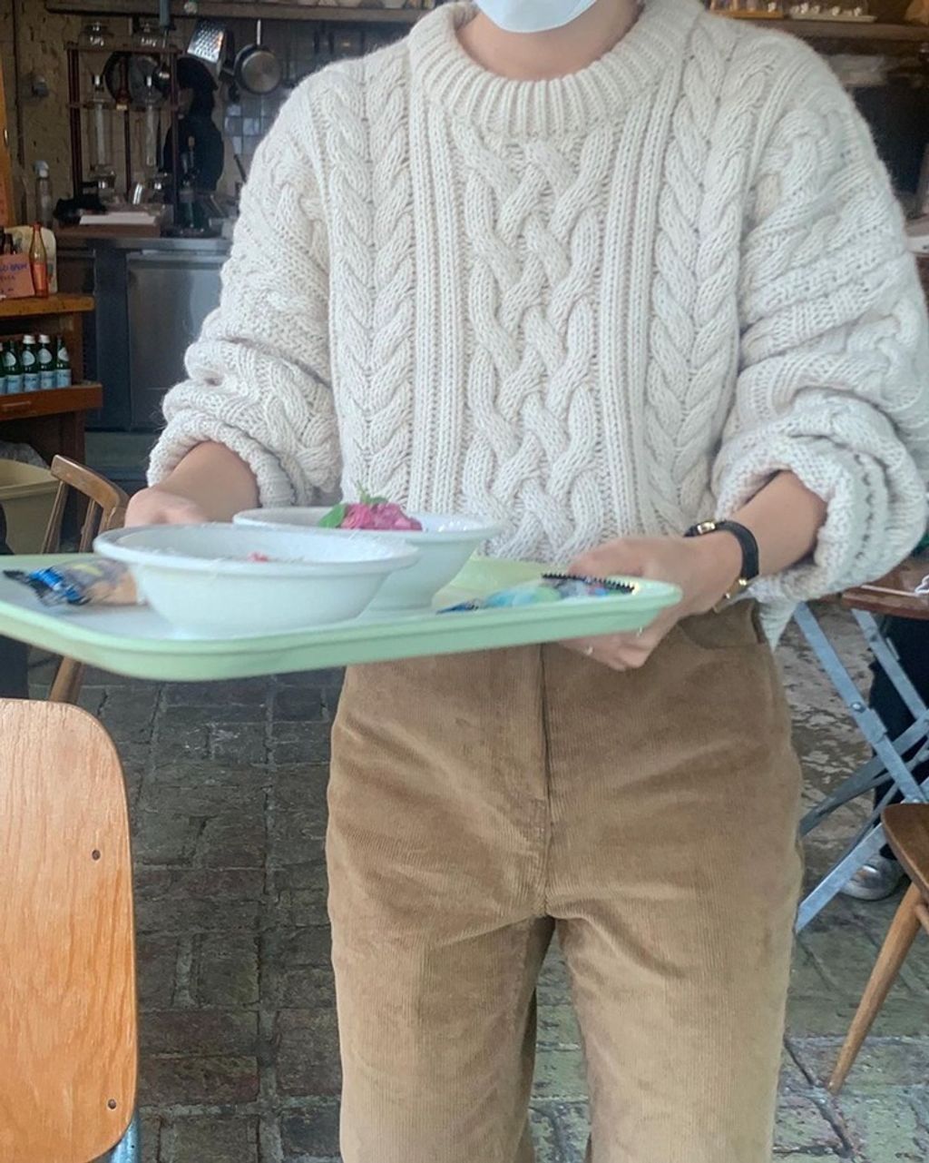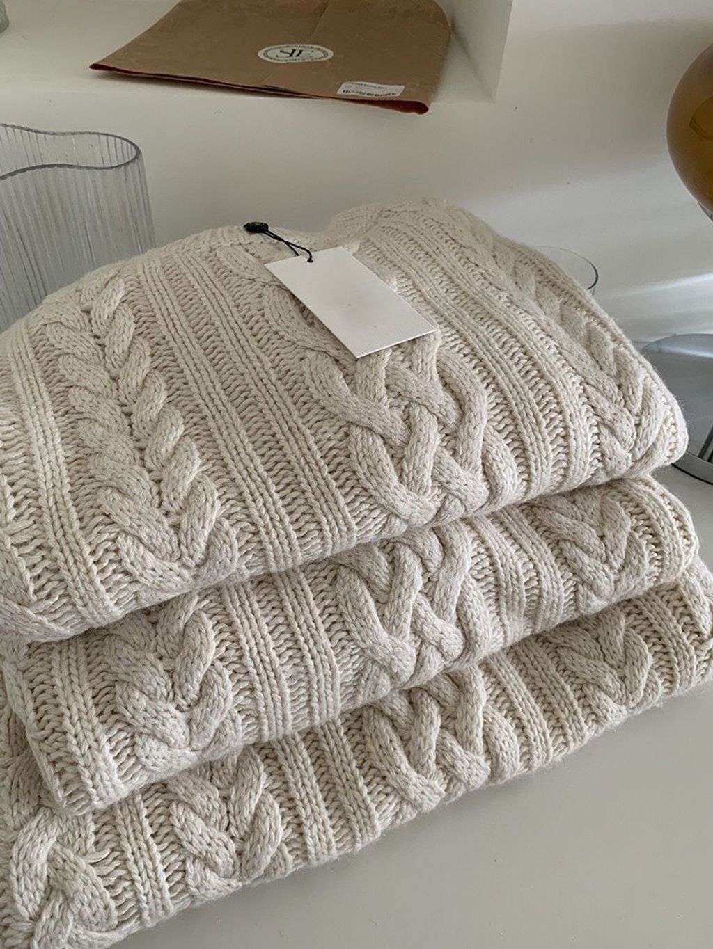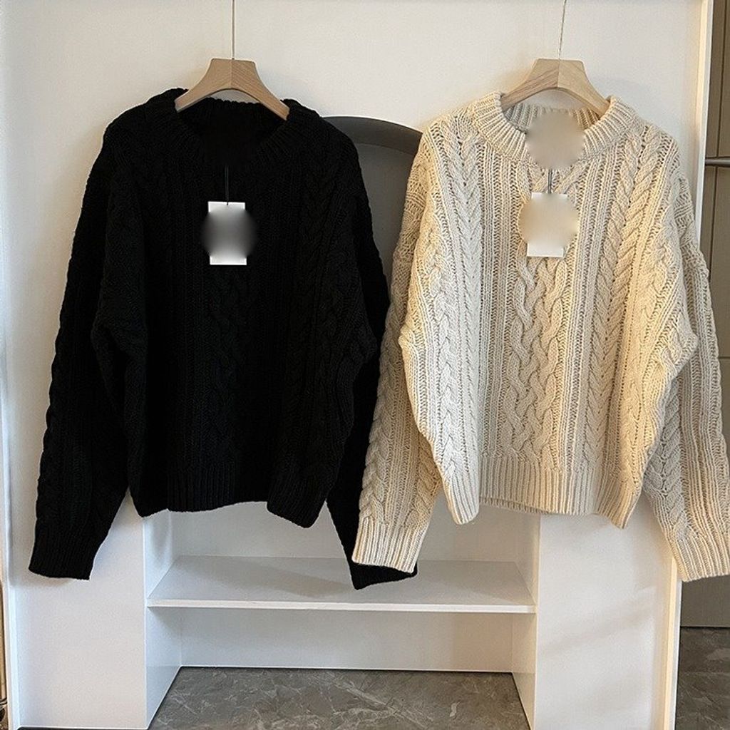 正韓 經典復古麻花設計質感羊毛針織毛衣*象牙白黑*【S1216-121】