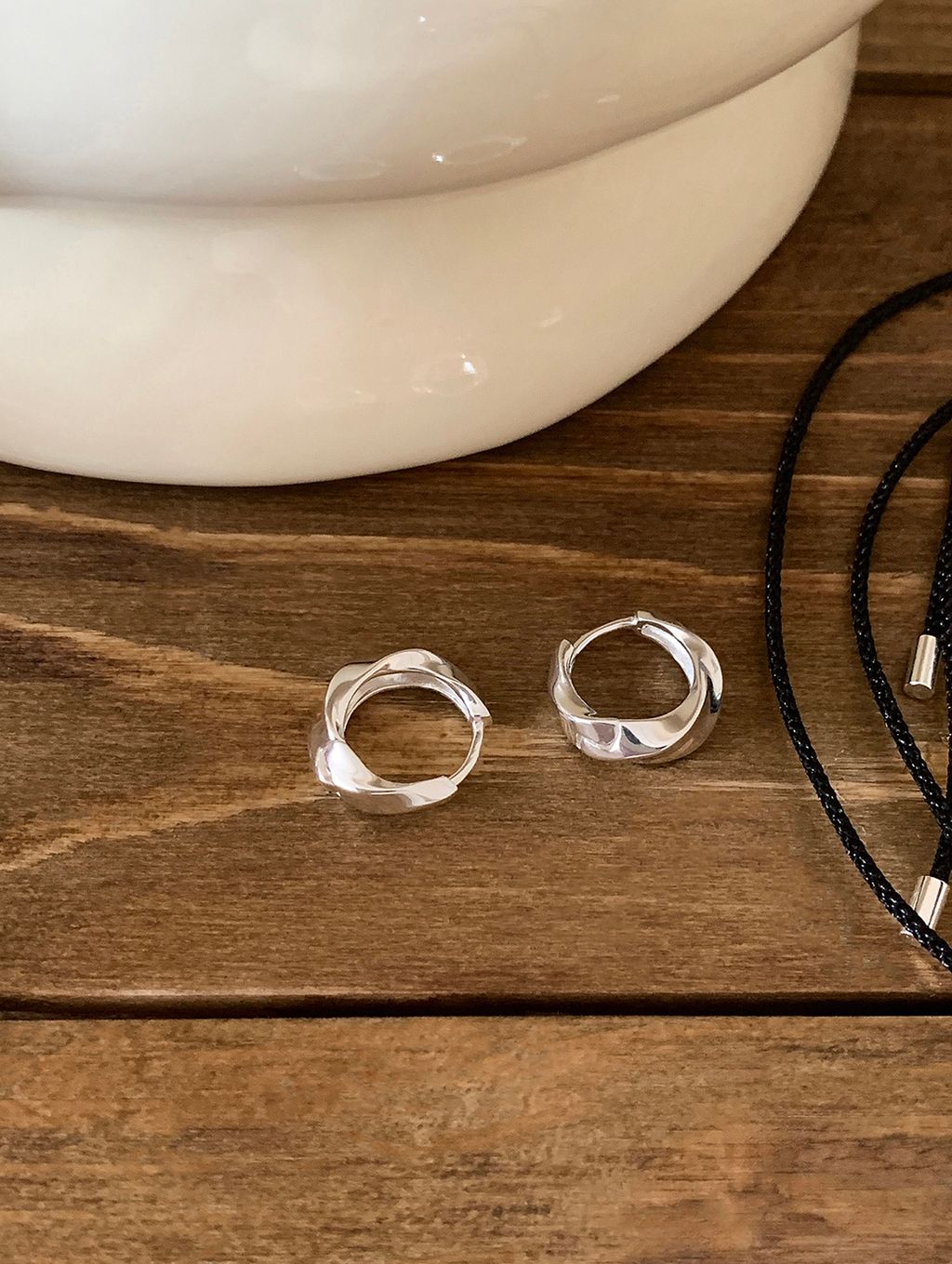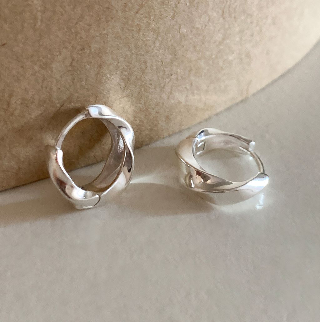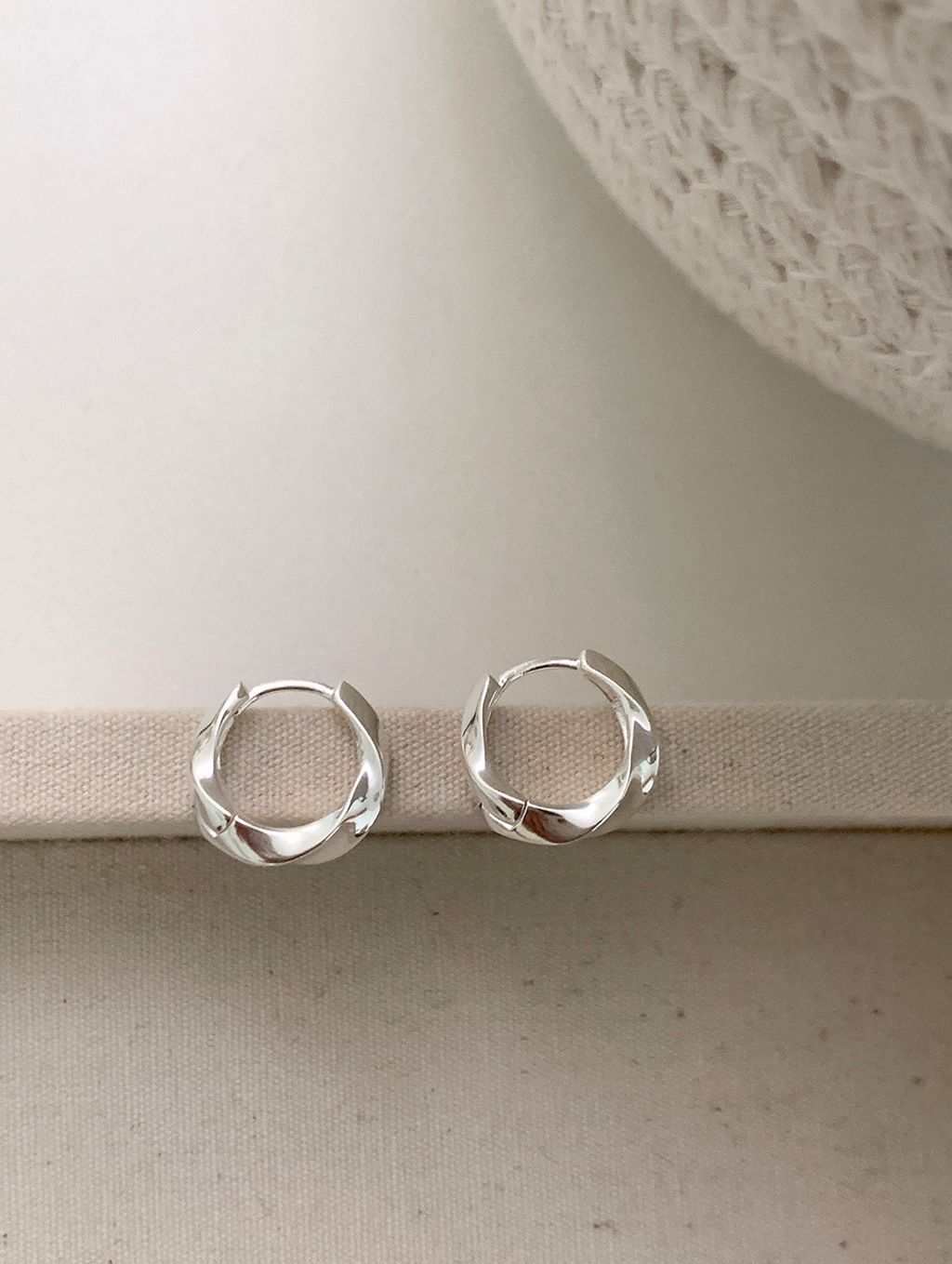 正韓 超推薦!簡約時尚扭紋圓環純銀耳環*銀*【S1216-72】