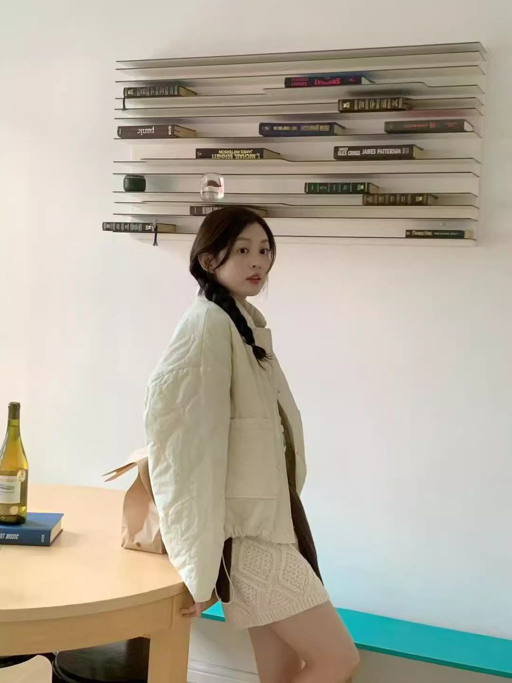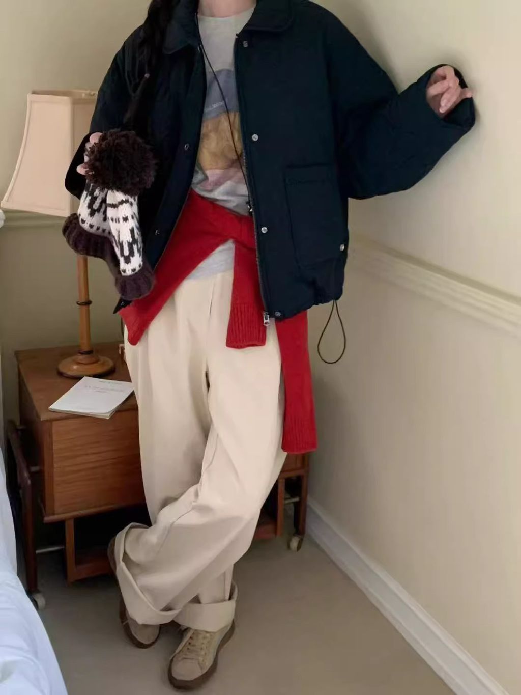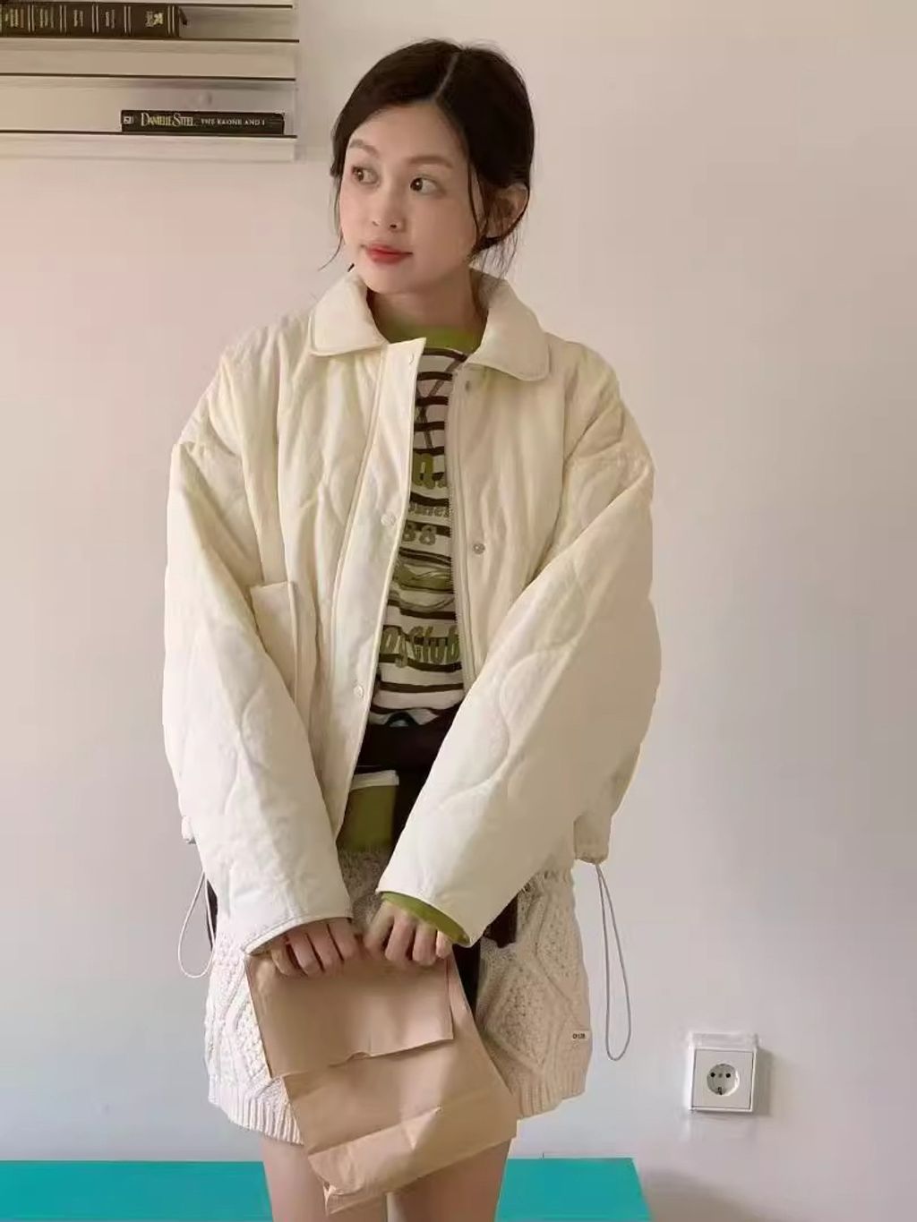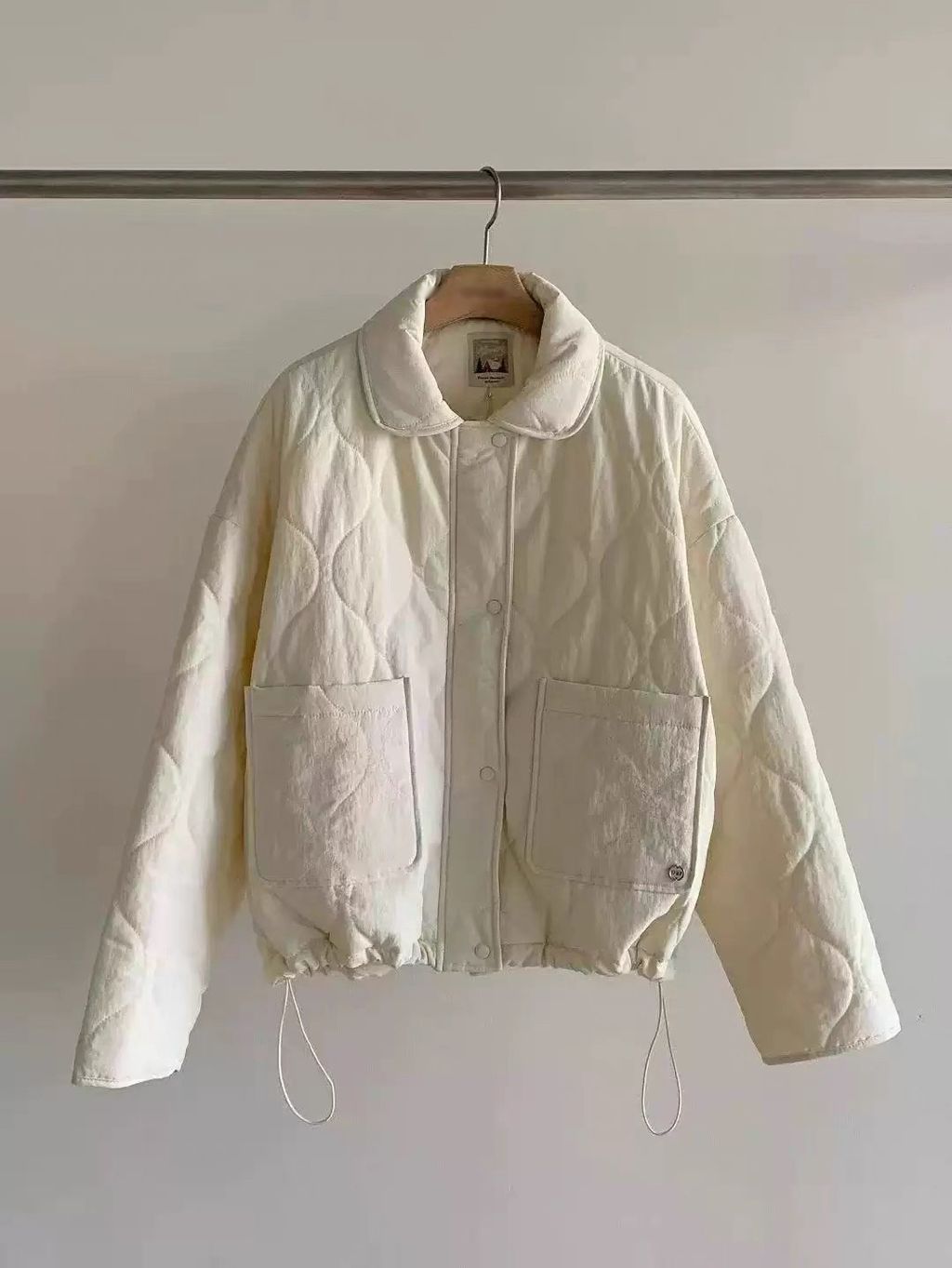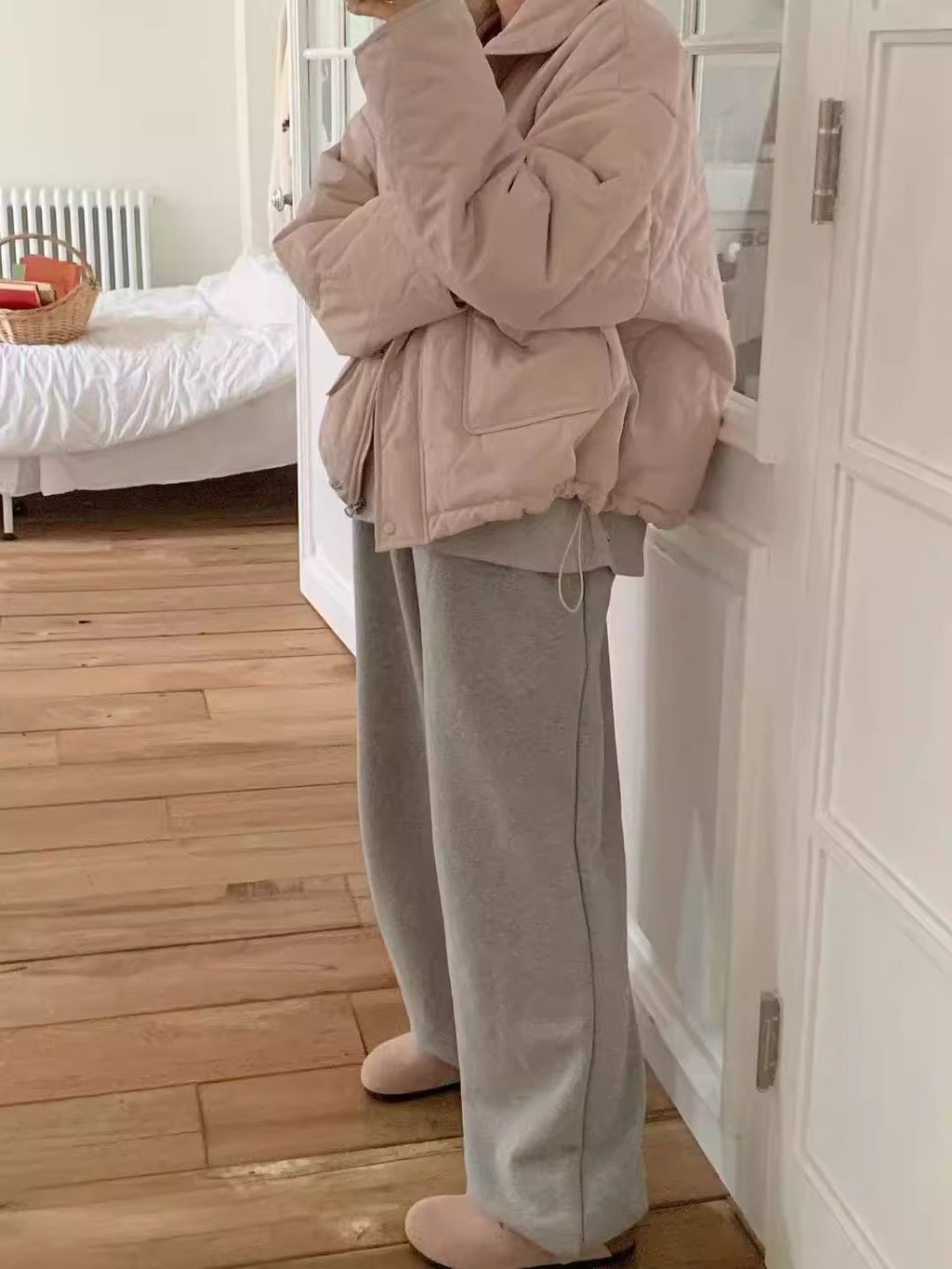 正韓 韓系可愛女孩壓紋質感鋪棉外套*黑奶油粉*【S1216-236】