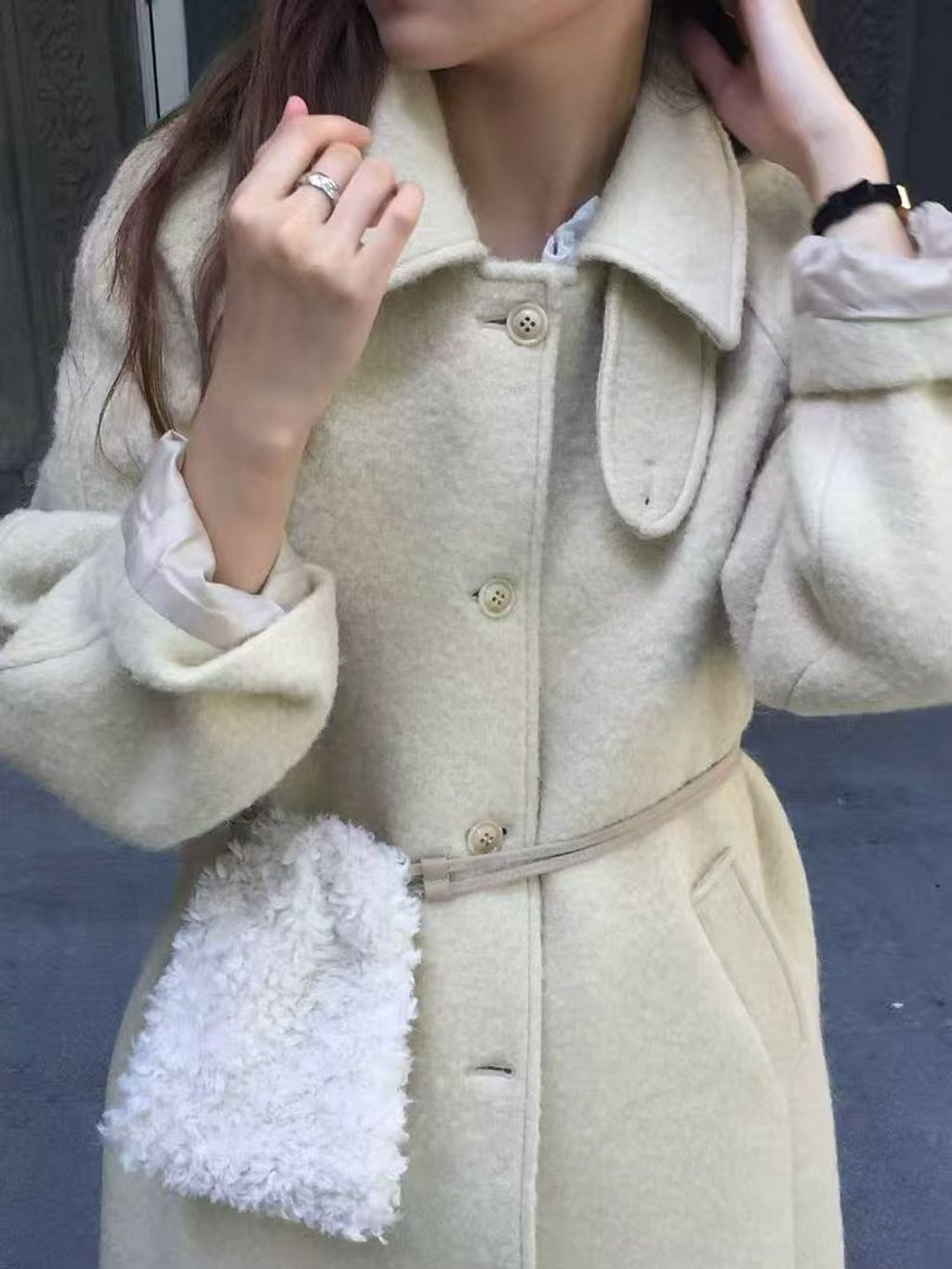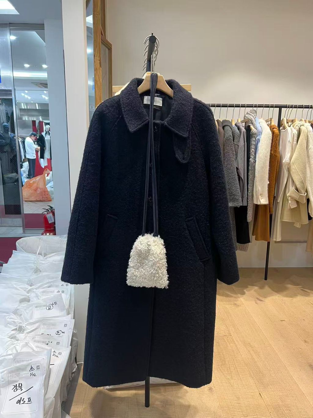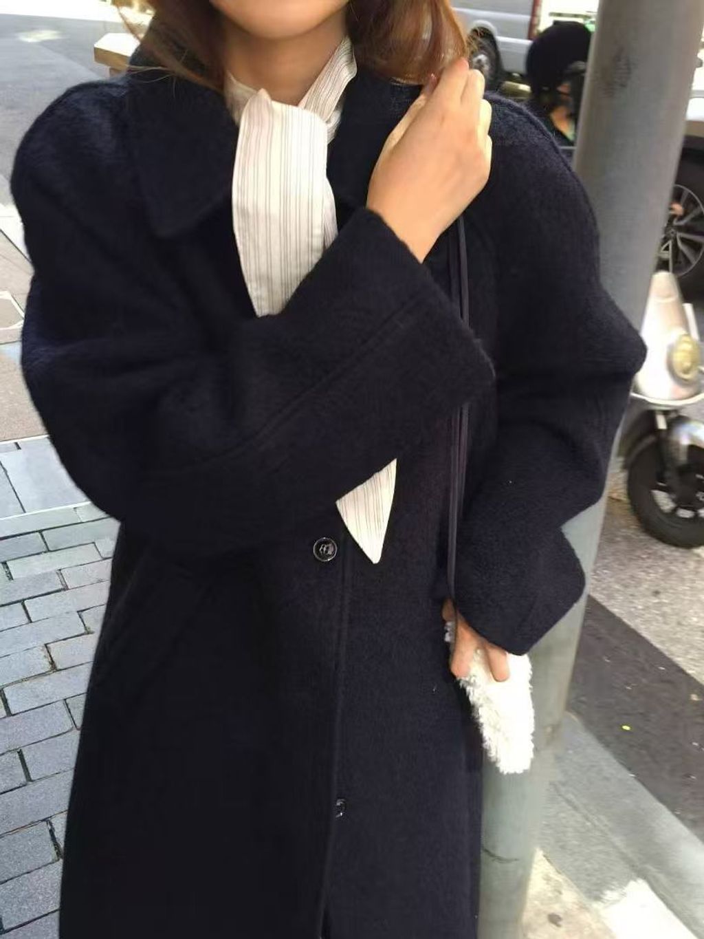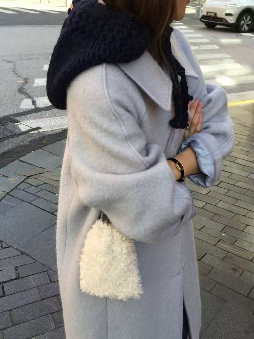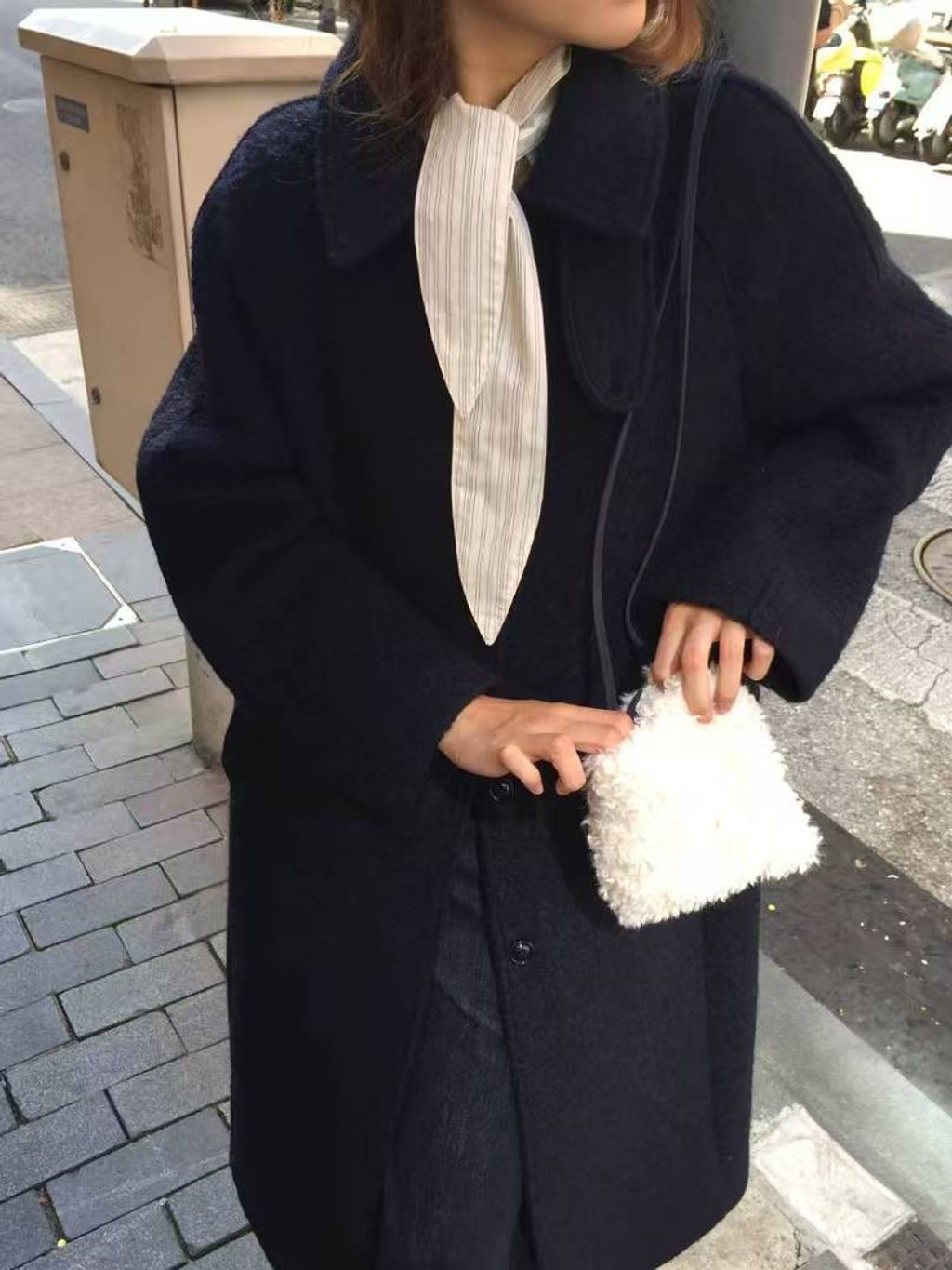 正韓 高雅氣質質感羊毛大衣外套附贈毛毛包包唷!*藍奶油深黑藍*【S1216-238】