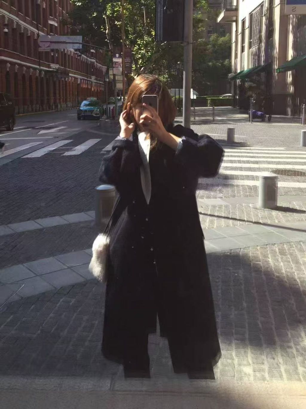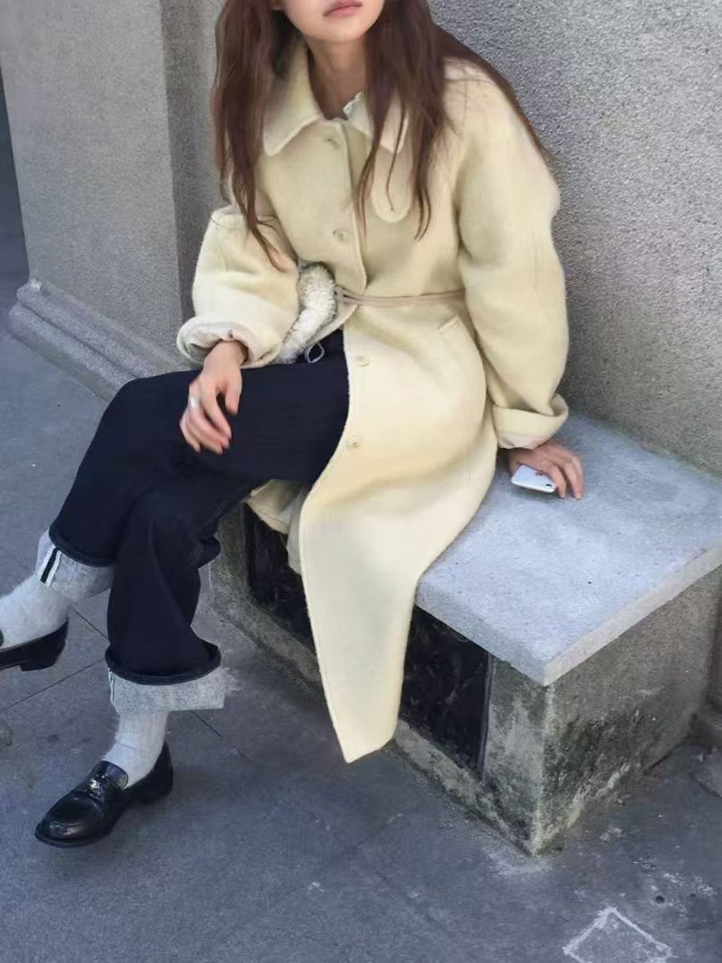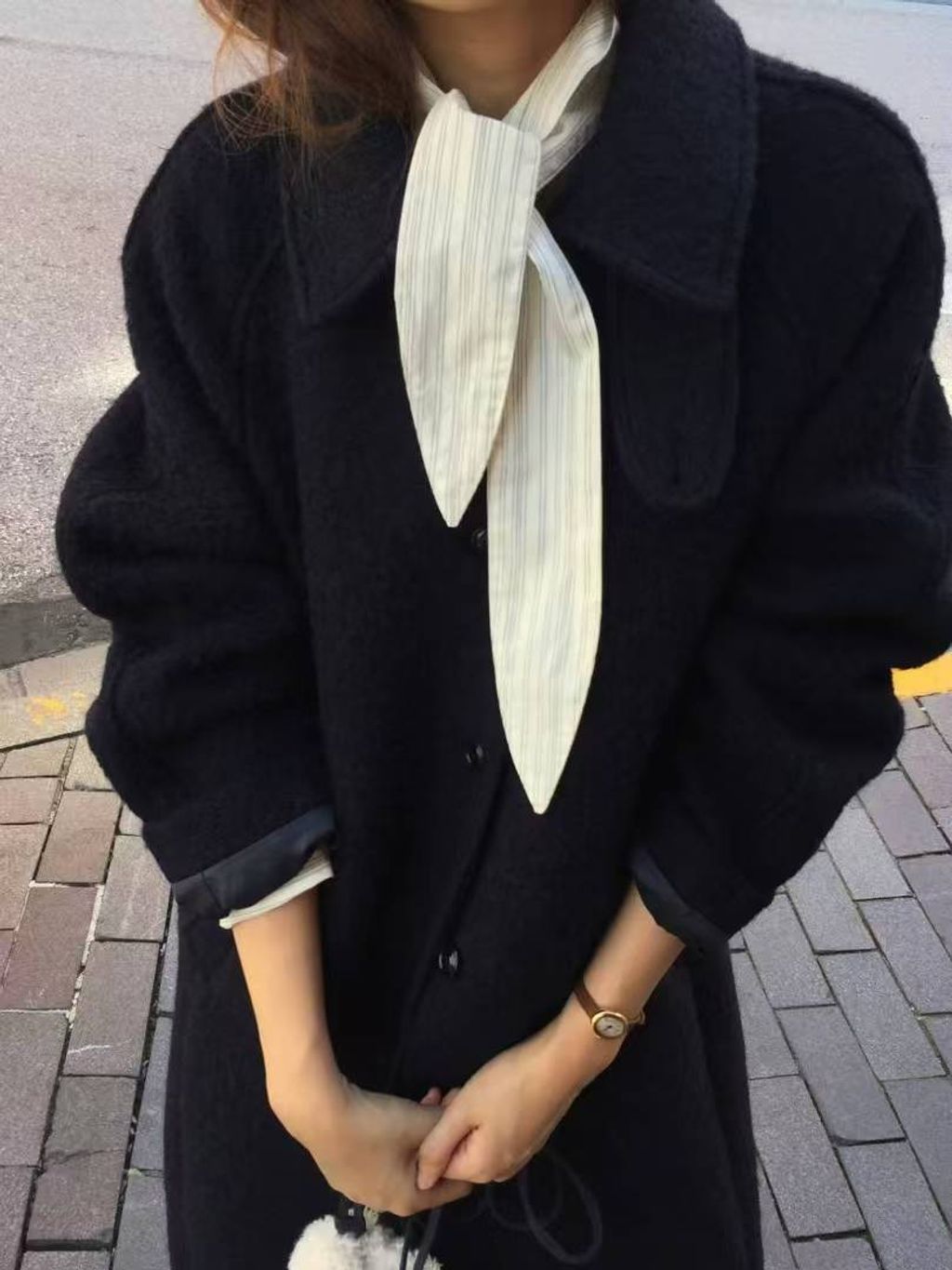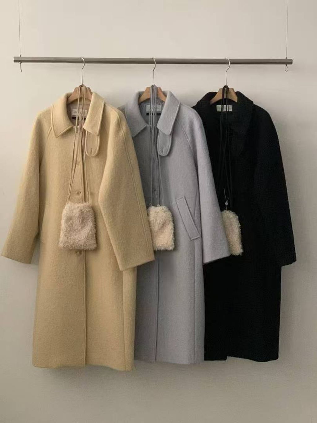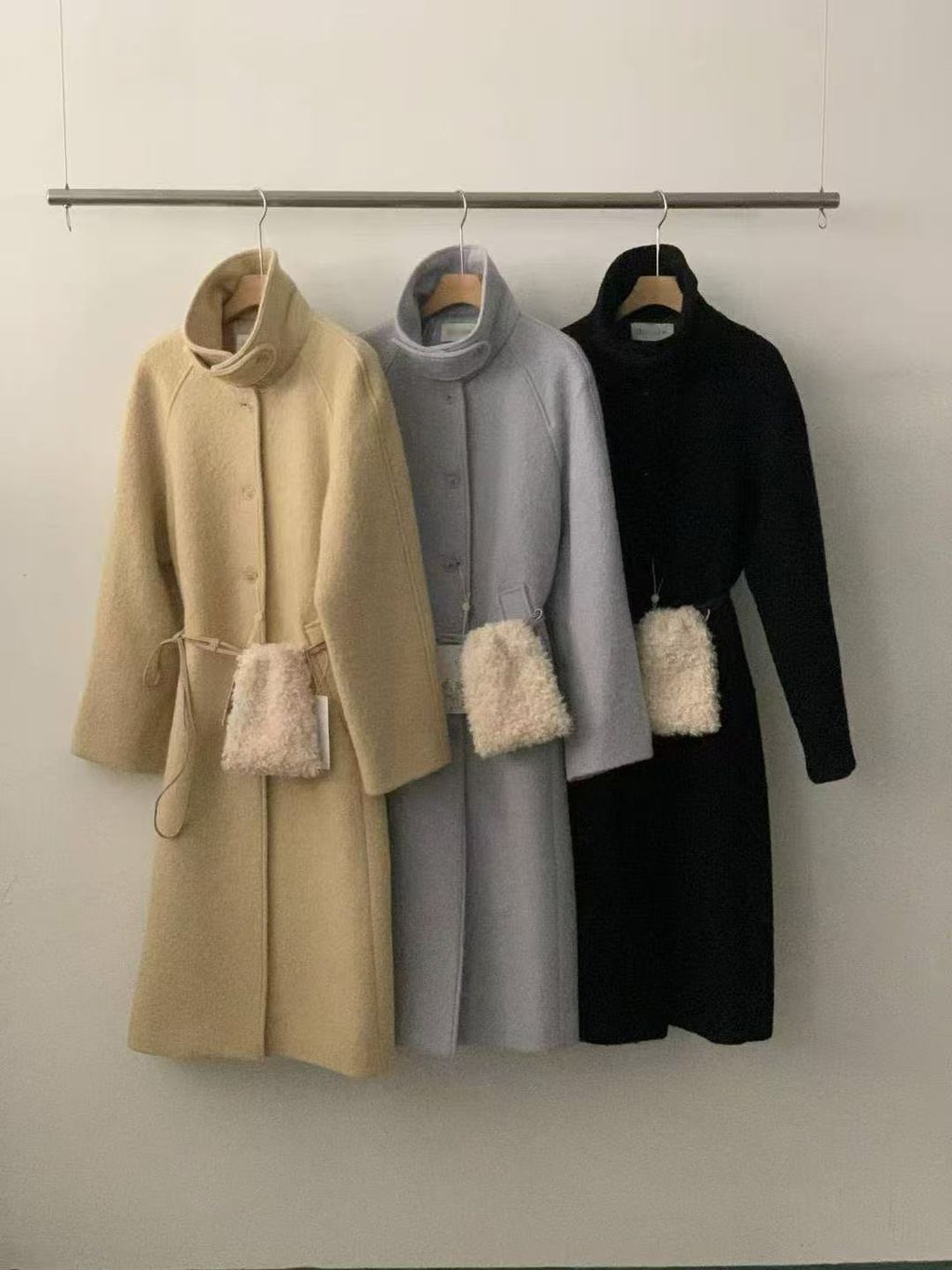 正韓 高雅氣質質感羊毛大衣外套附贈毛毛包包唷!*藍奶油深黑藍*【S1216-238】