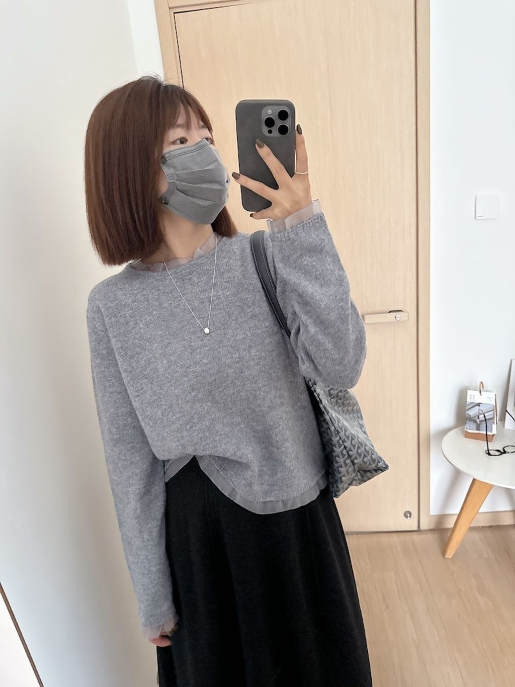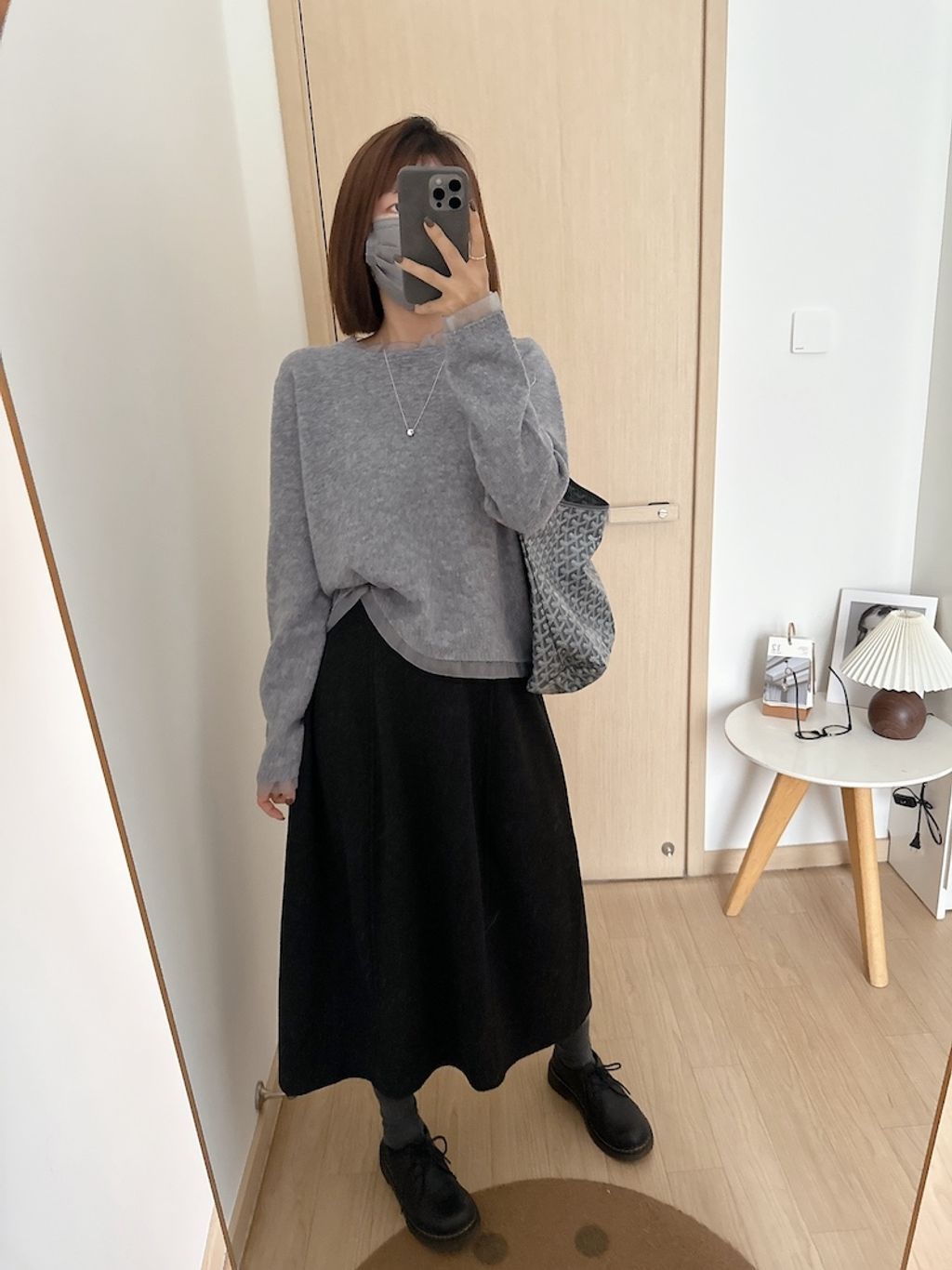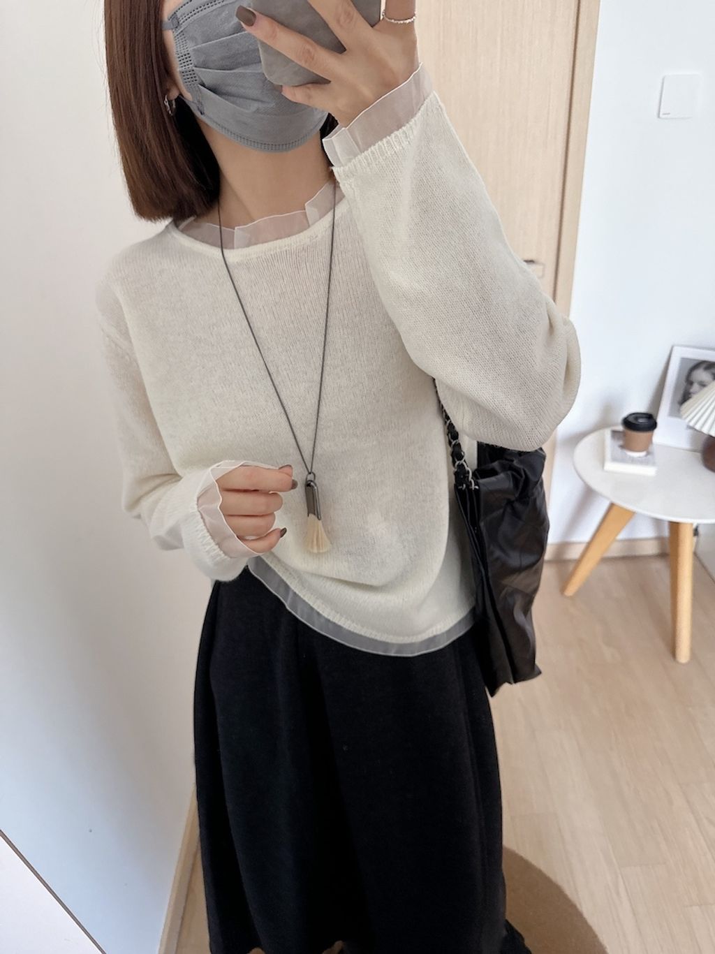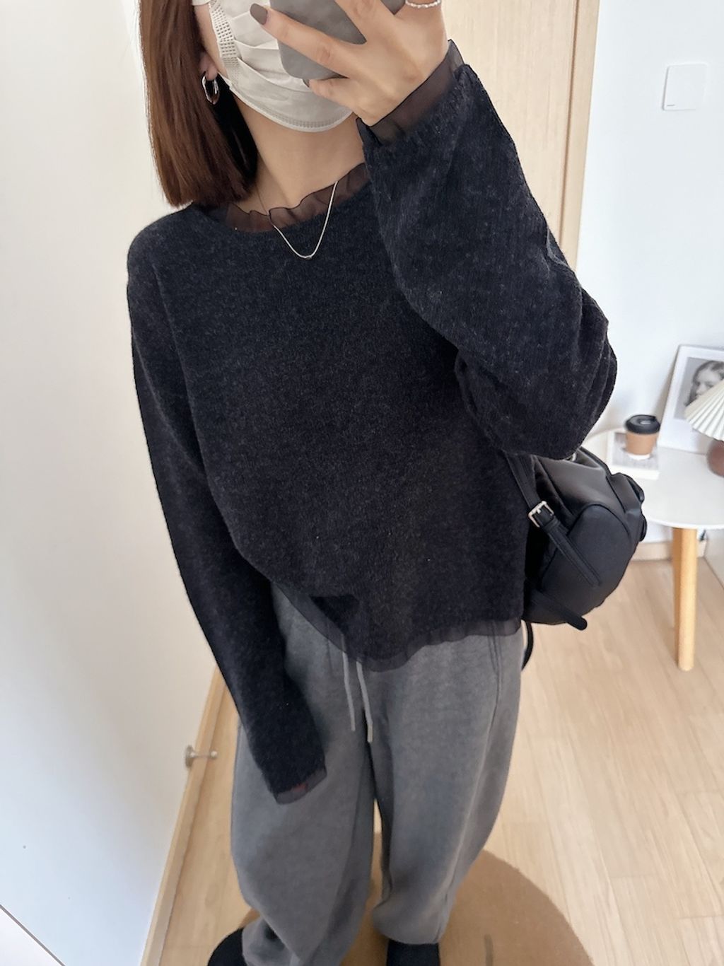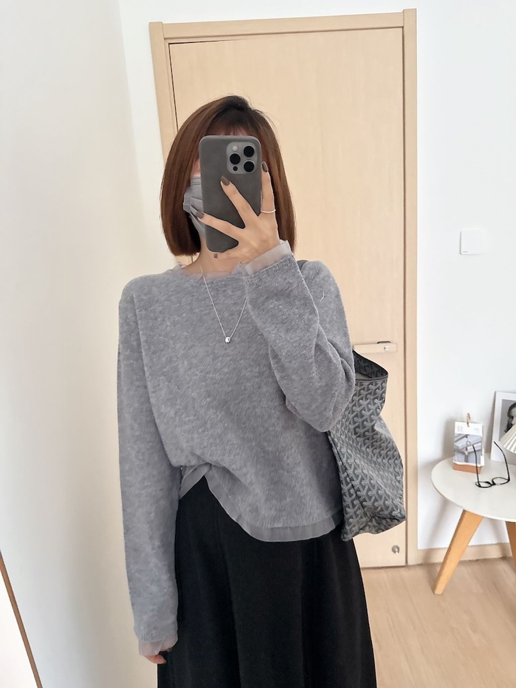 溫柔氣質拼接紗高級羊毛柔軟毛衣*灰黑白*【S1216-156】