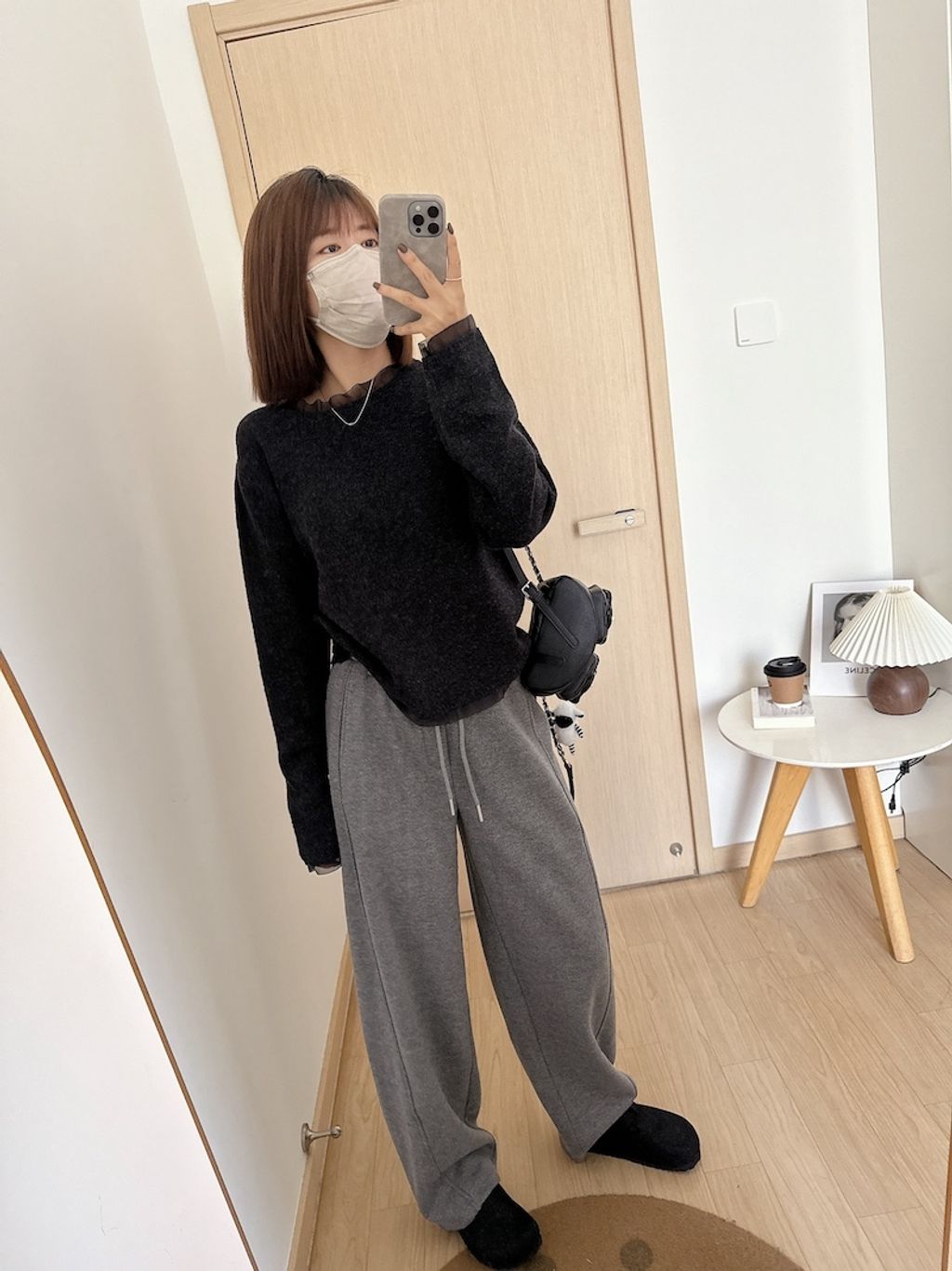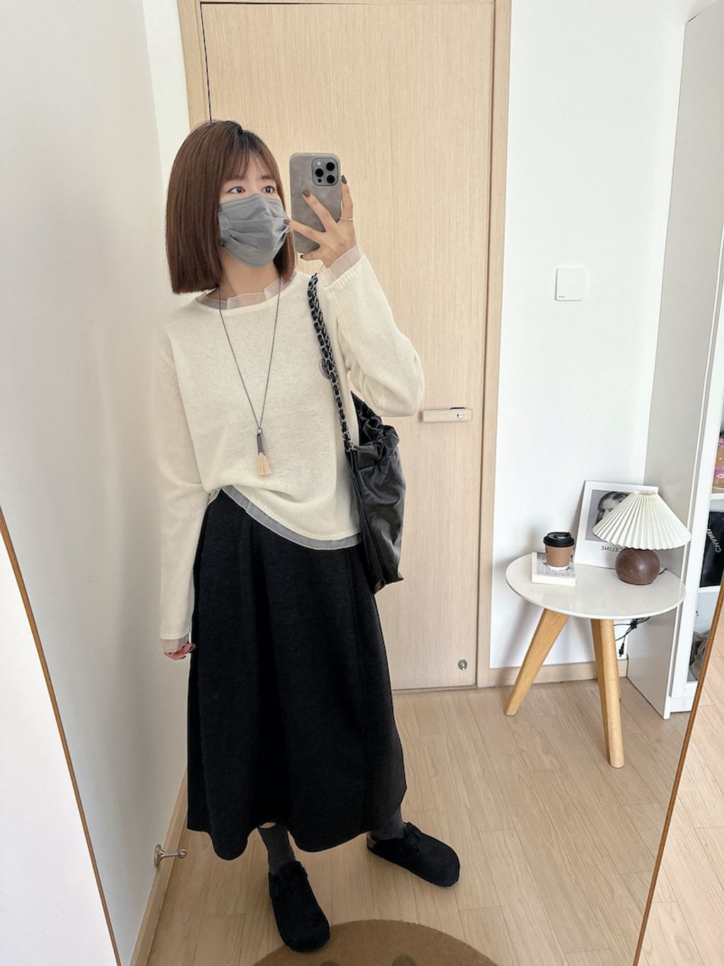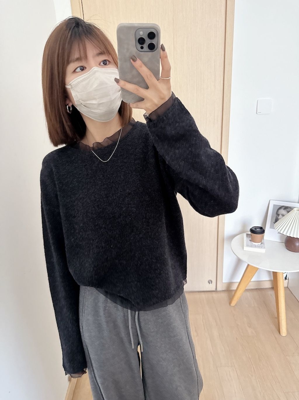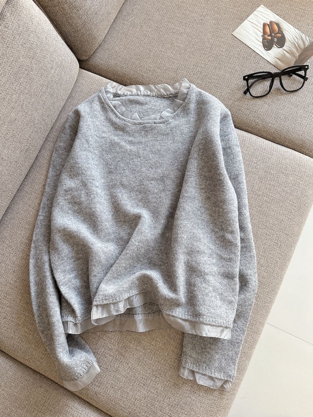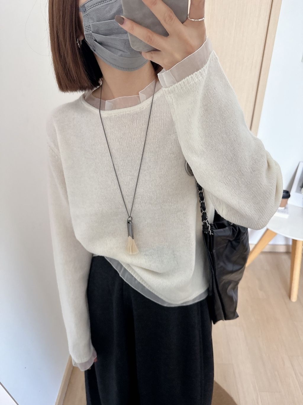 溫柔氣質拼接紗高級羊毛柔軟毛衣*灰黑白*【S1216-156】