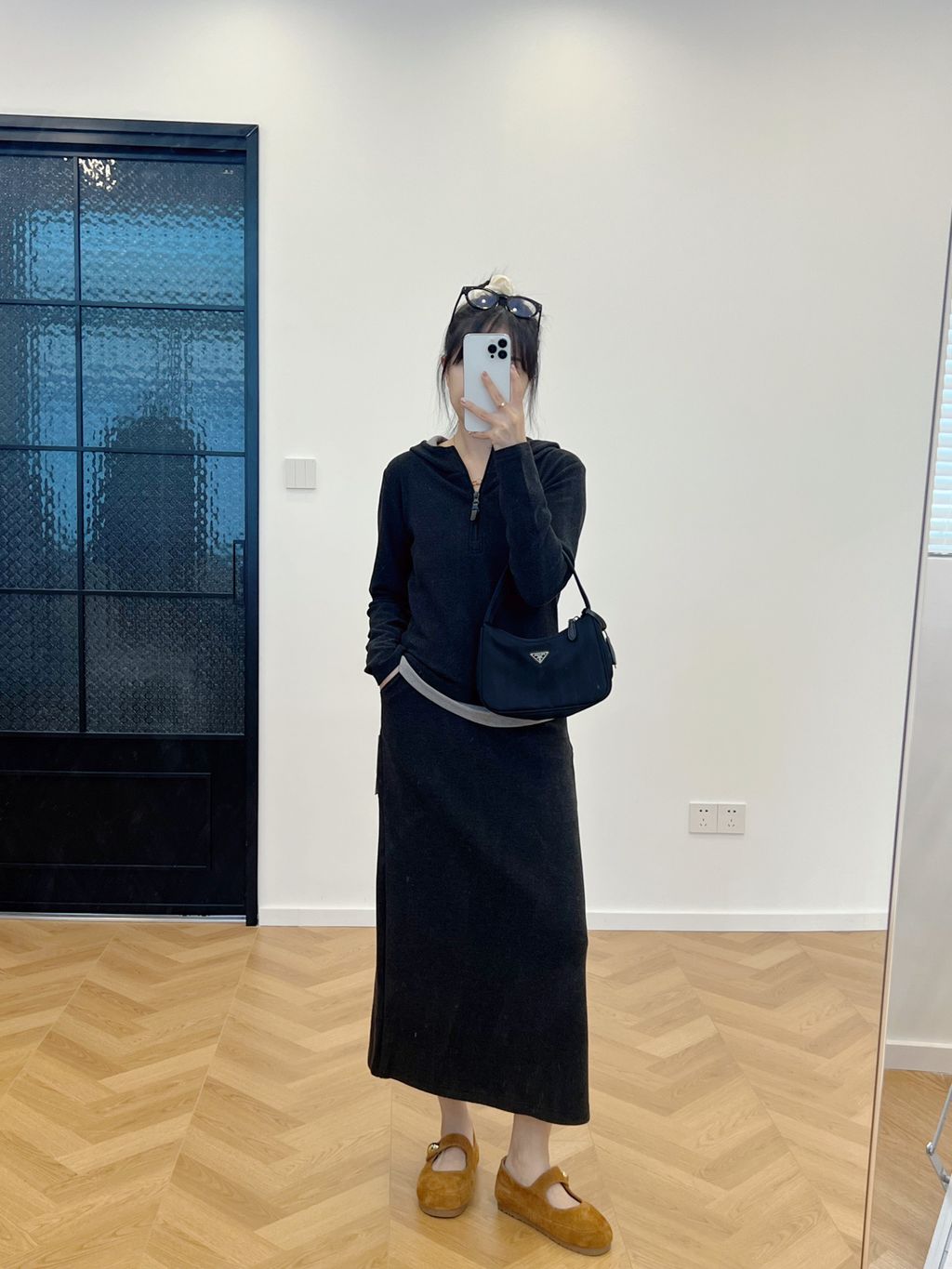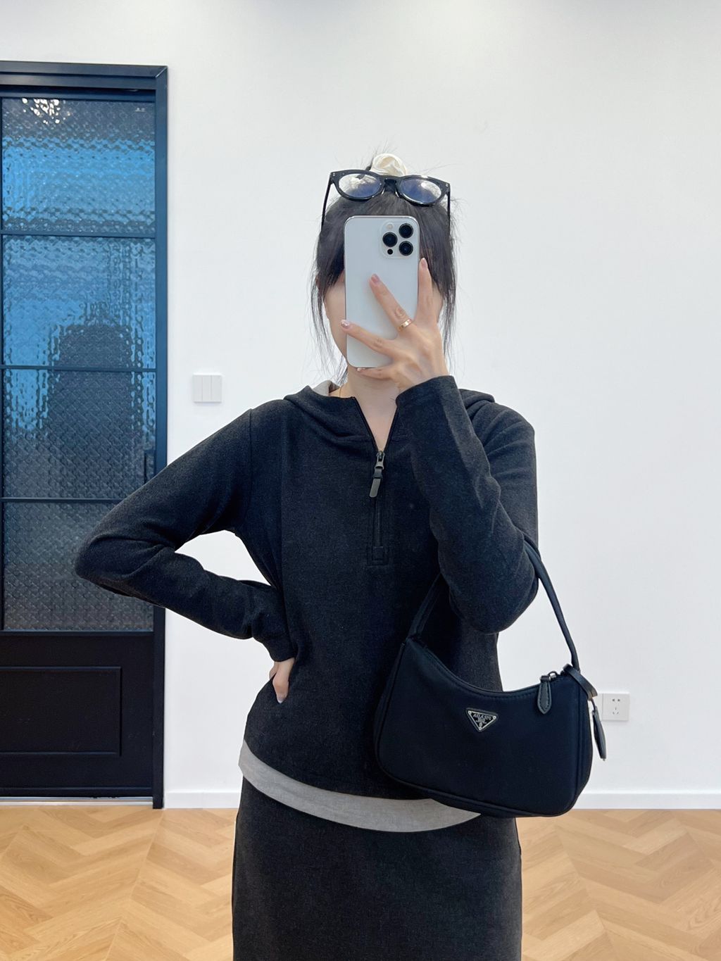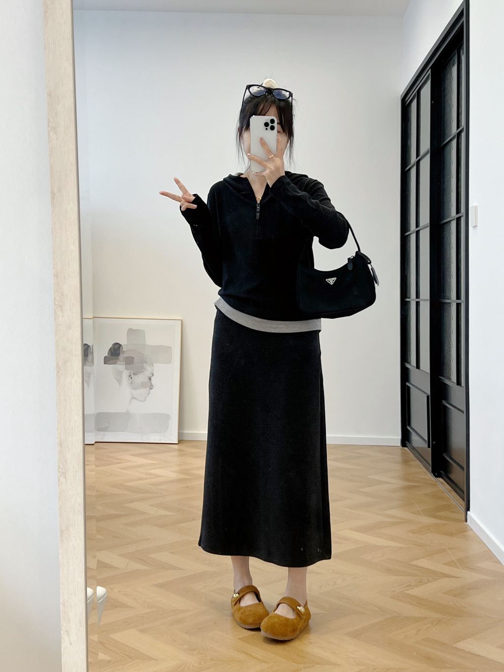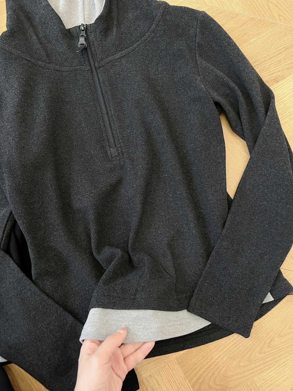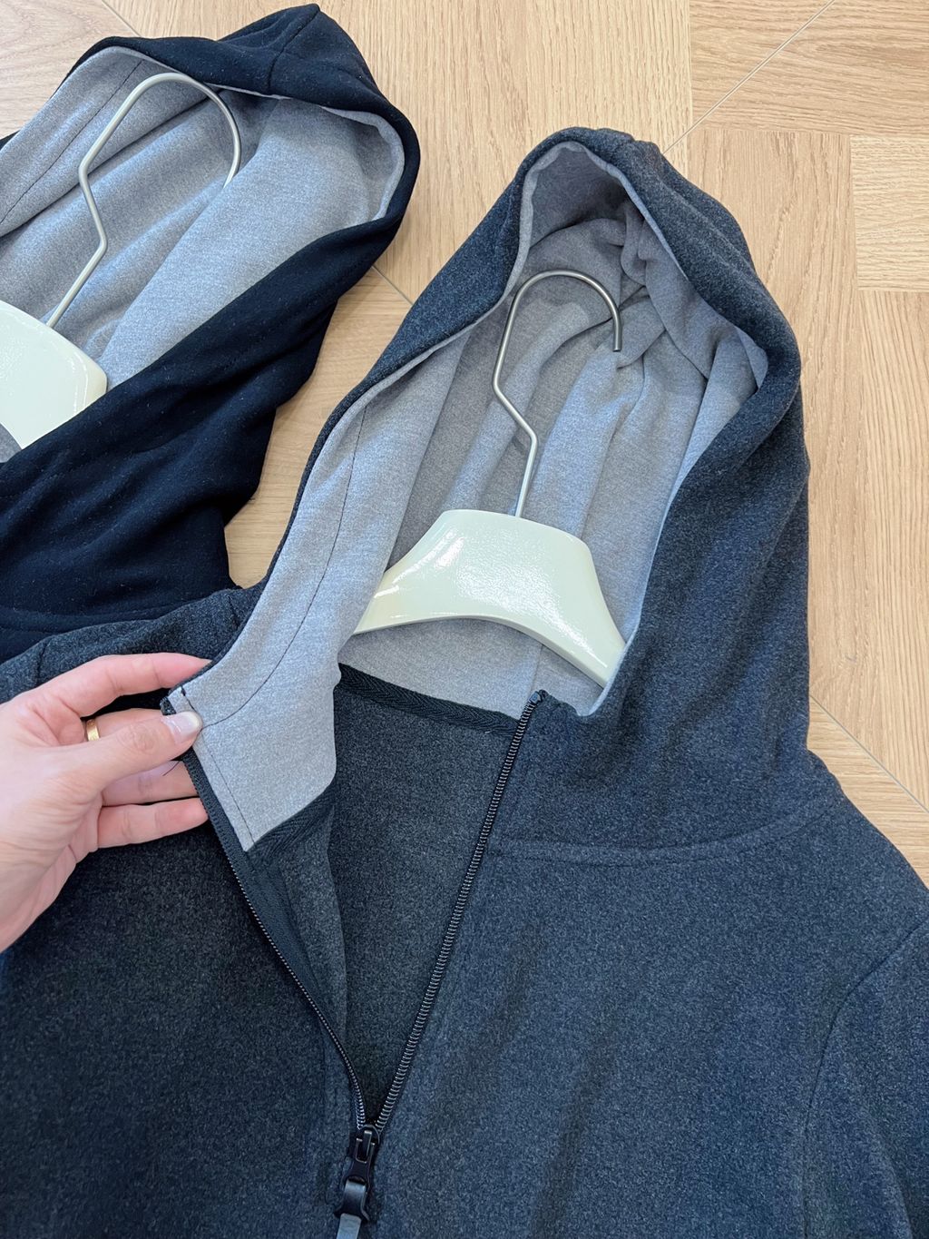 簡單亮眼假兩件設計連帽上衣*深灰黑*【S1216-204】