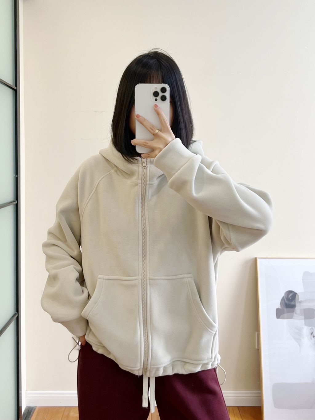 純色系保暖下擺抽繩質感連帽外套*杏黑*【S1216-200】