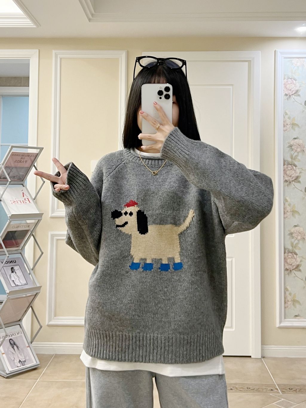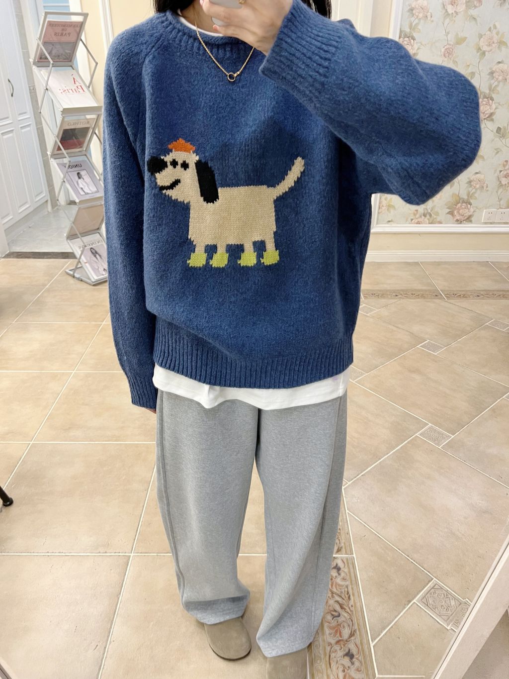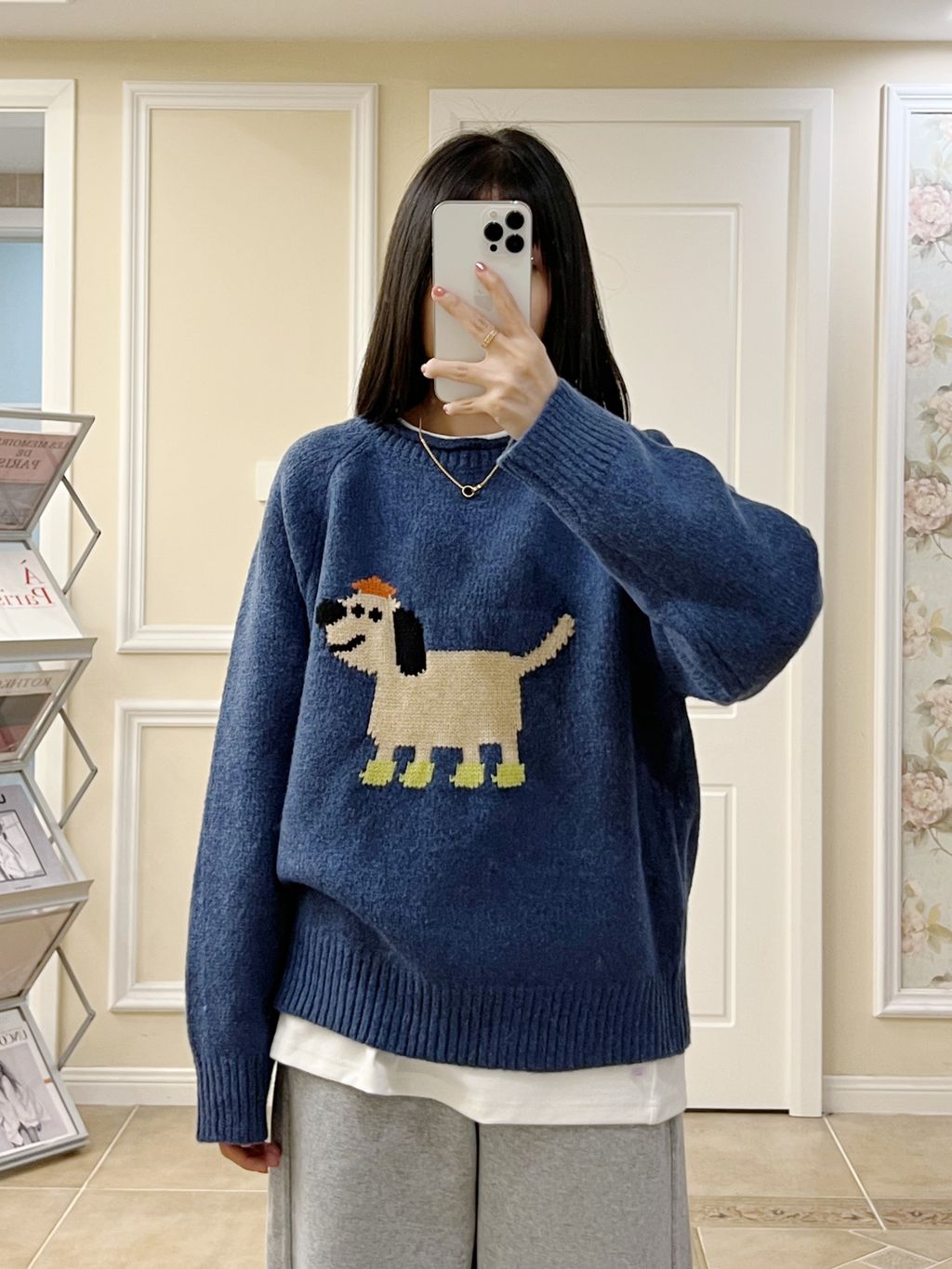 超可愛卡通小狗圖樣質感針織毛衣 *灰藍*【S1216-201】