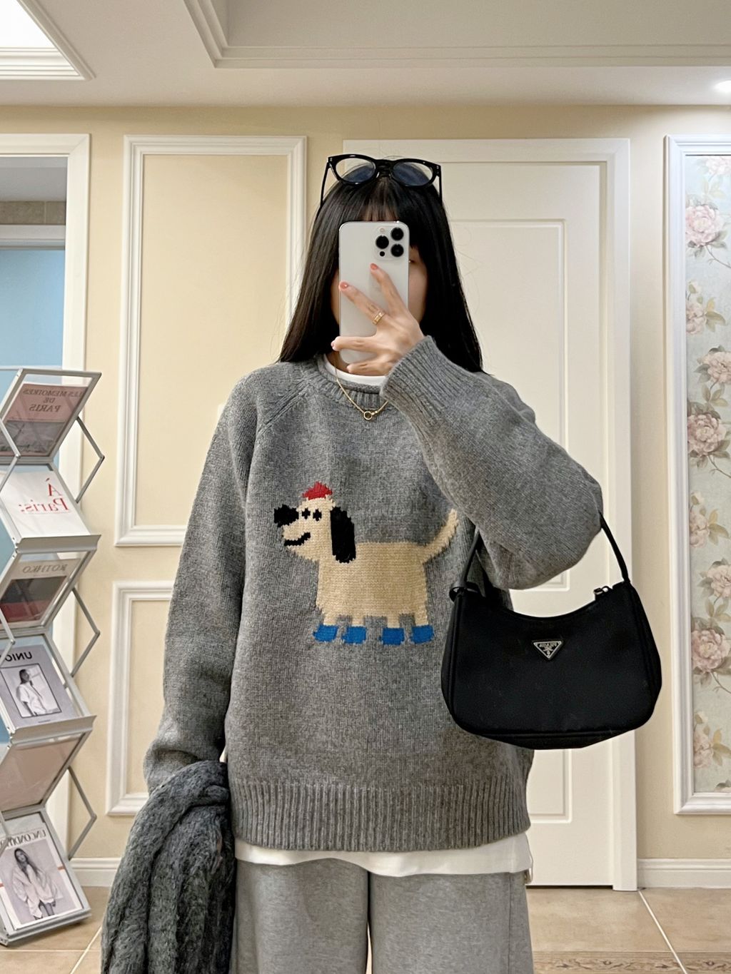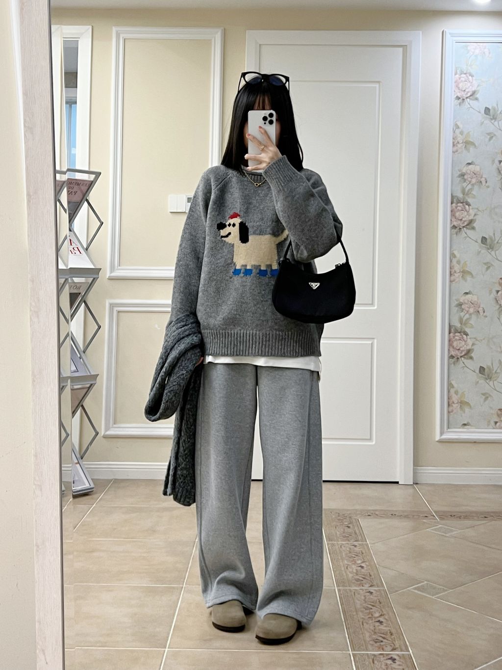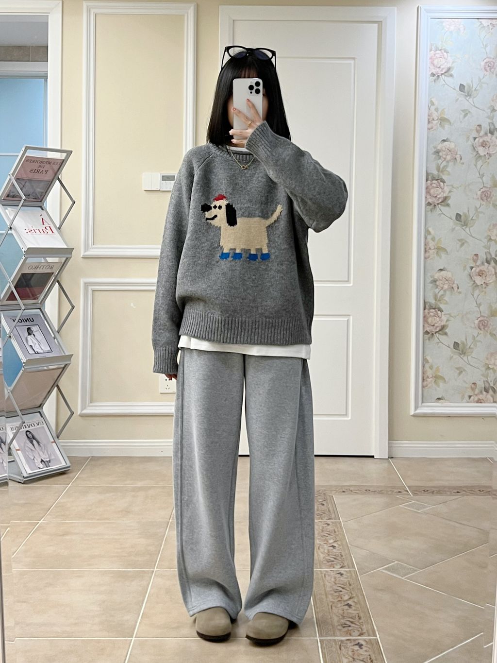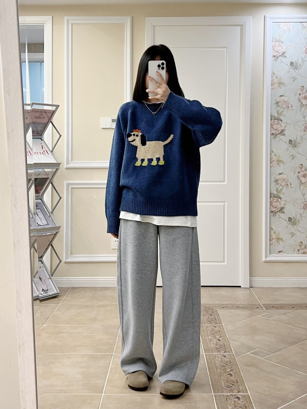 超可愛卡通小狗圖樣質感針織毛衣 *灰藍*【S1216-201】