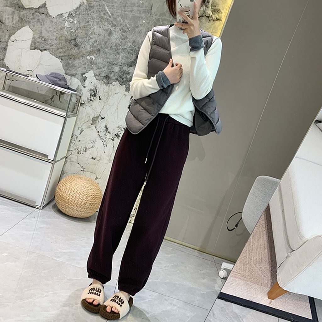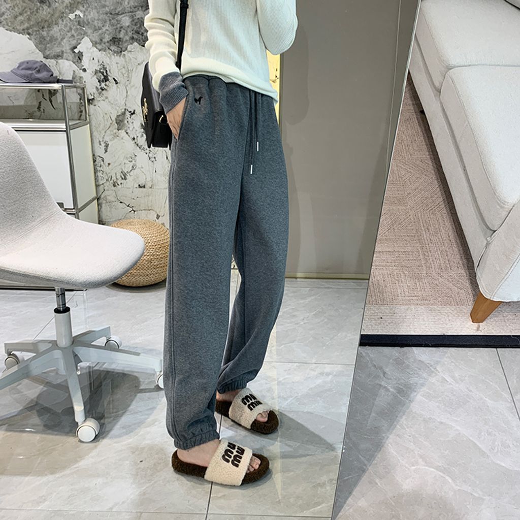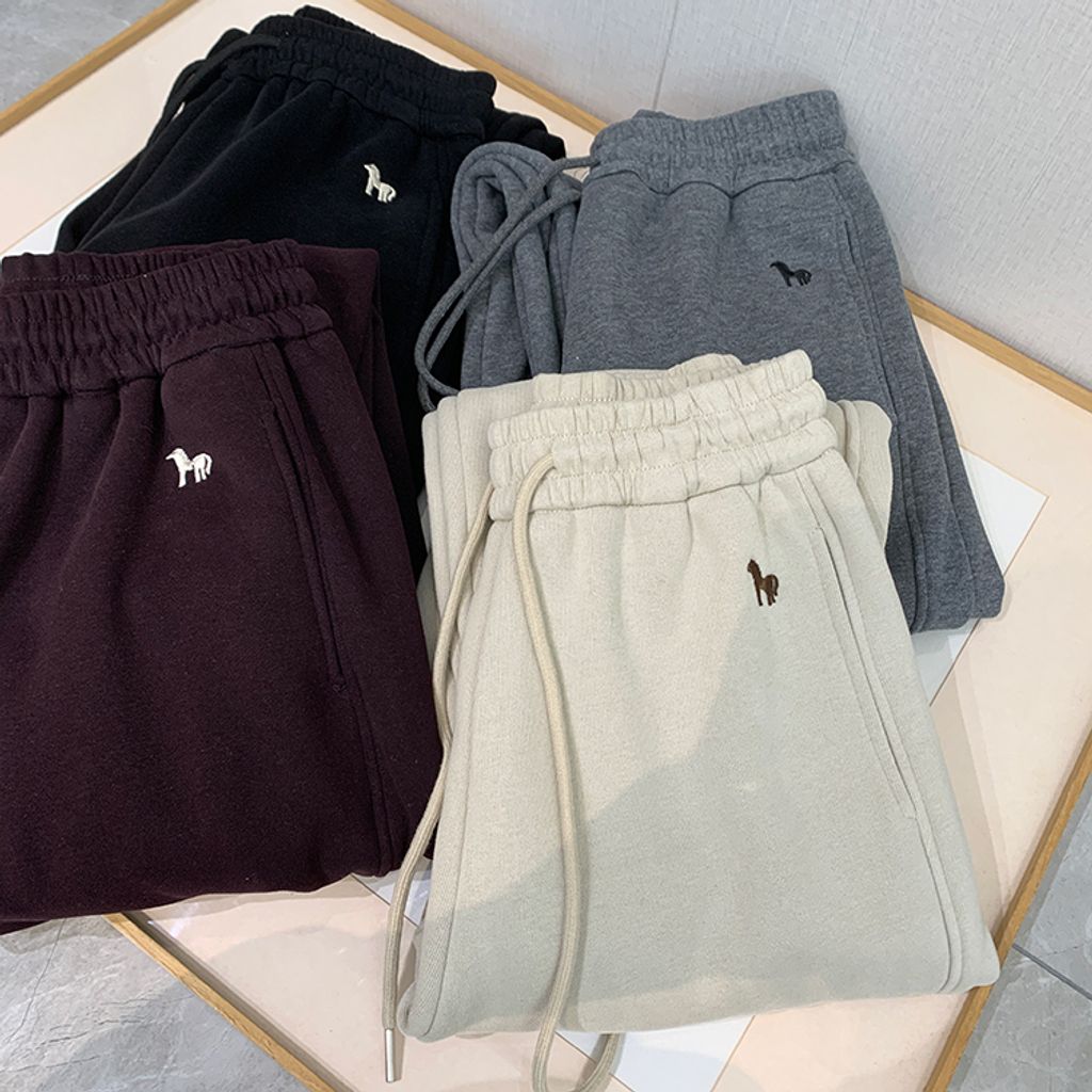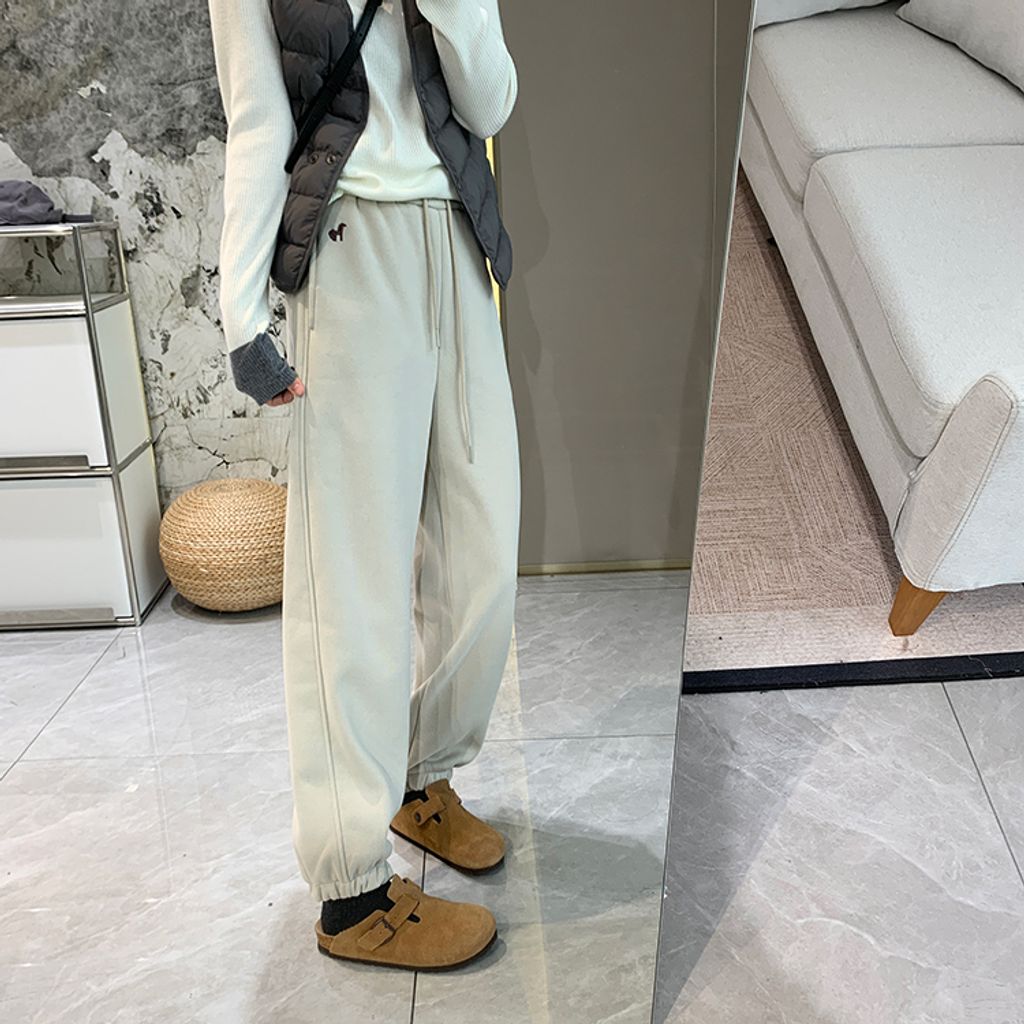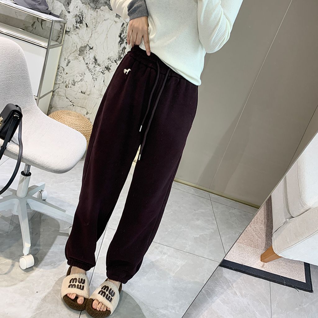 超好穿刷毛保暖質感小刺繡休閒褲 *紫黑奶杏灰*【S1216-37】