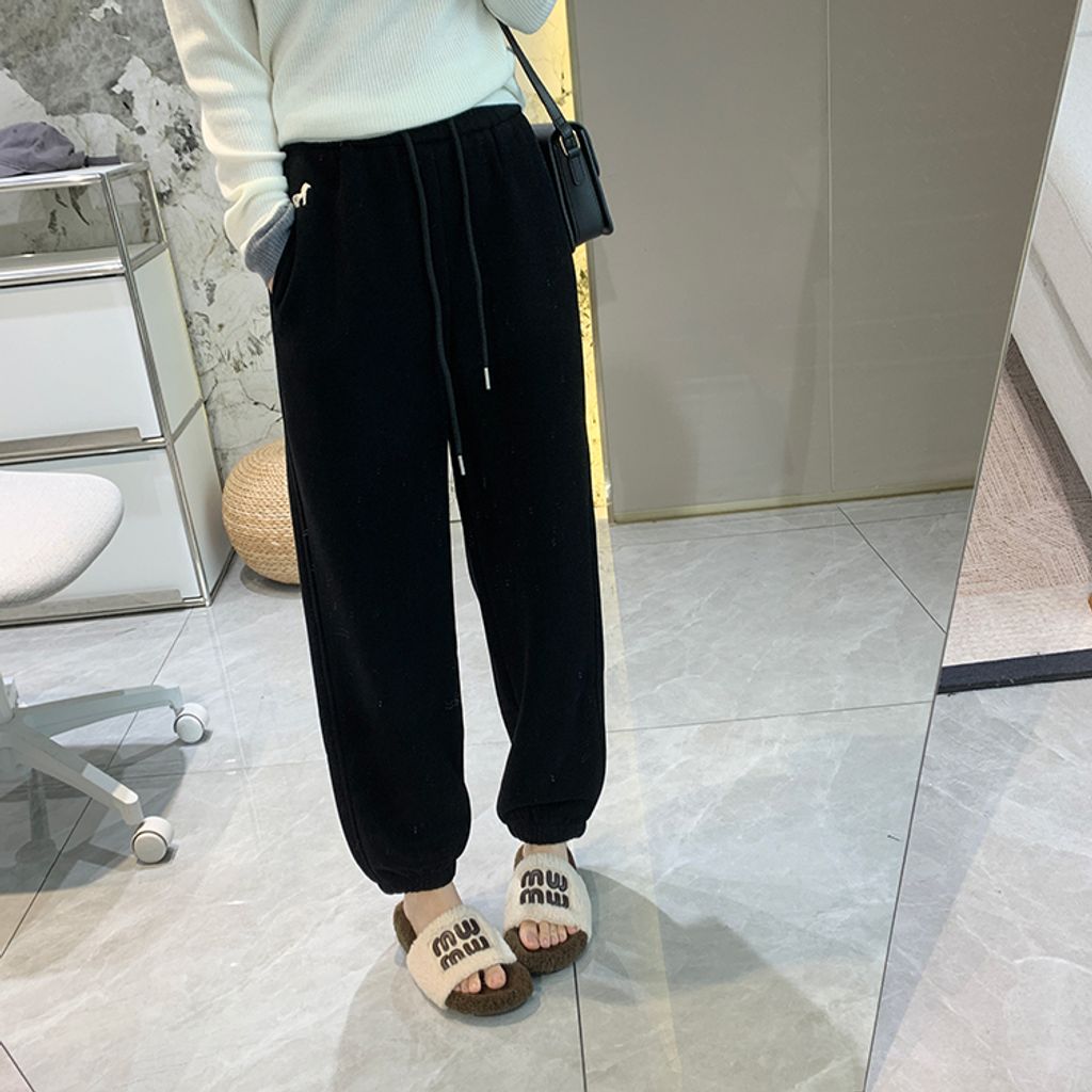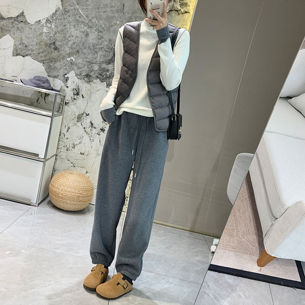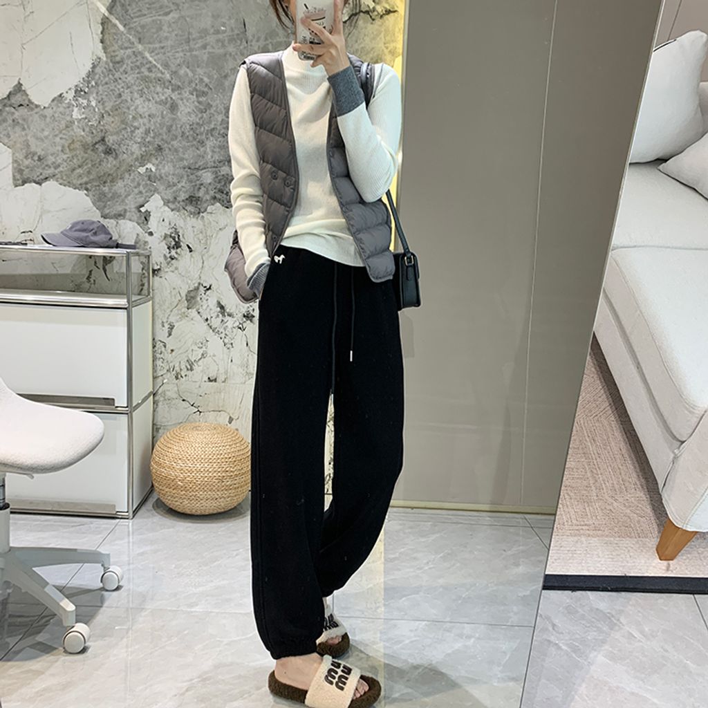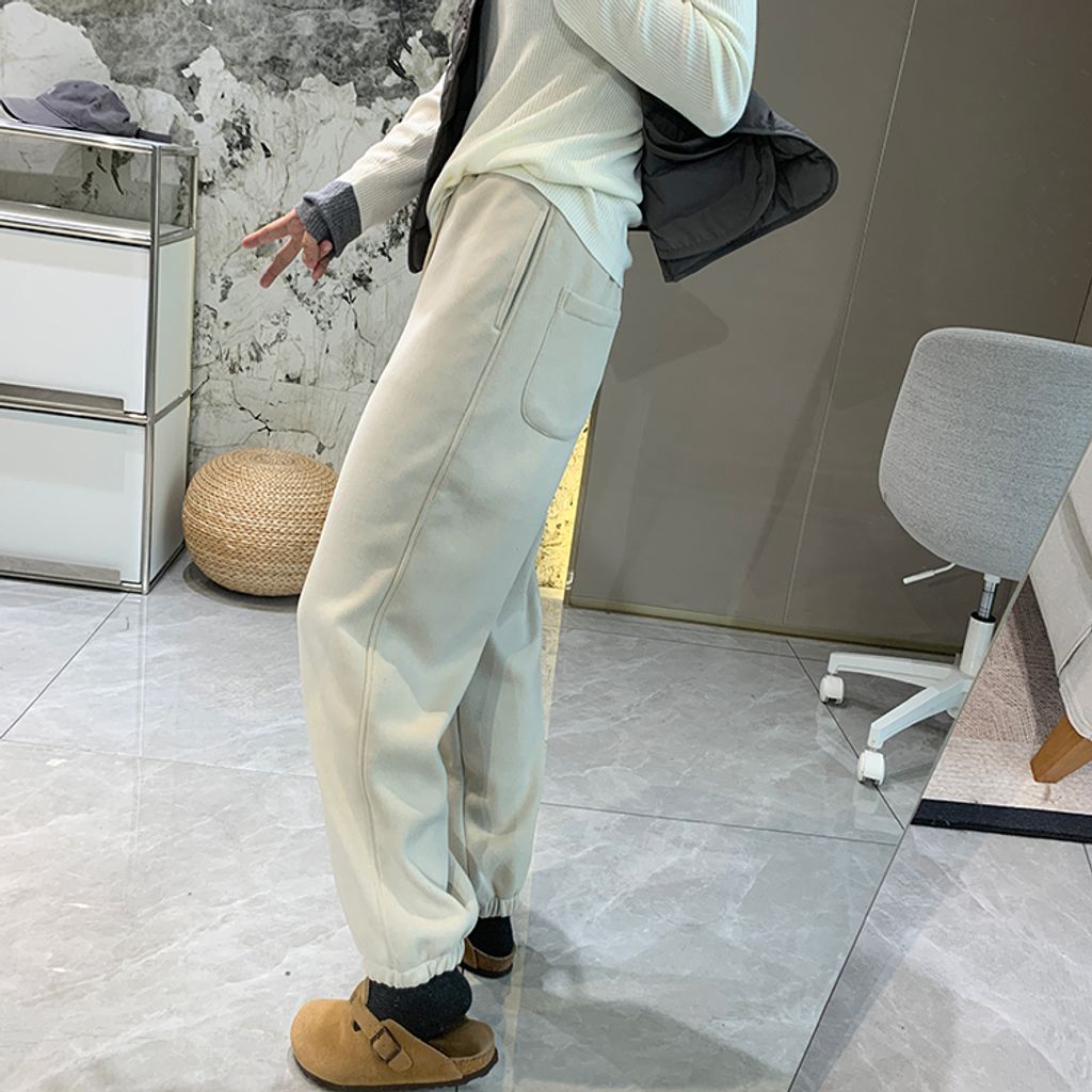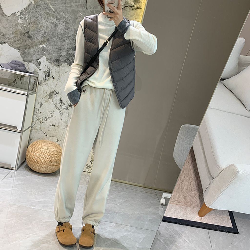 超好穿刷毛保暖質感小刺繡休閒褲 *紫黑奶杏灰*【S1216-37】