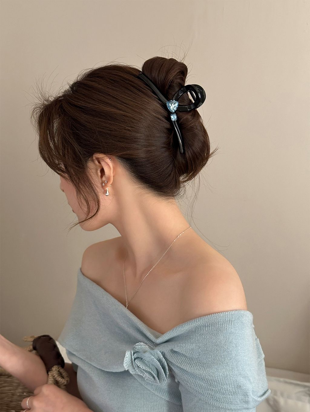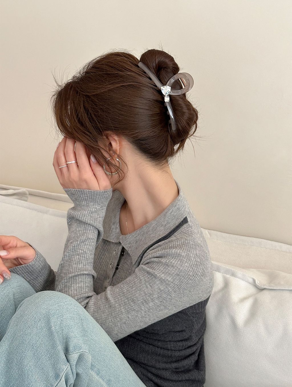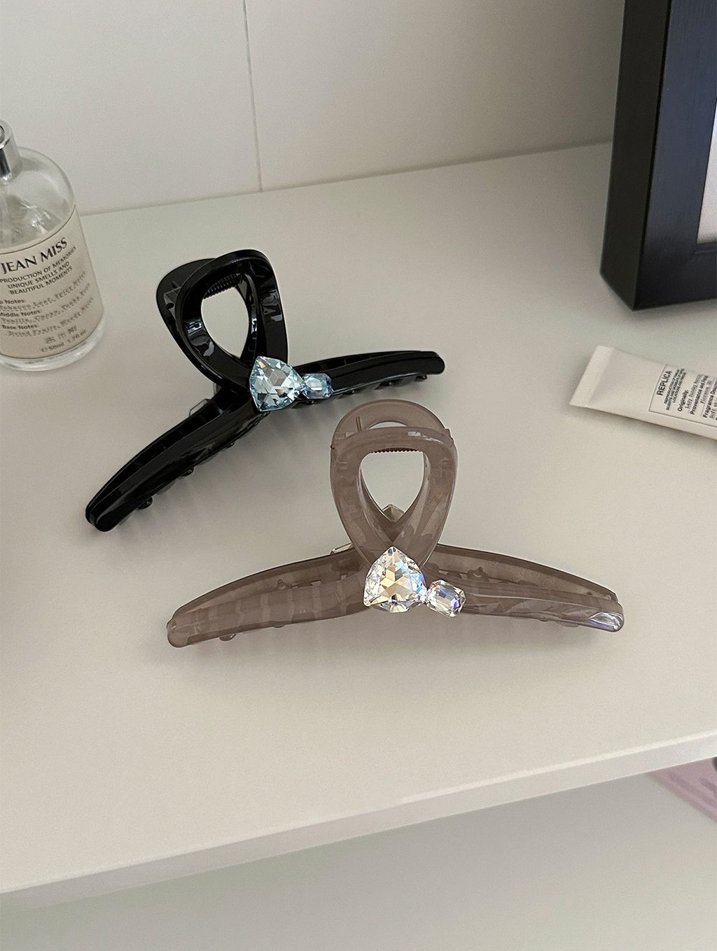 正韓 低調華麗水鑽設計質感髮夾抓夾*黑灰*【N0731-35】