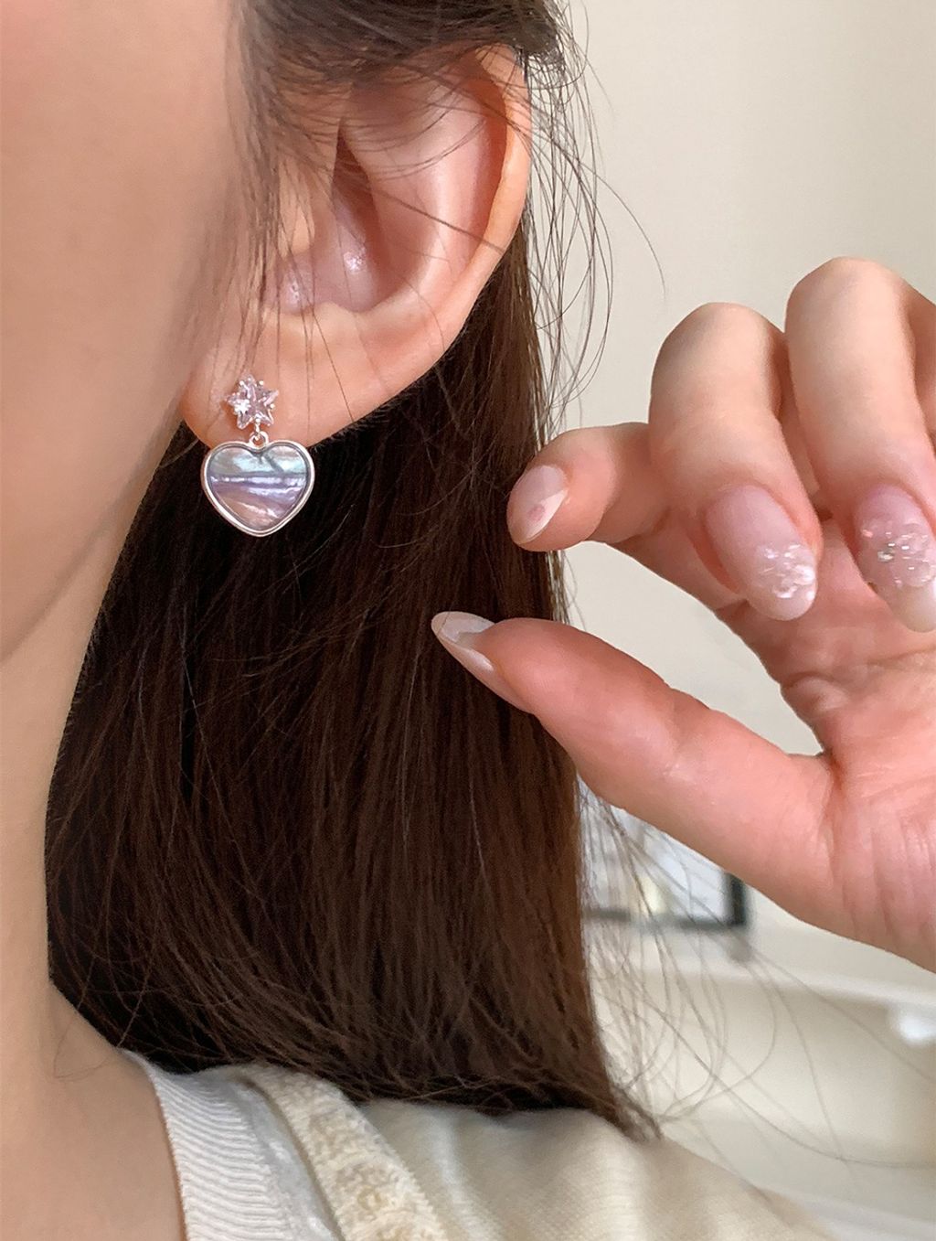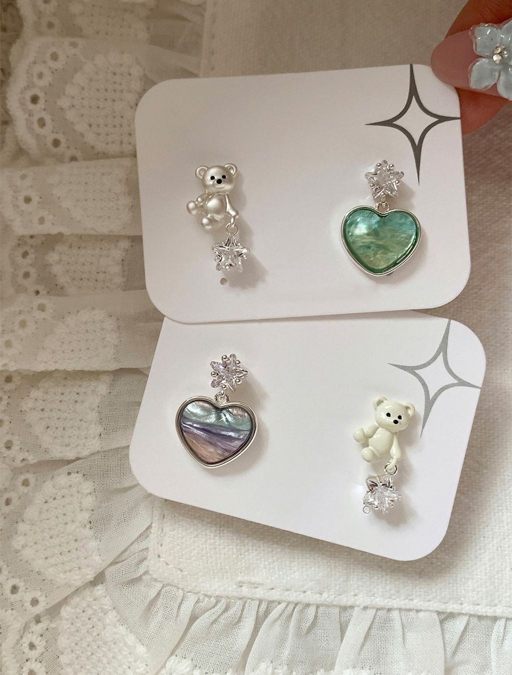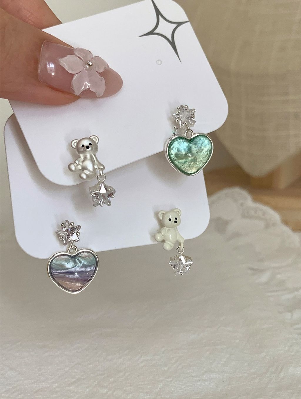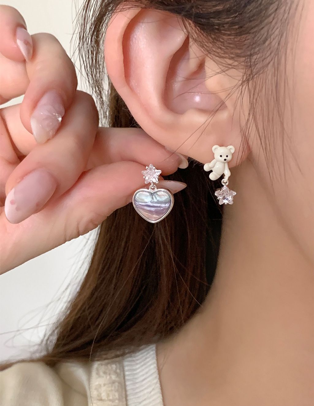 正韓 可愛垂墜小熊愛心水鑽純銀耳針*紫愛心*【P0812-51】