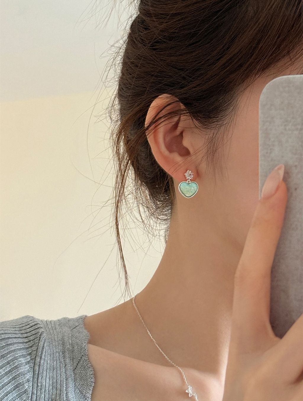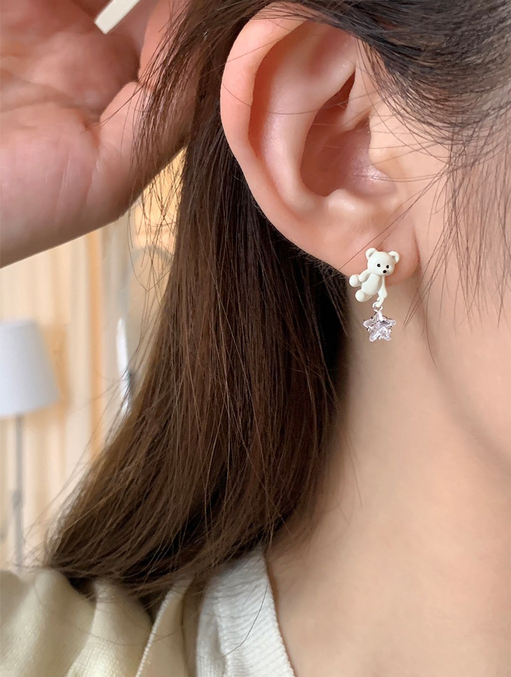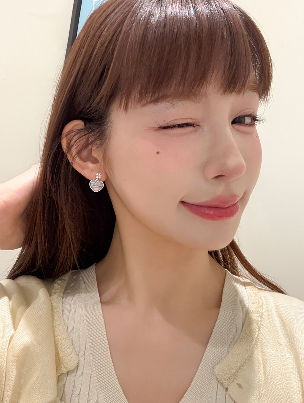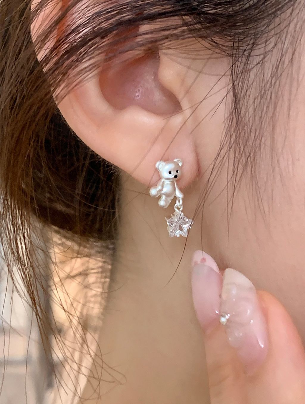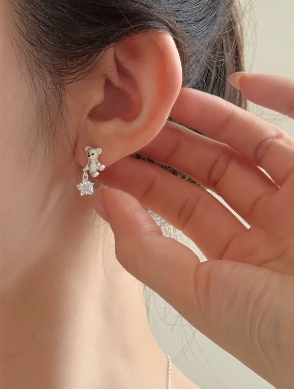 正韓 可愛垂墜小熊愛心水鑽純銀耳針*紫愛心*【P0812-51】