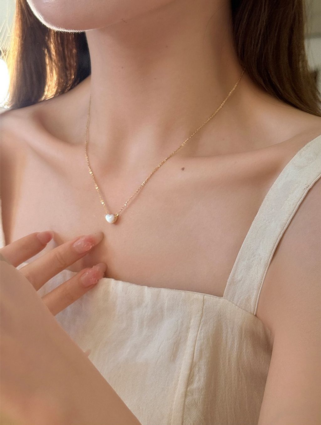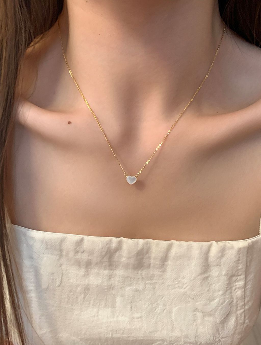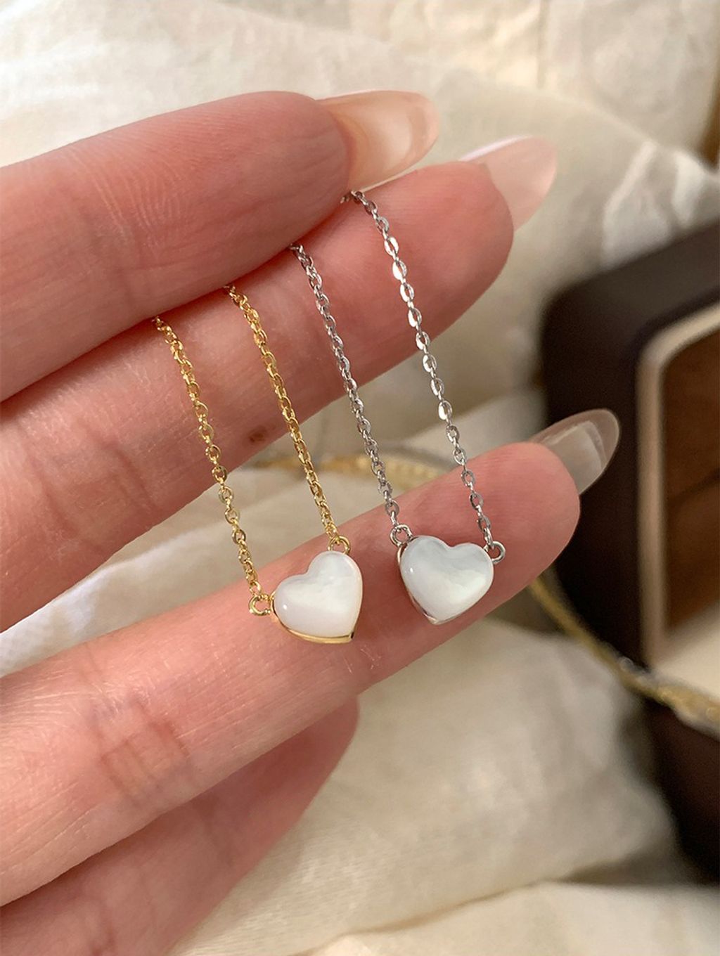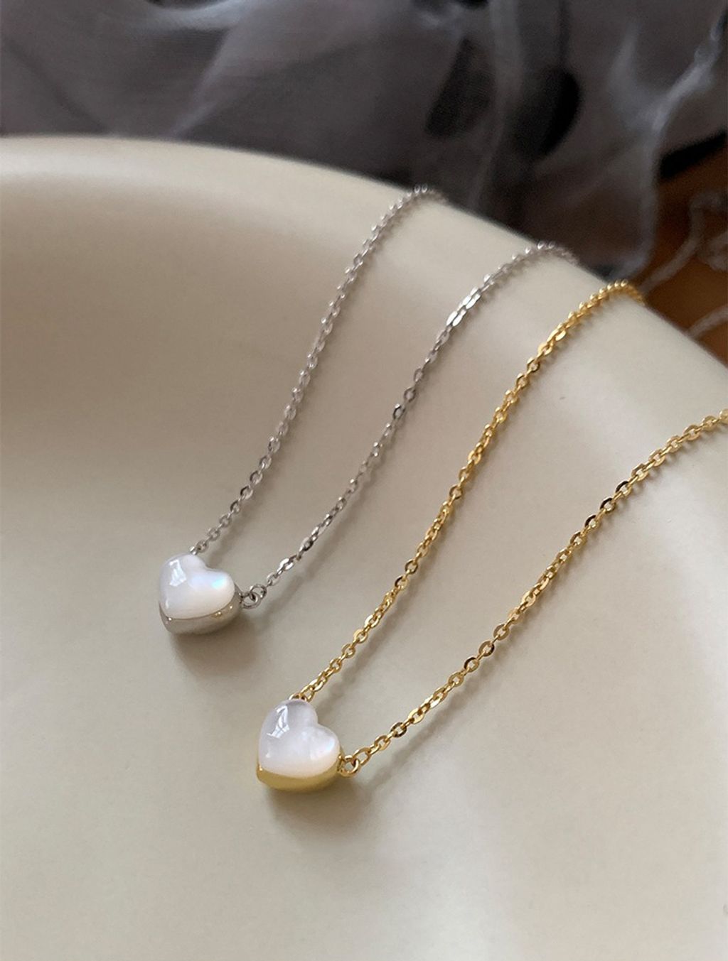 正韓 法式甜美時尚愛心貝殼質感純銀項鍊*金銀*【N0731-44】
