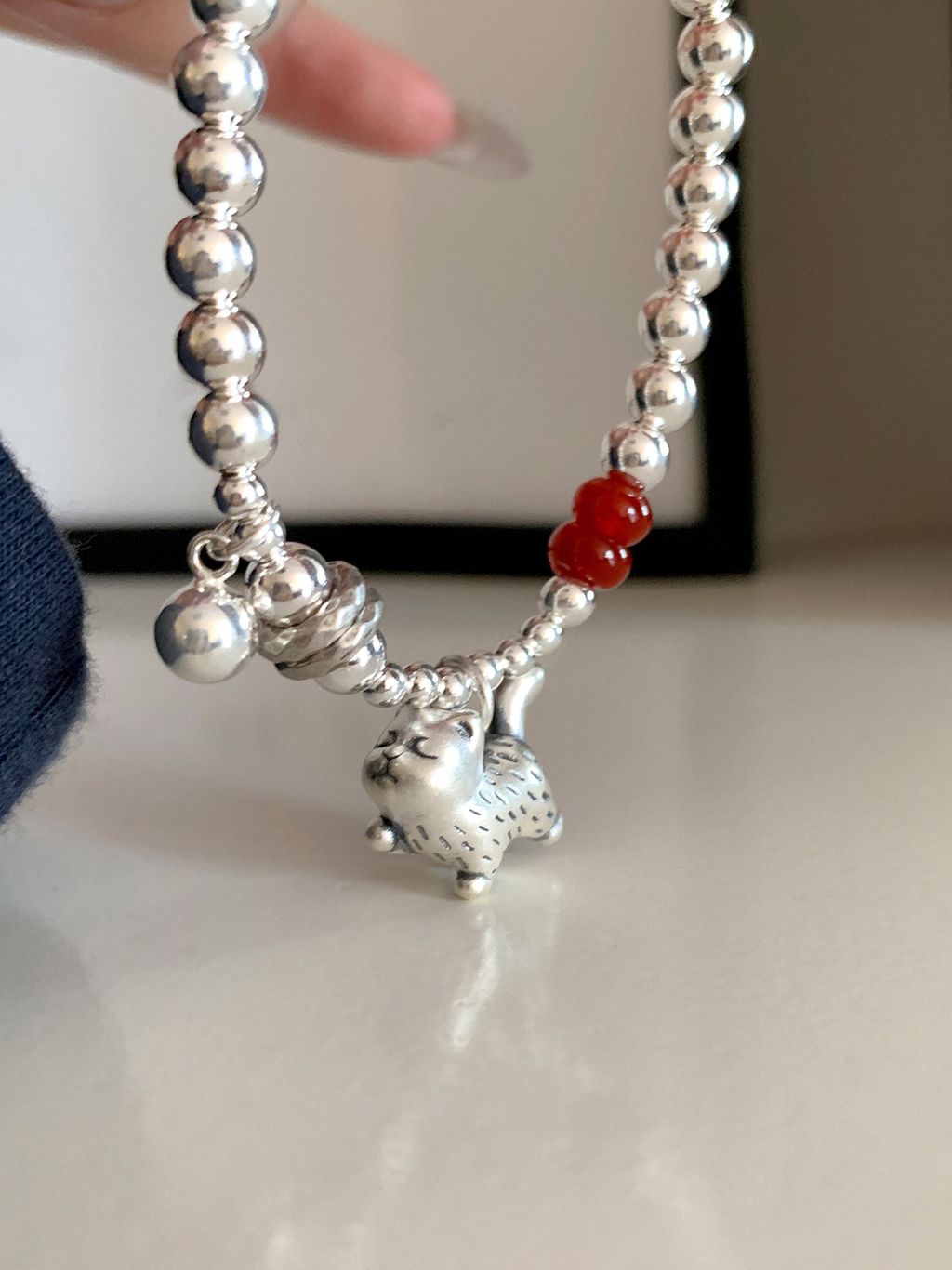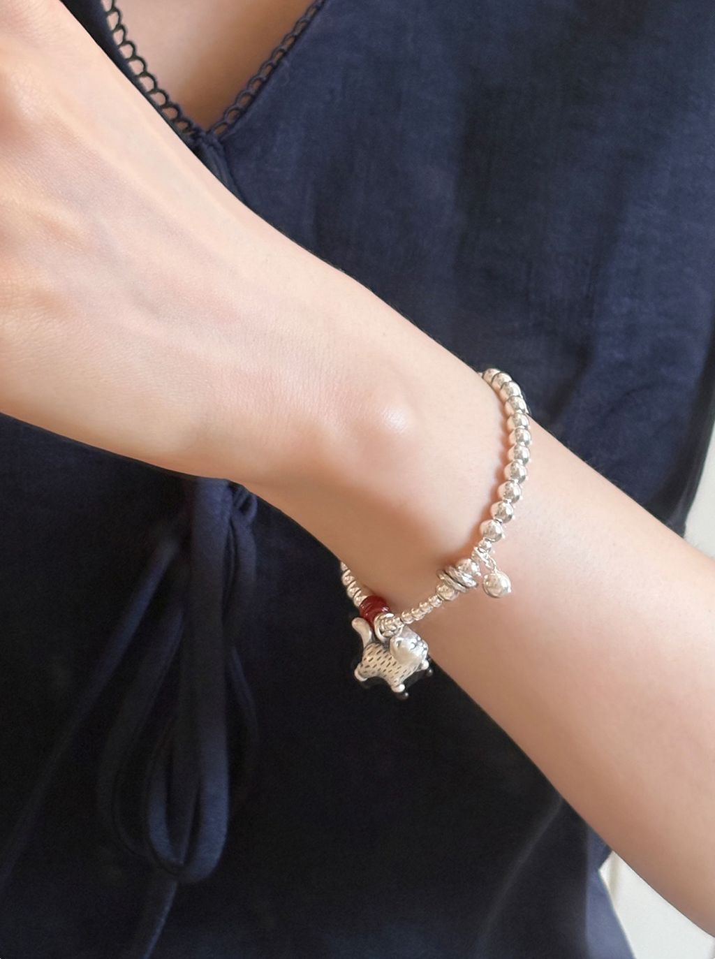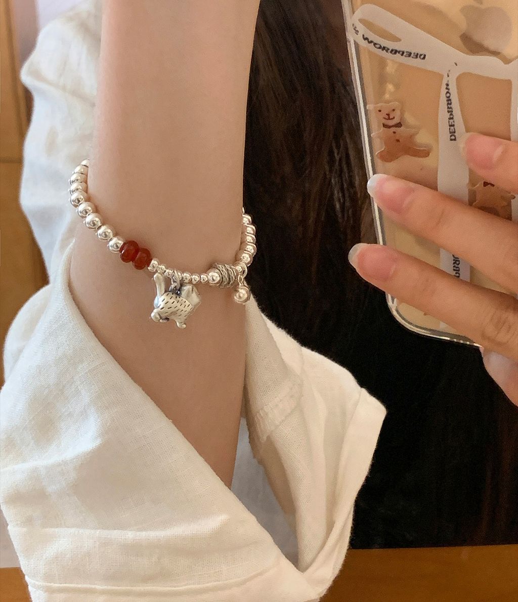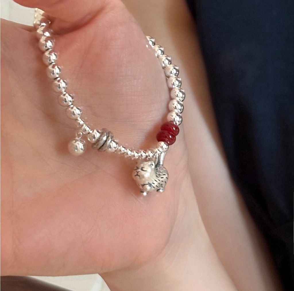 正韓 高級設計師款小貓咪瑪瑙純銀手鍊*銀*【P0812-35】