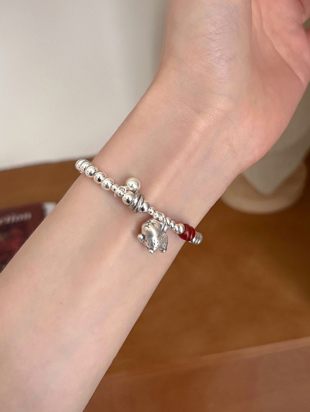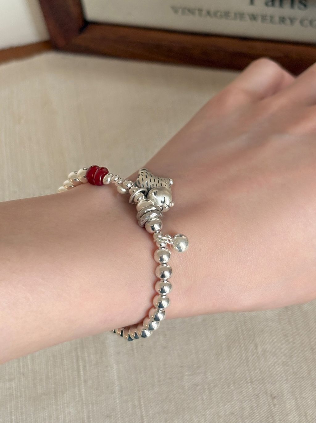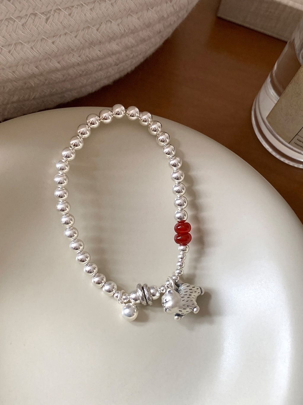 正韓 高級設計師款小貓咪瑪瑙純銀手鍊*銀*【P0812-35】
