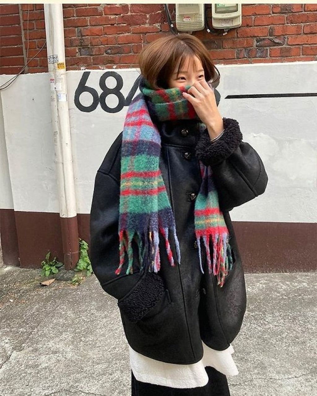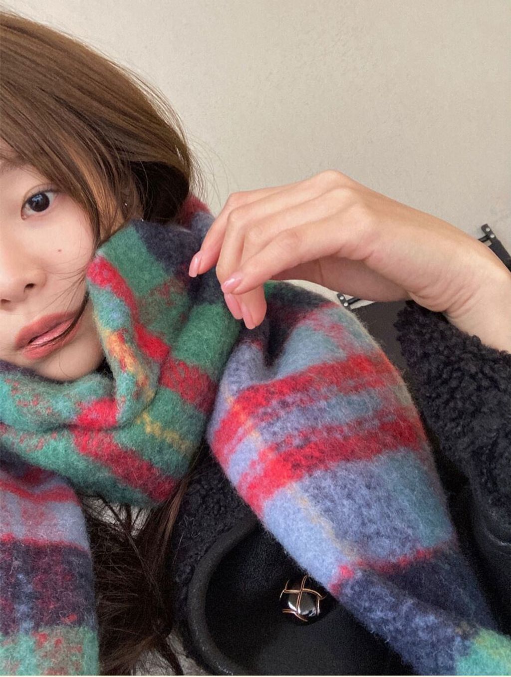 正韓 復古氣質亮眼彩色撞色柔軟圍巾披肩*彩格*【S1105-181】