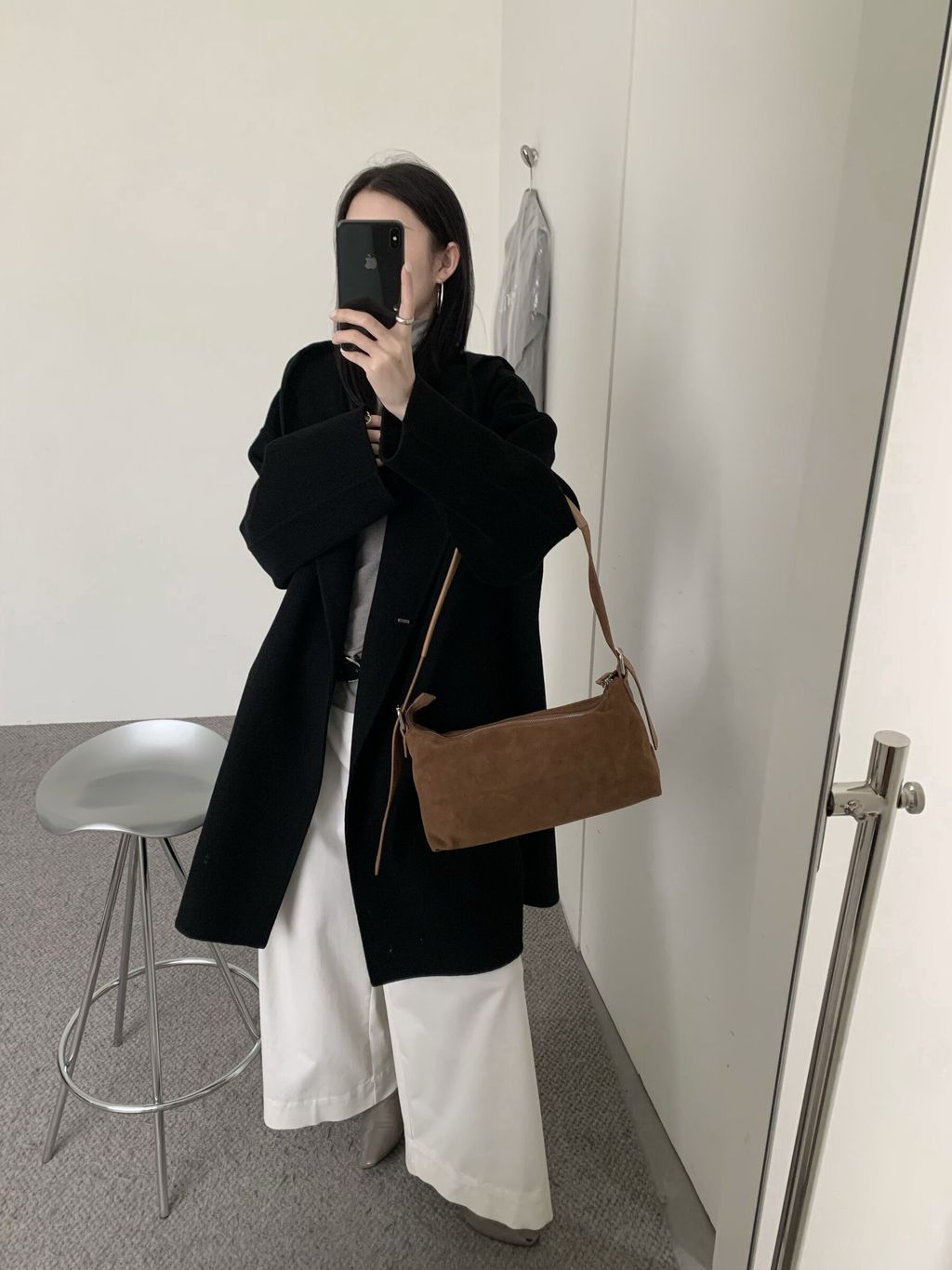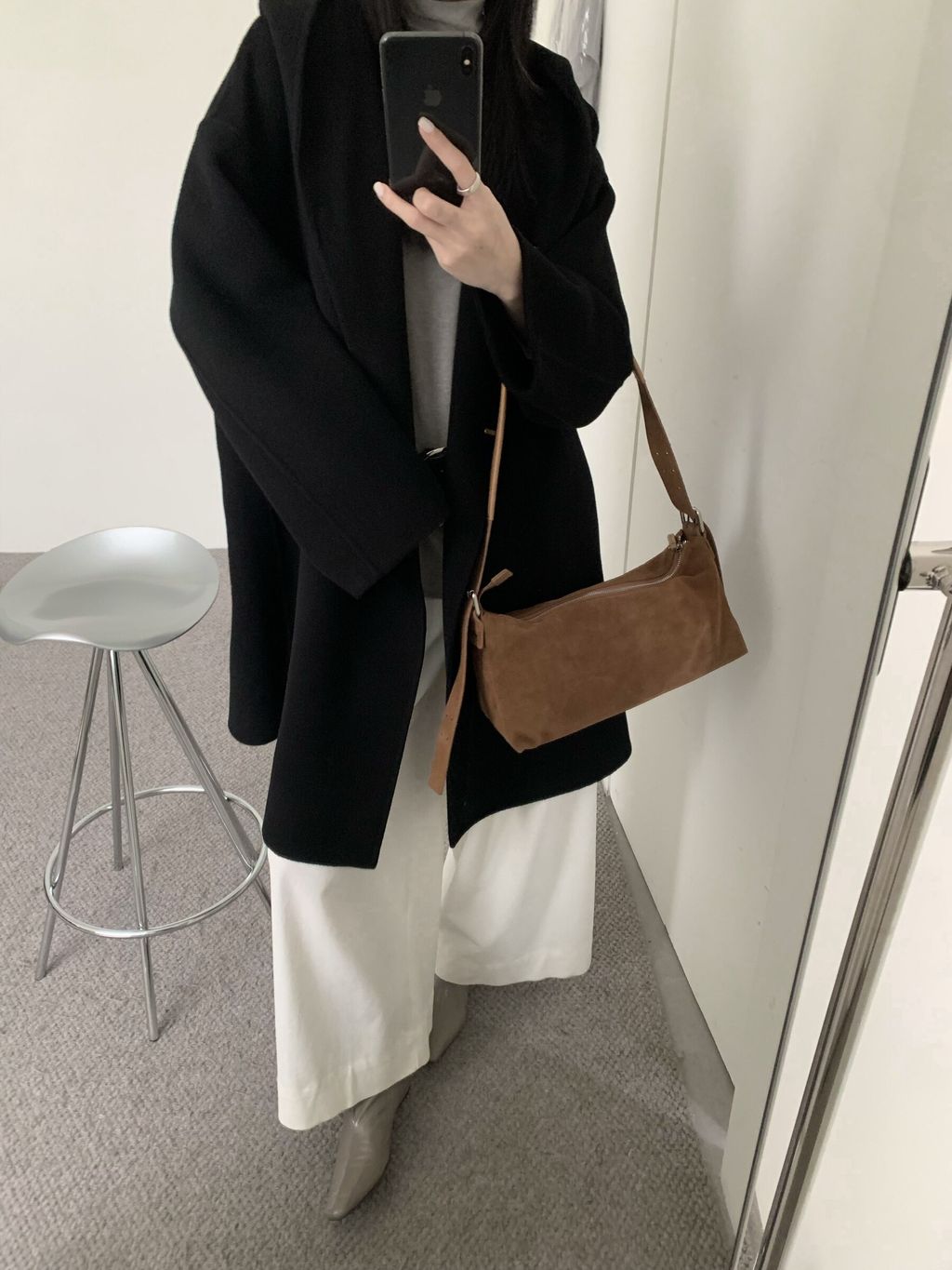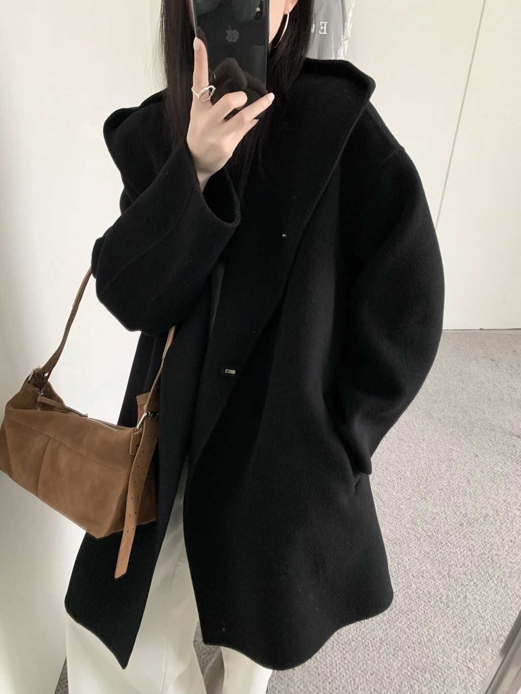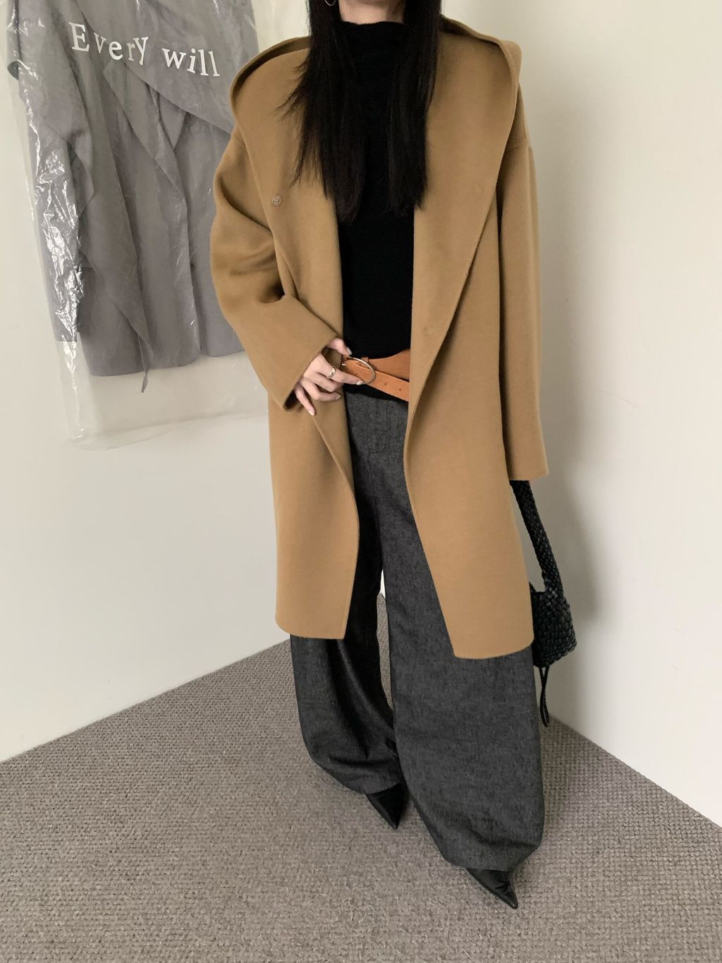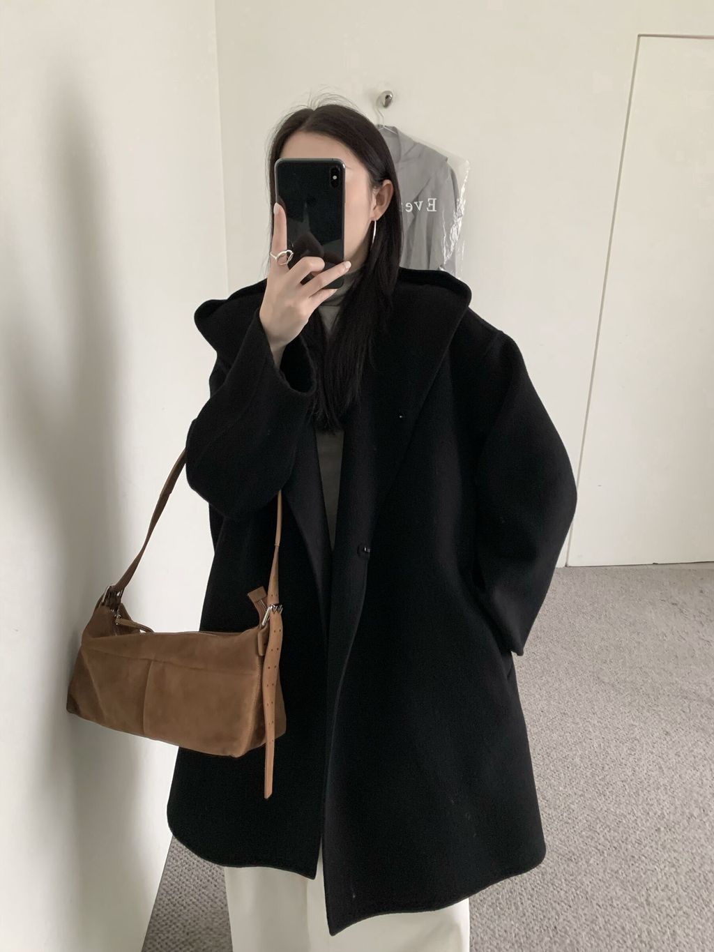 正韓 復古氣質連帽斗篷設計100%羊毛大衣外套*黑駝*【S0125-82】