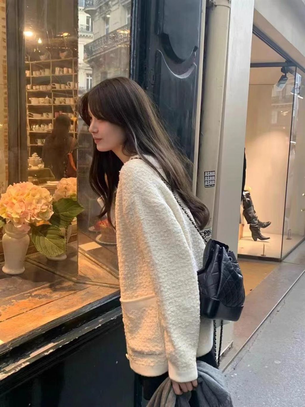 正韓 法式優雅氣質壓紋設計感羊毛針織毛衣*米黑*【S1105-185】
