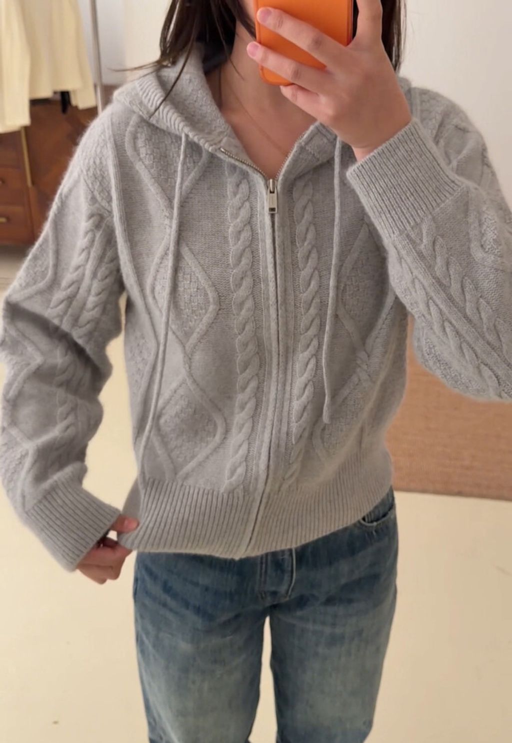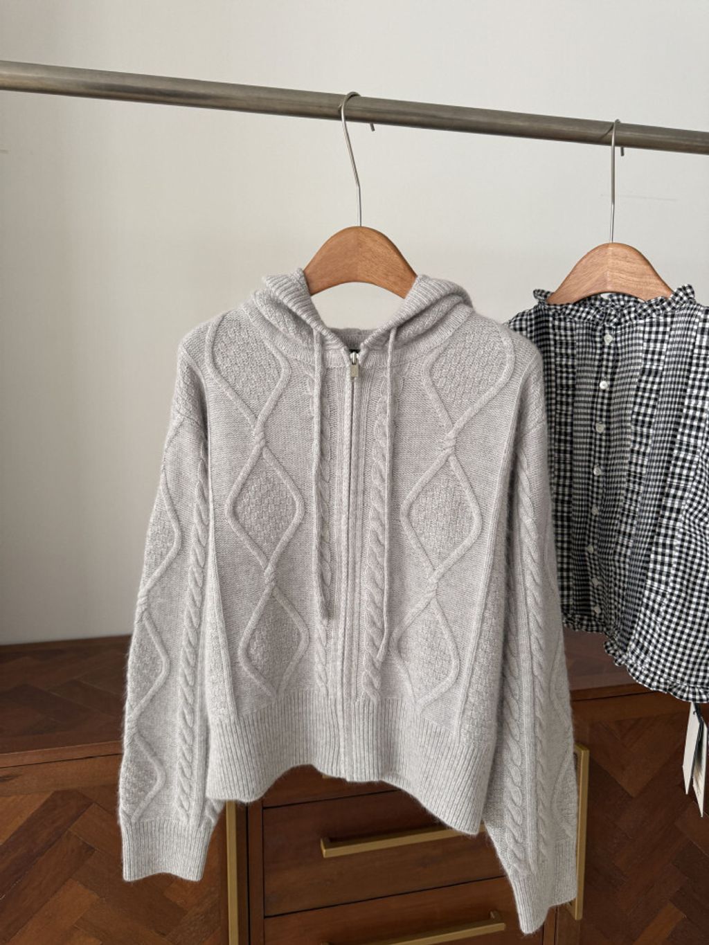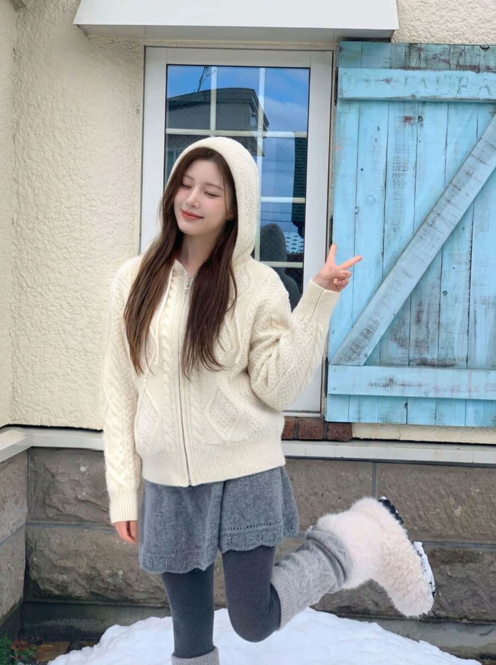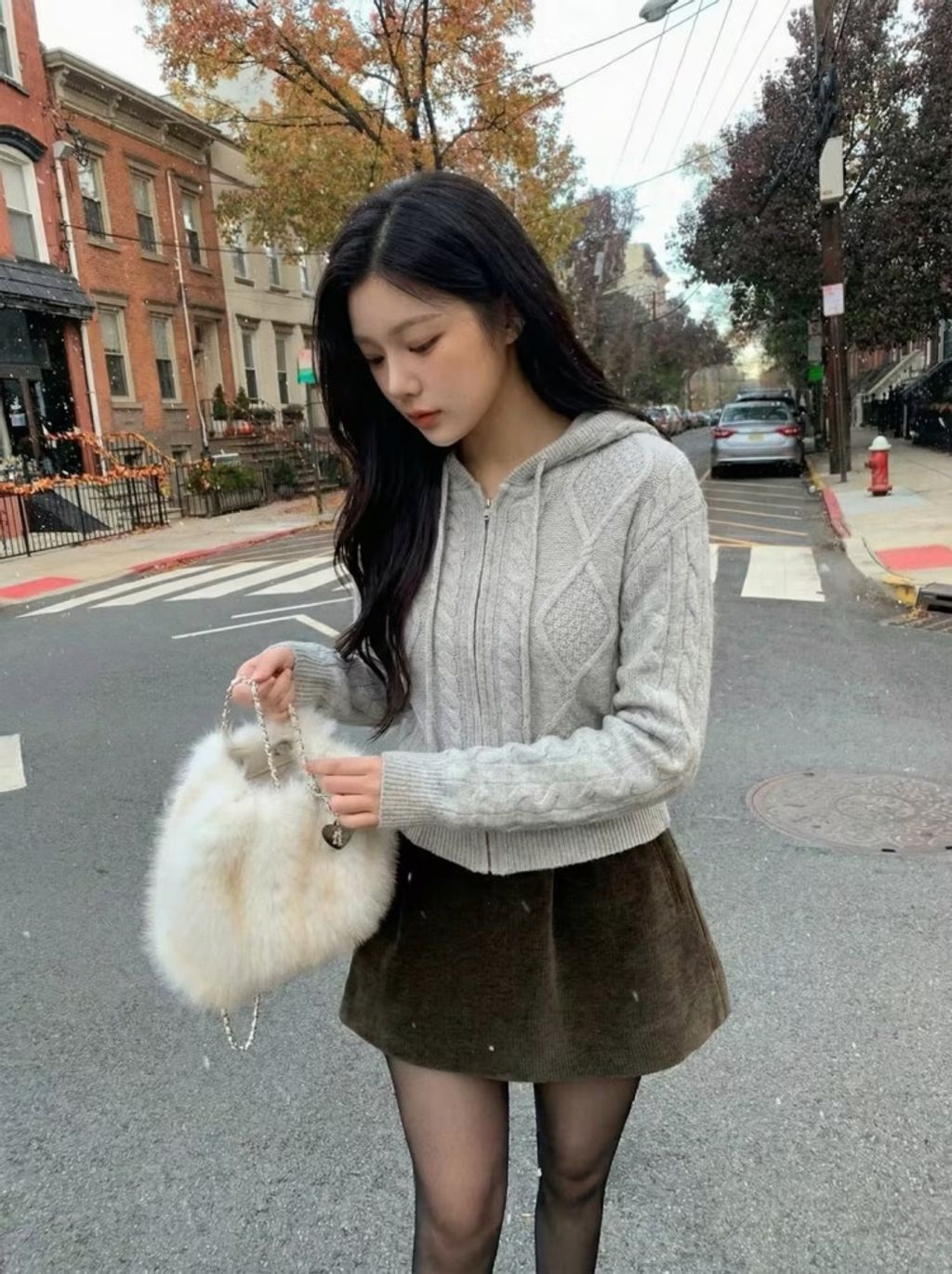 正韓 甜美設計感菱格浣熊羊毛針織小外套*灰象牙白*【S0125-61】