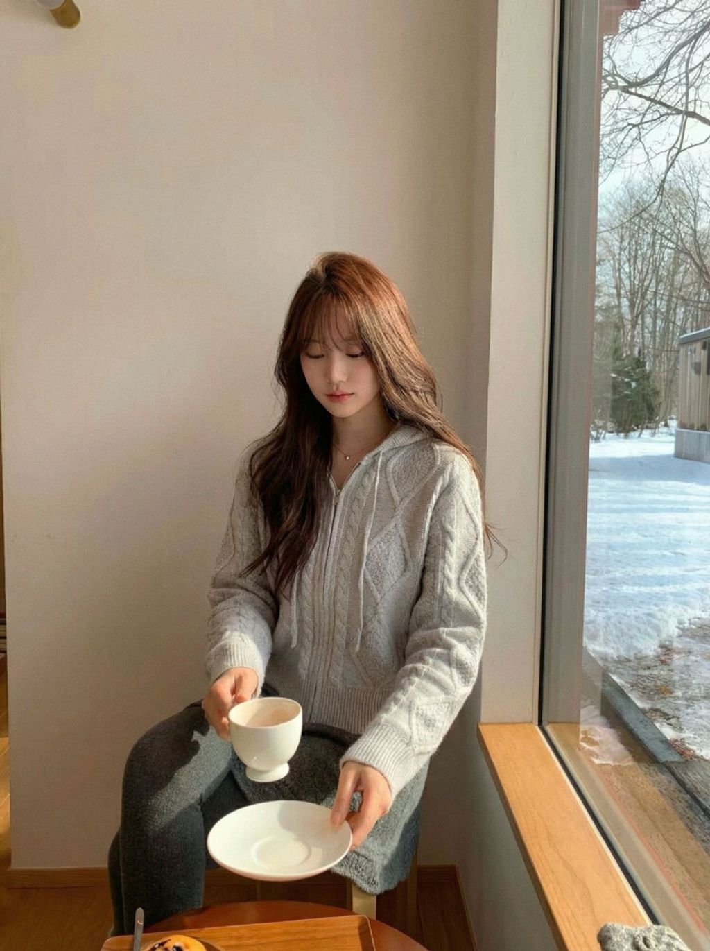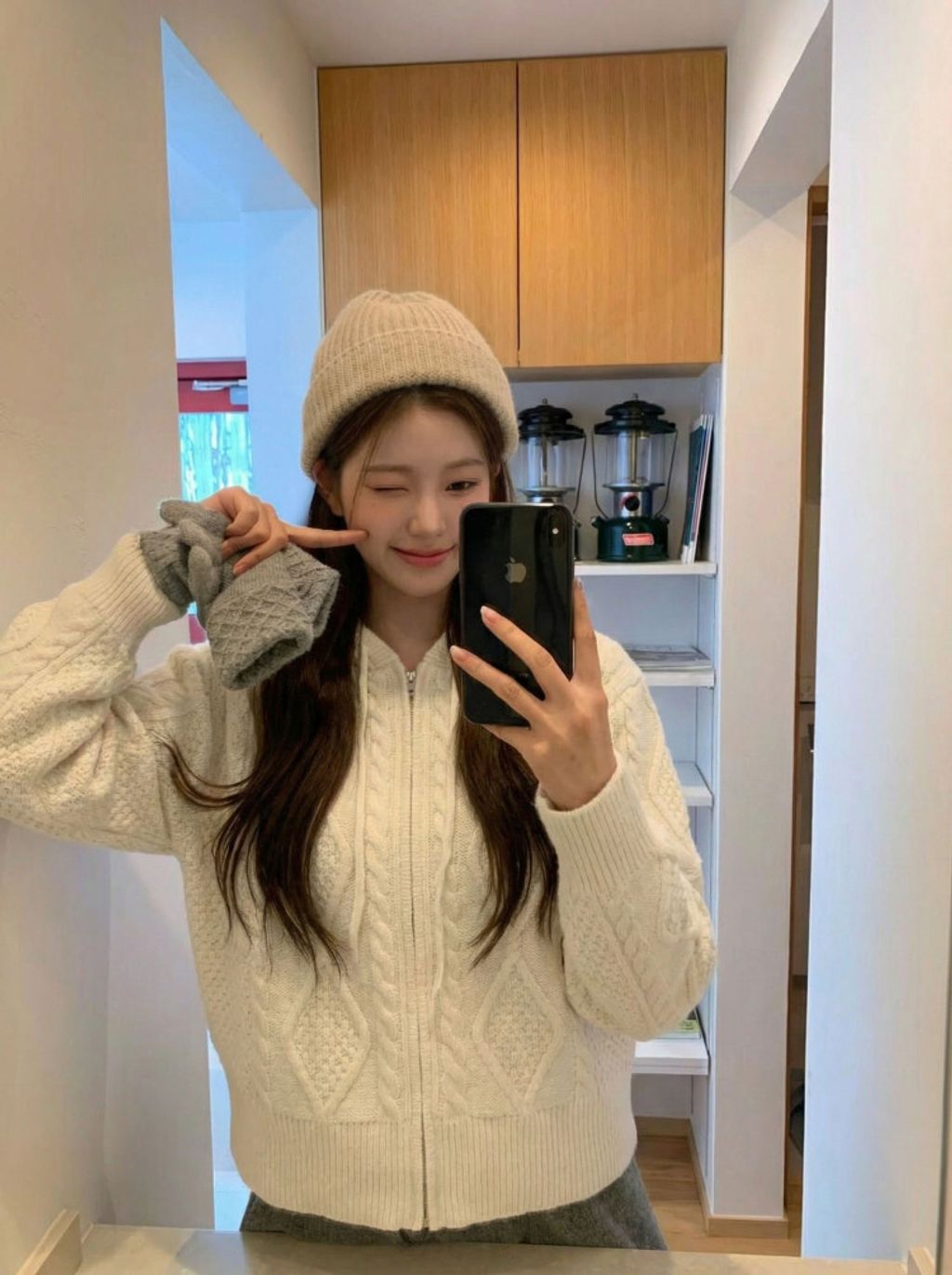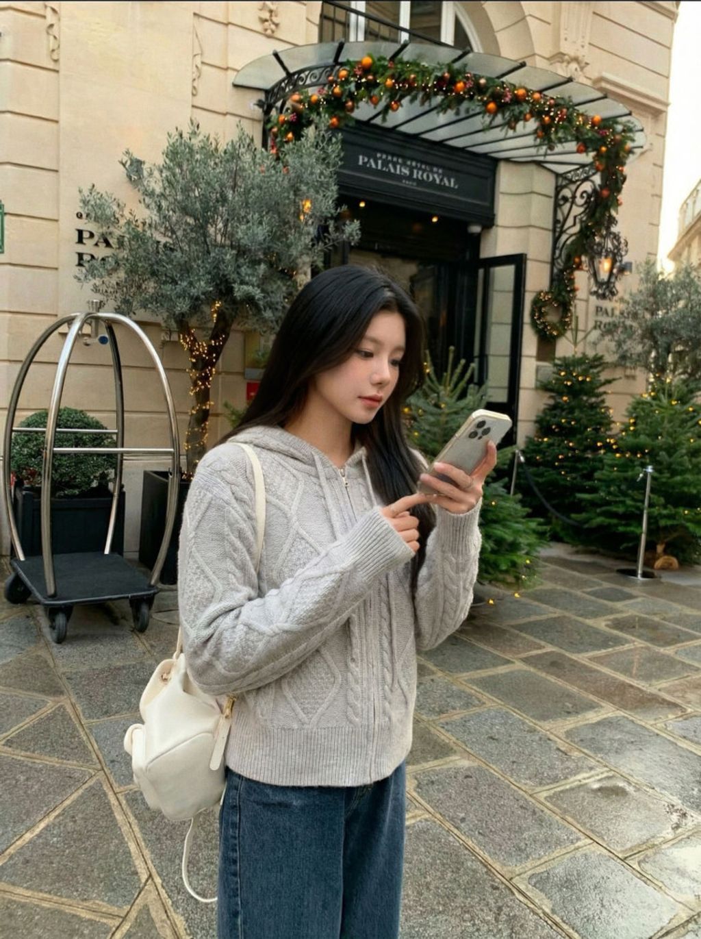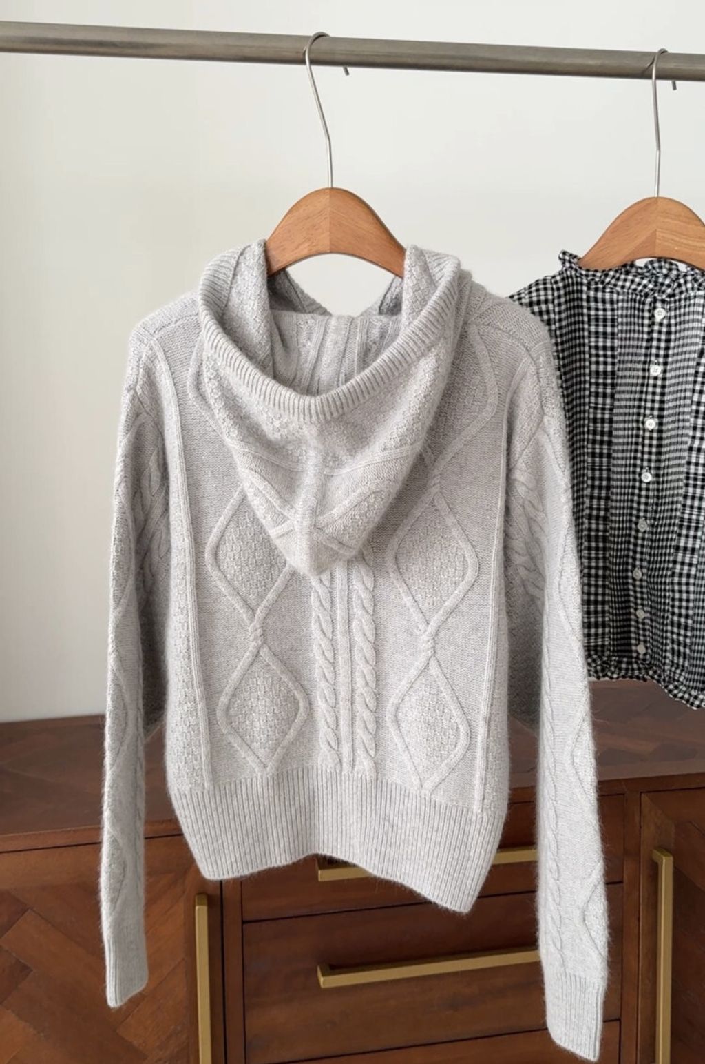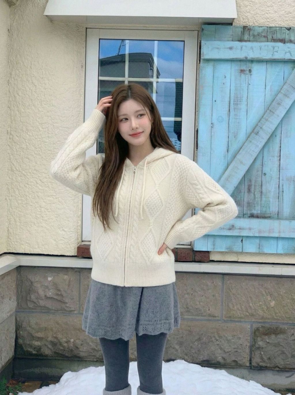 正韓 甜美設計感菱格浣熊羊毛針織小外套*灰象牙白*【S0125-61】