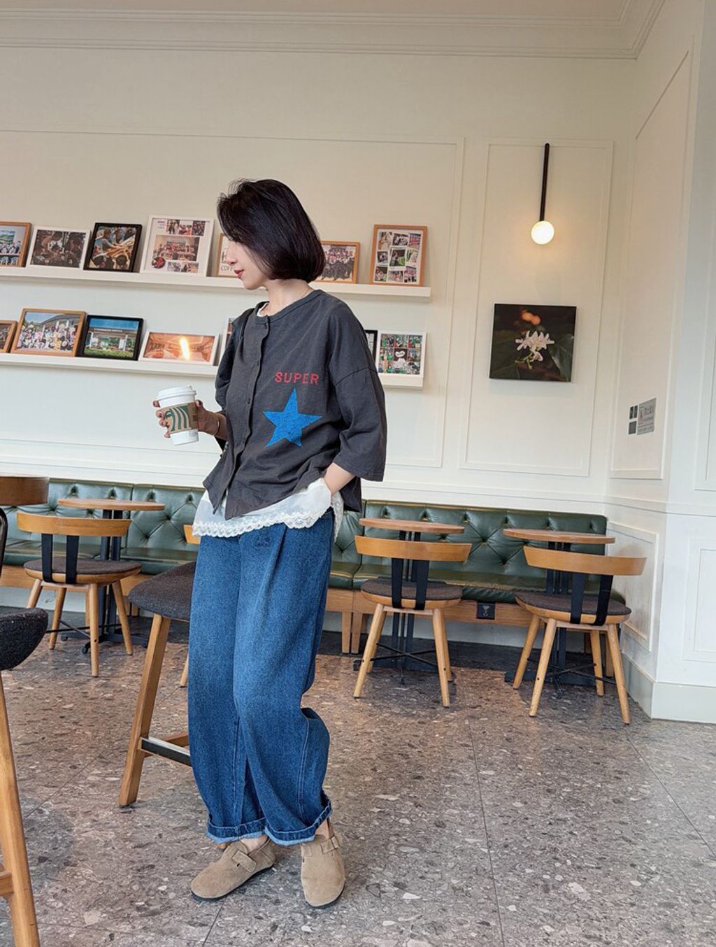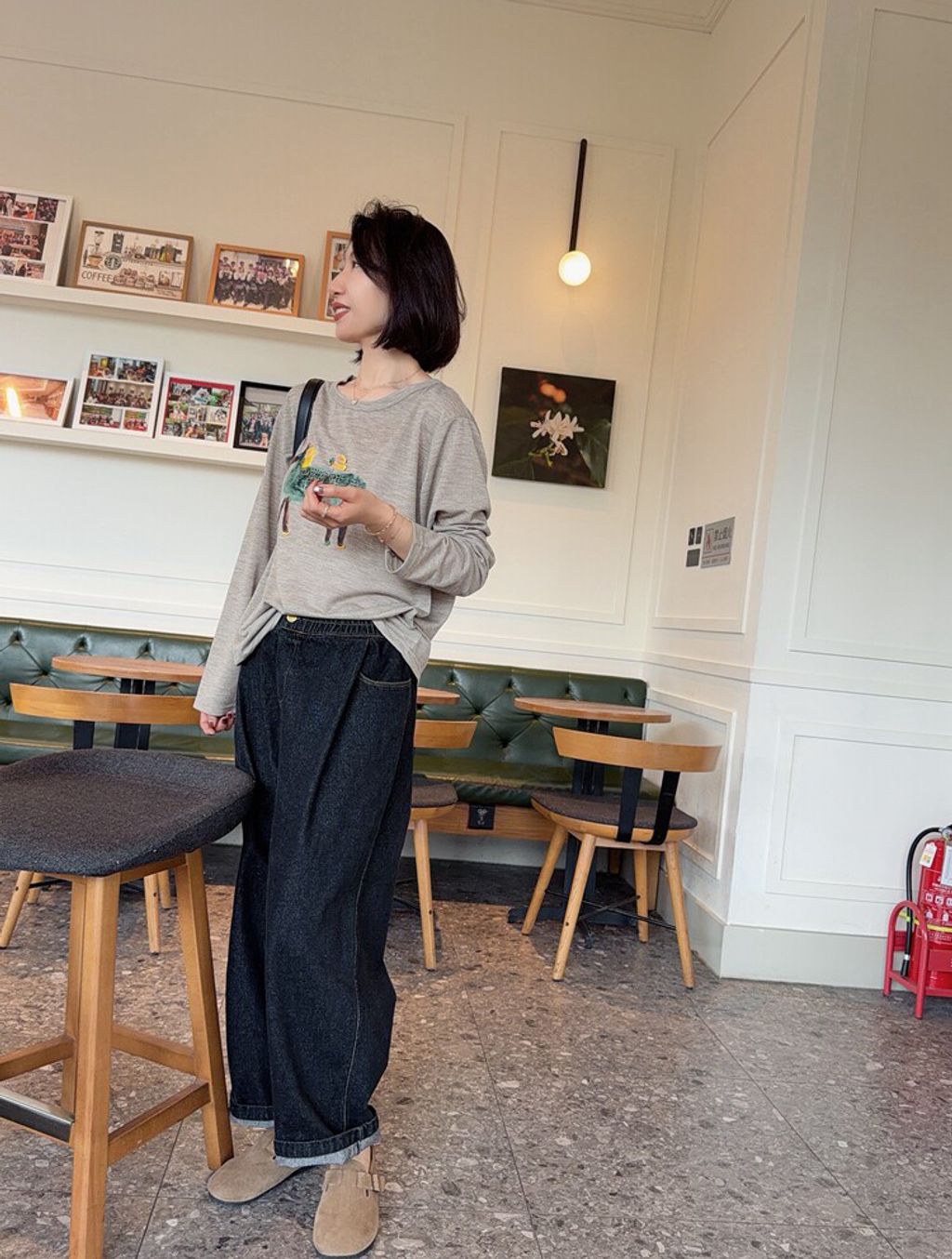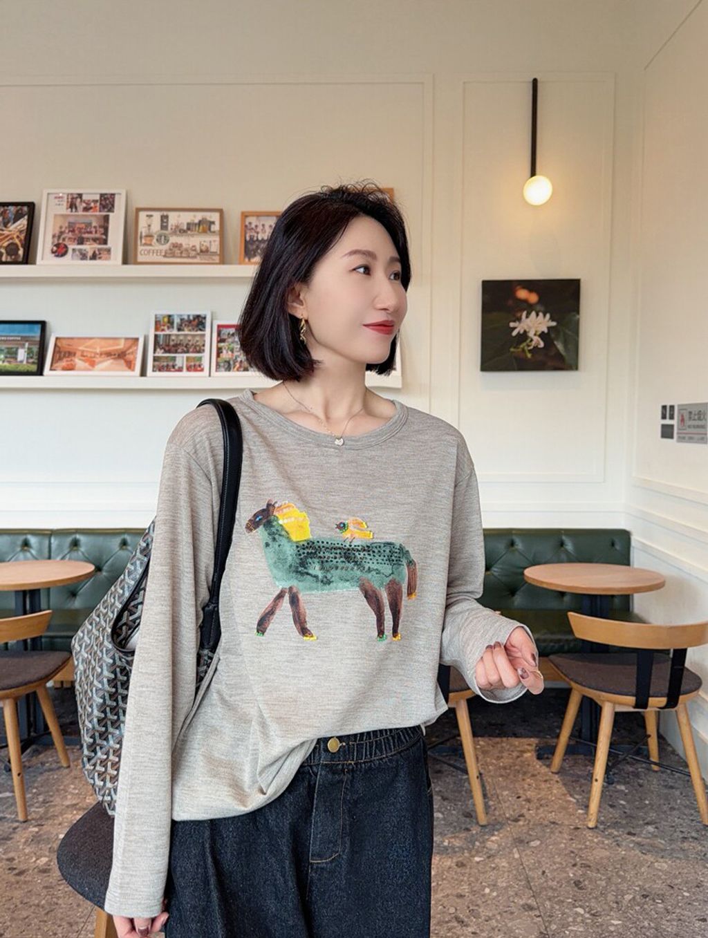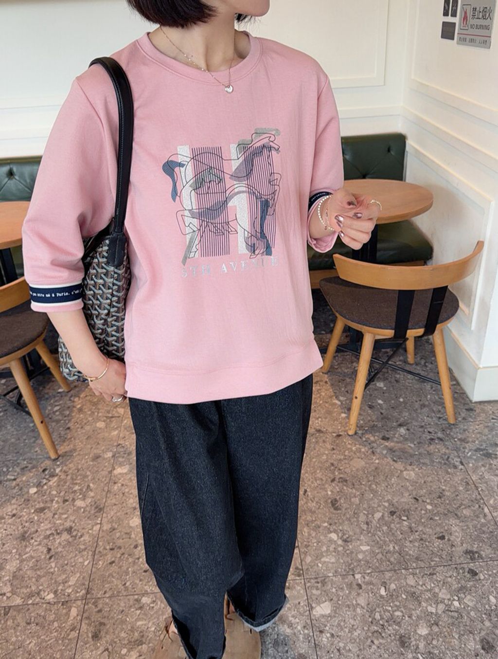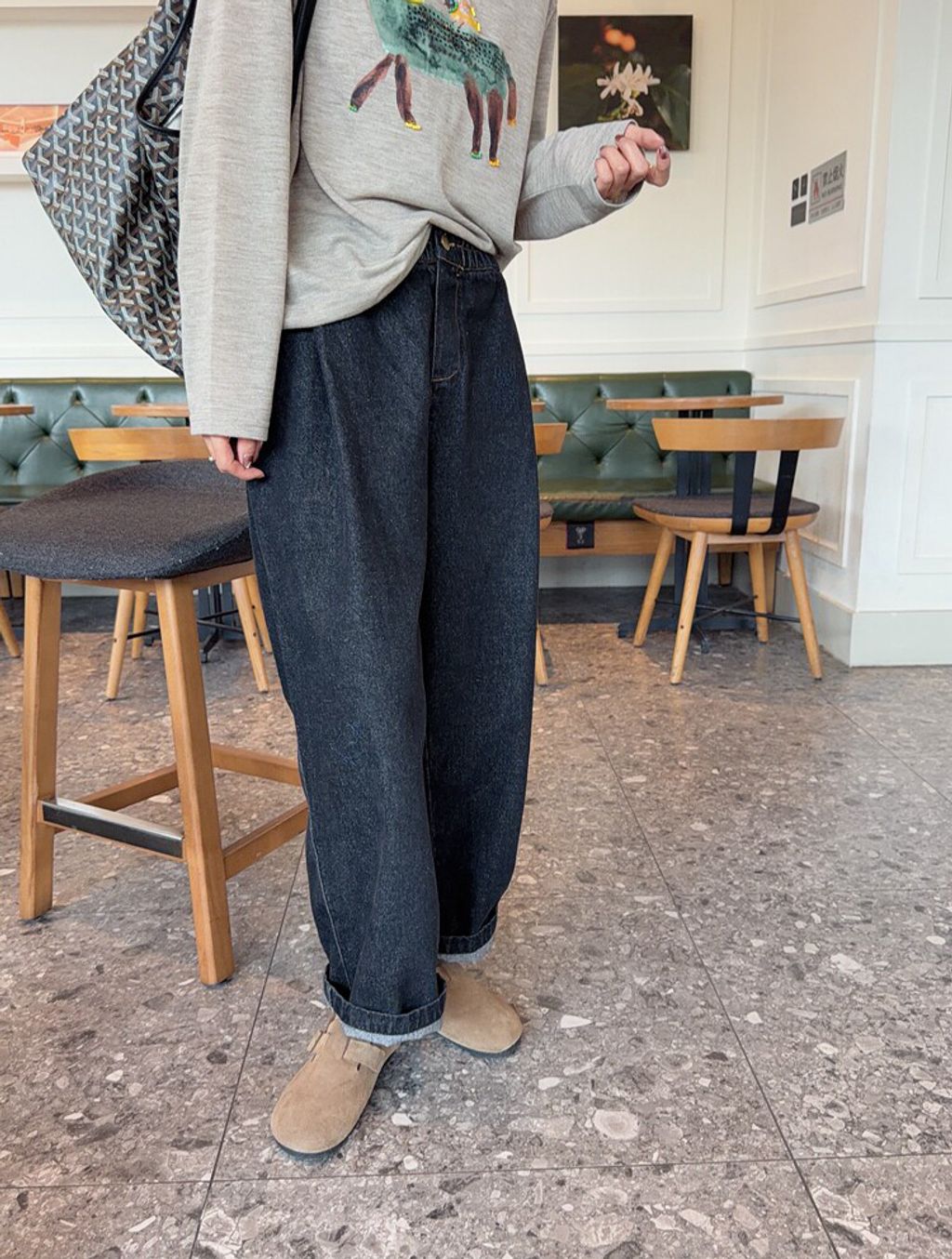 韓 可愛刺繡小貓咪鬆緊腰牛仔長褲*黑藍*【S0412-55】