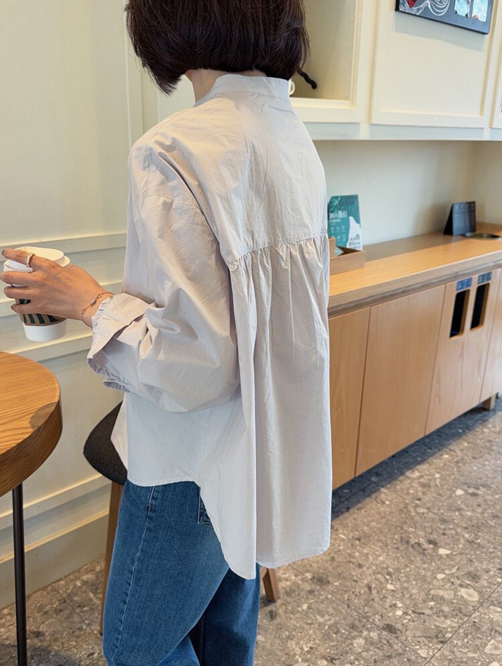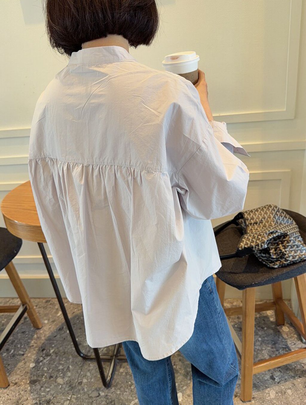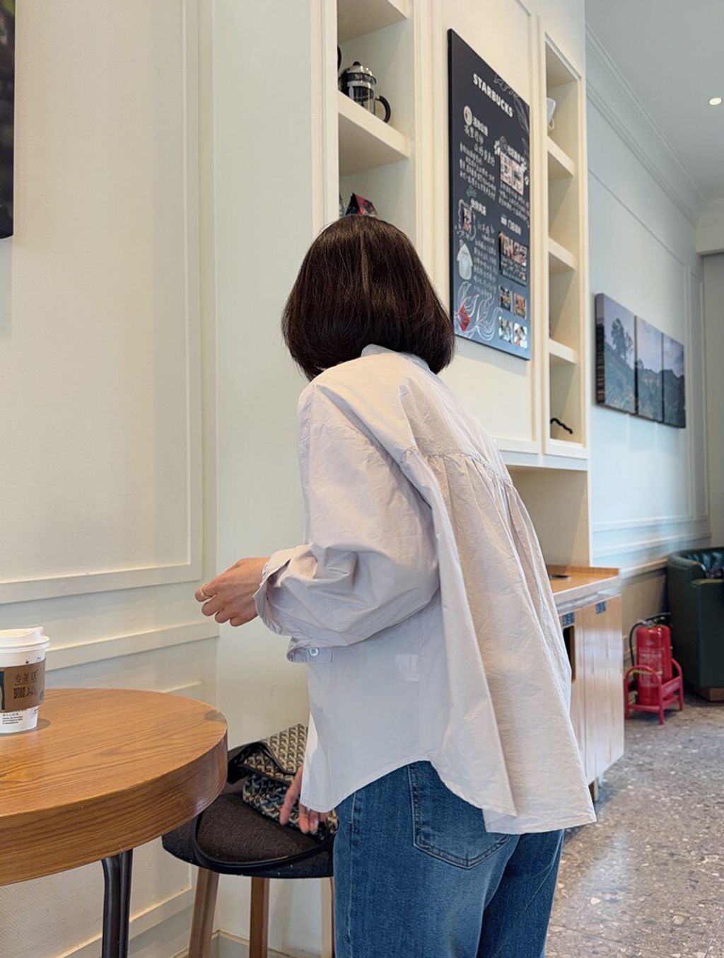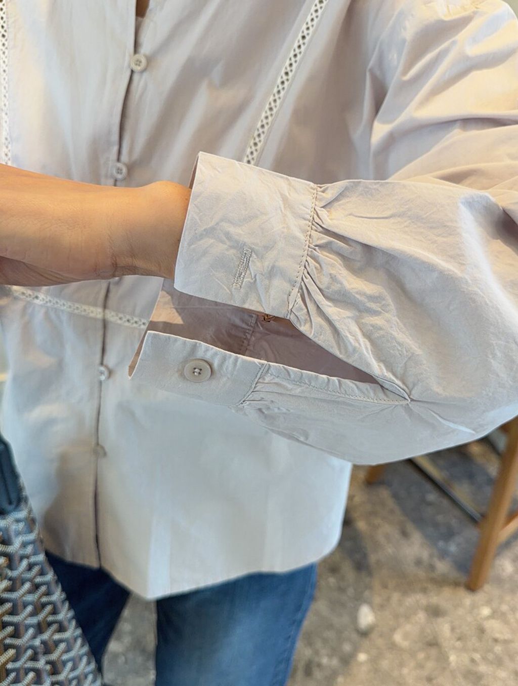 韓 唯美鏤空蕾絲拼接寬鬆感襯衫*淺灰*【S0412-59】