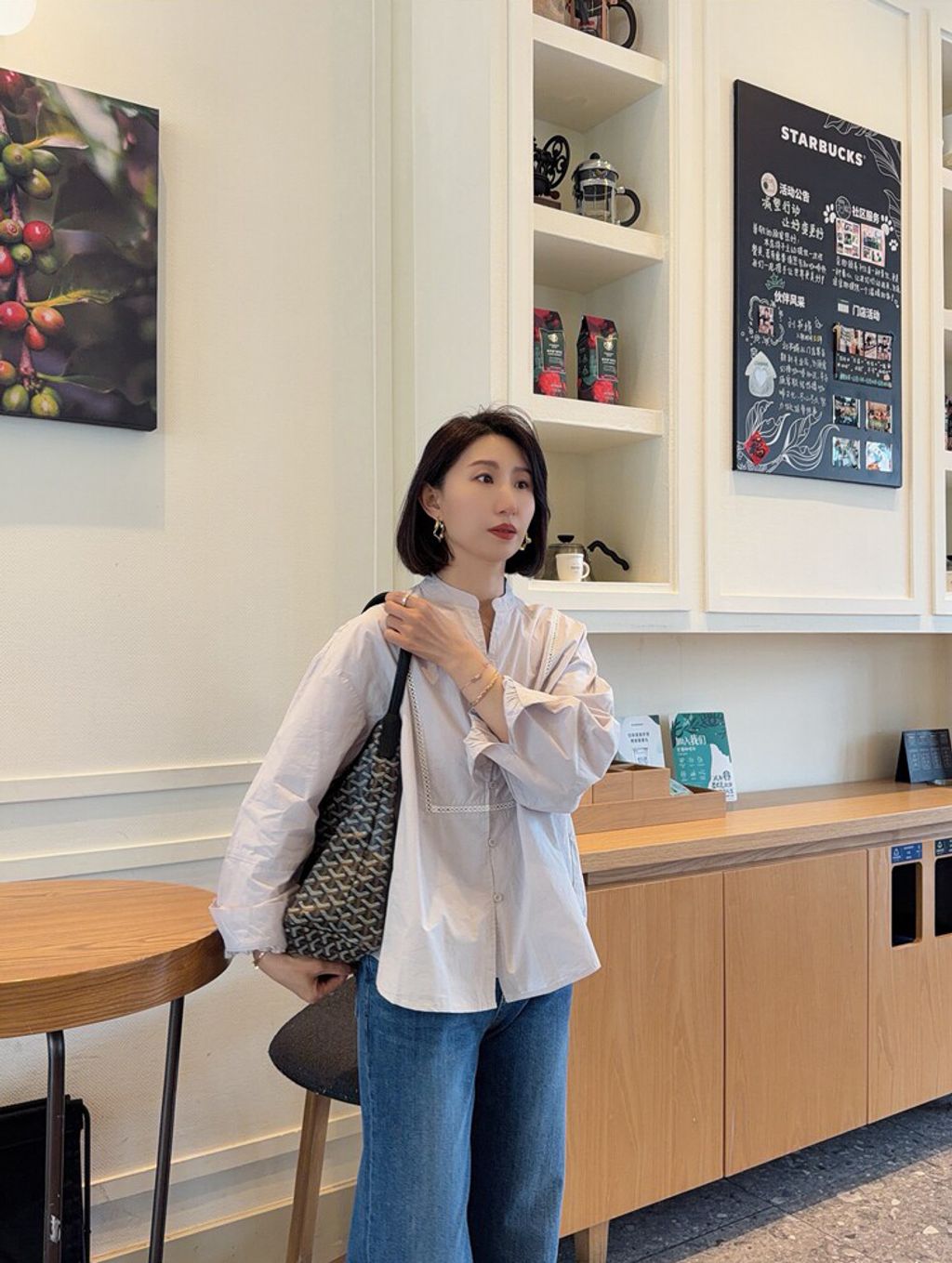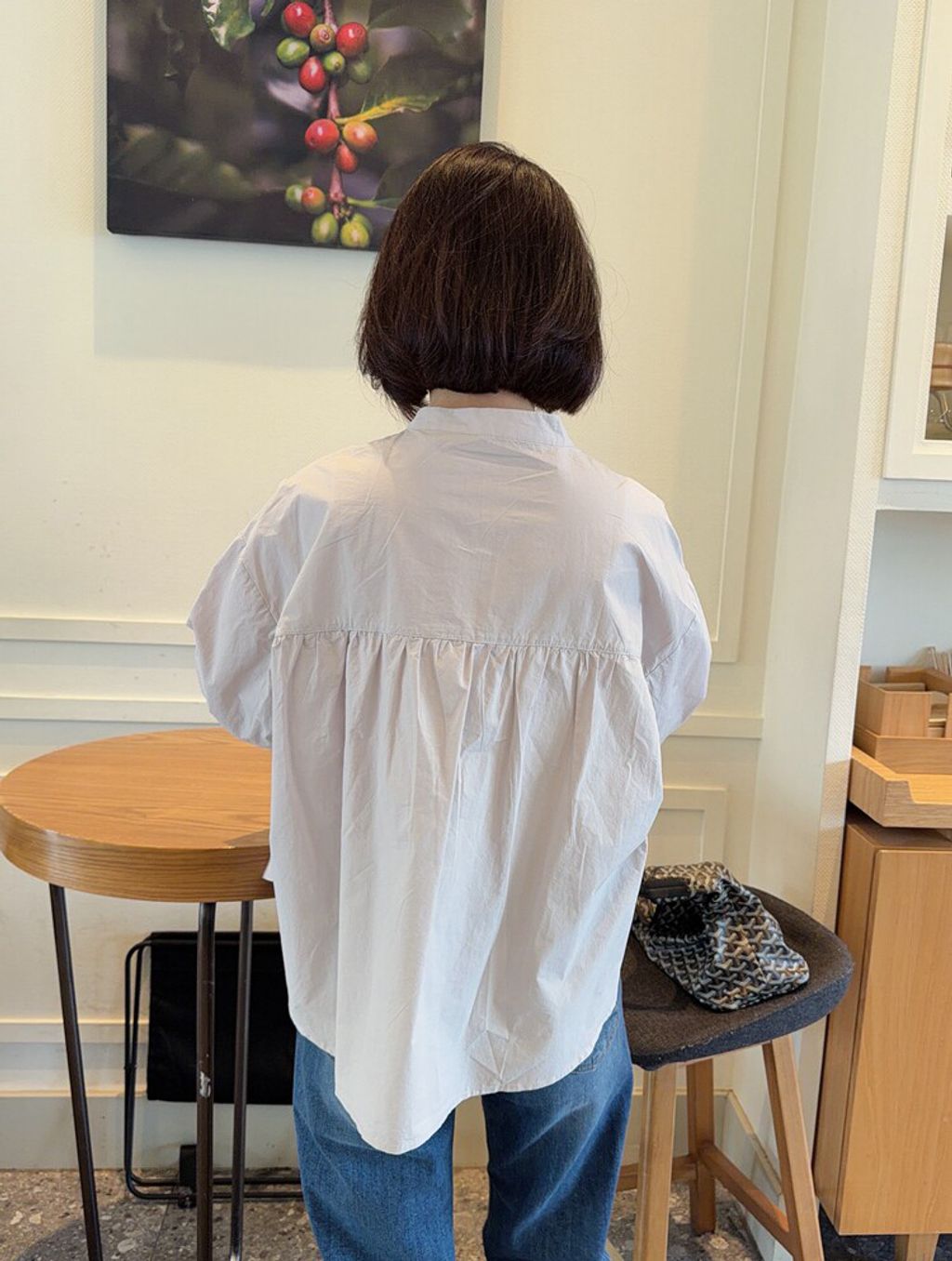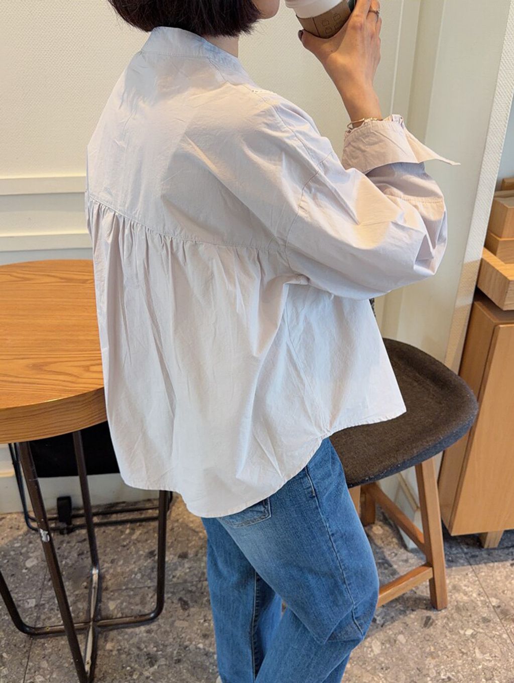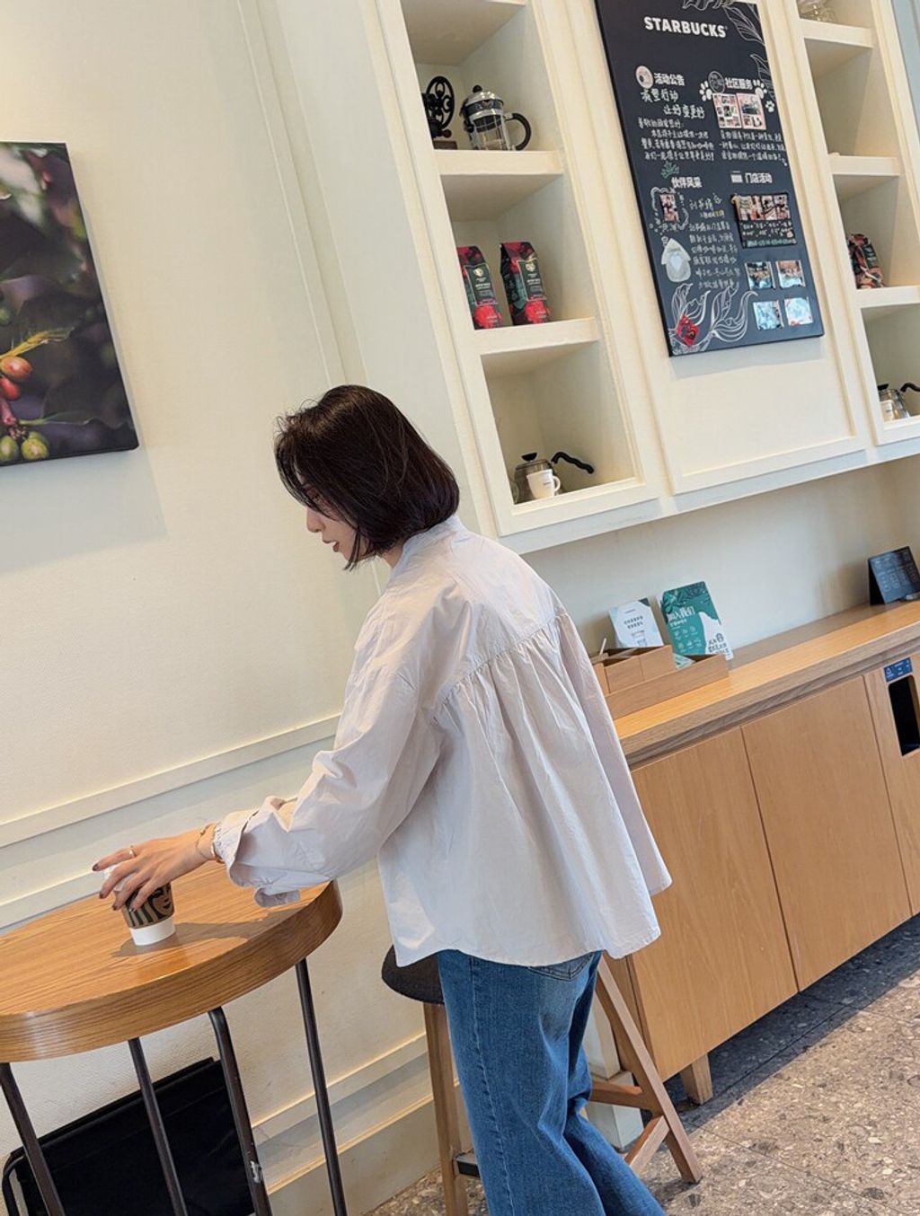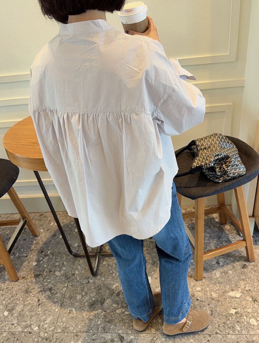 韓 唯美鏤空蕾絲拼接寬鬆感襯衫*淺灰*【S0412-59】