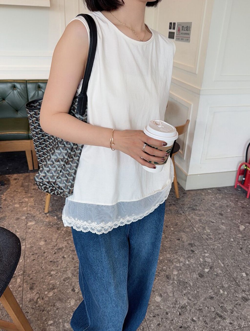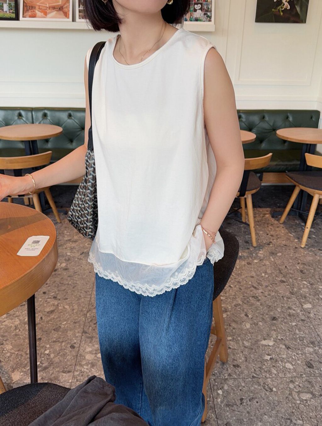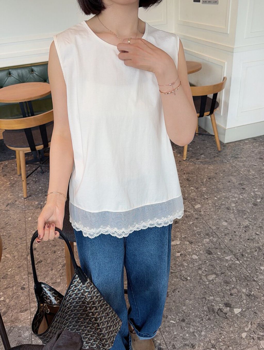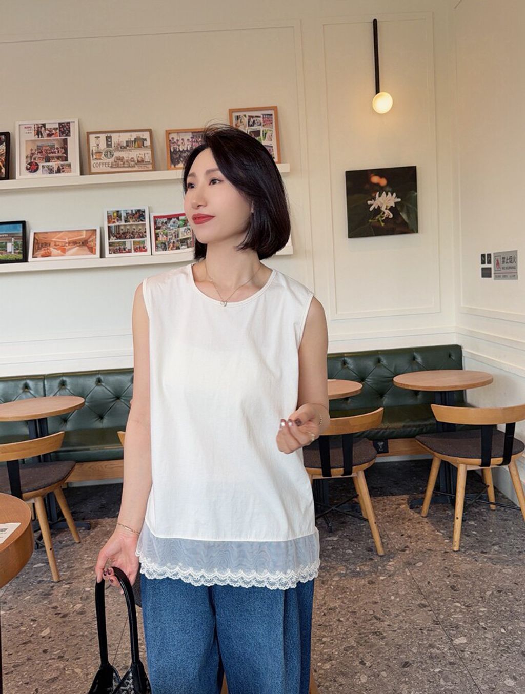 韓 甜美網紗蕾絲拼接長版背心*米*【S0412-58】
