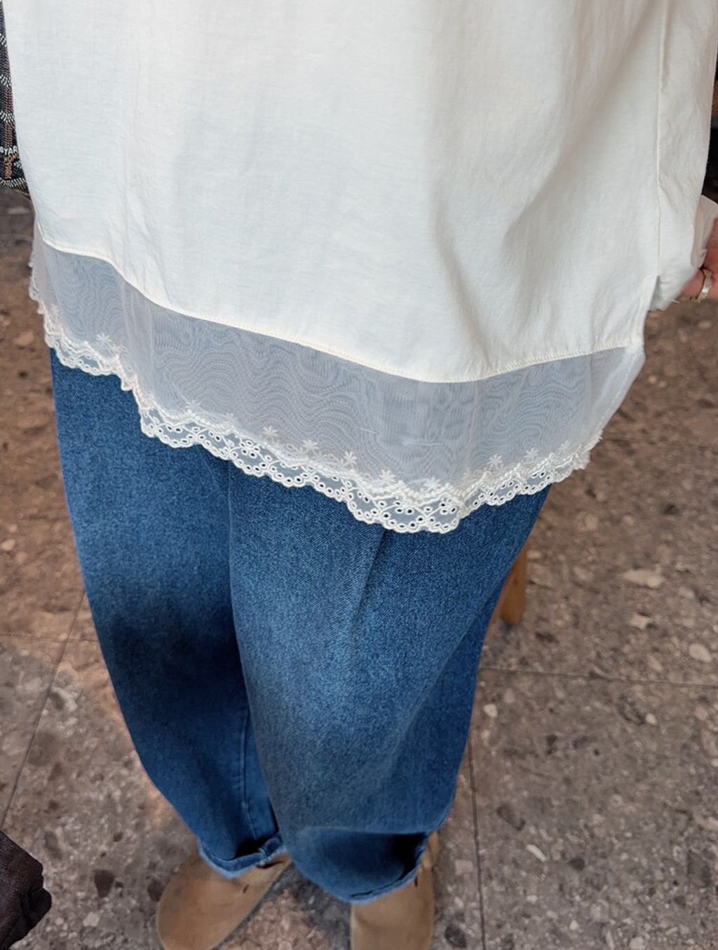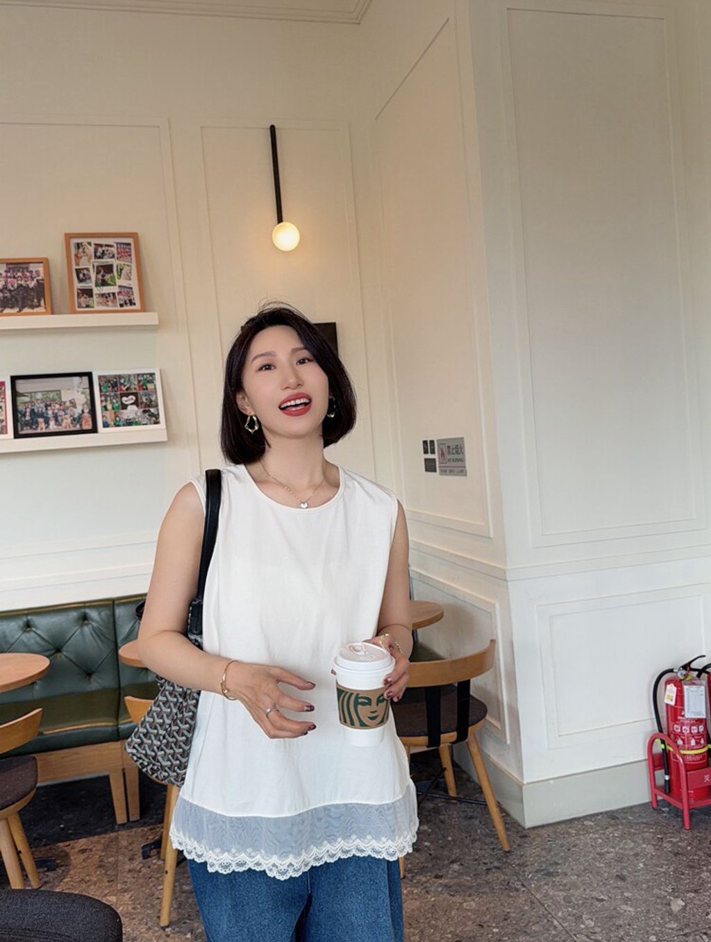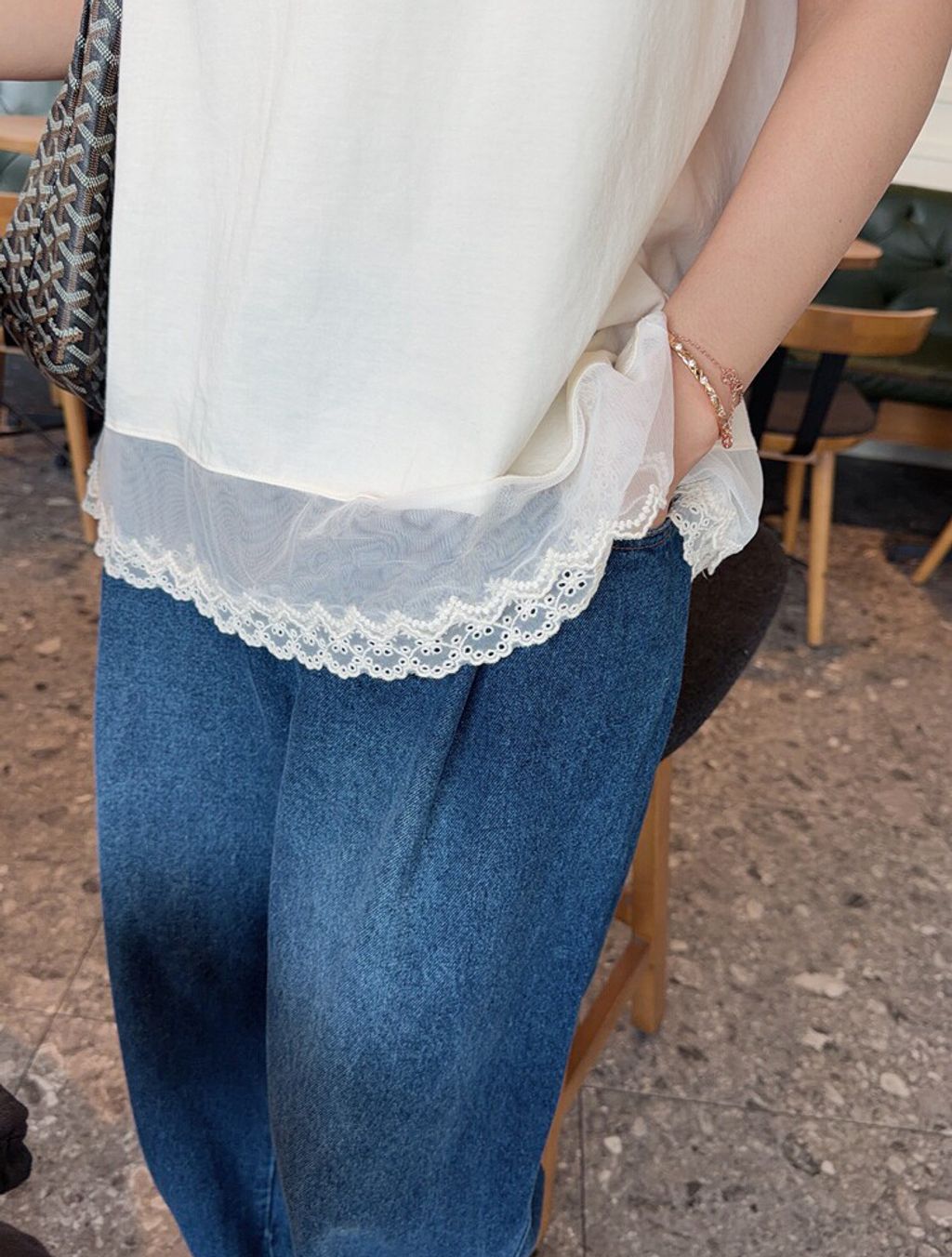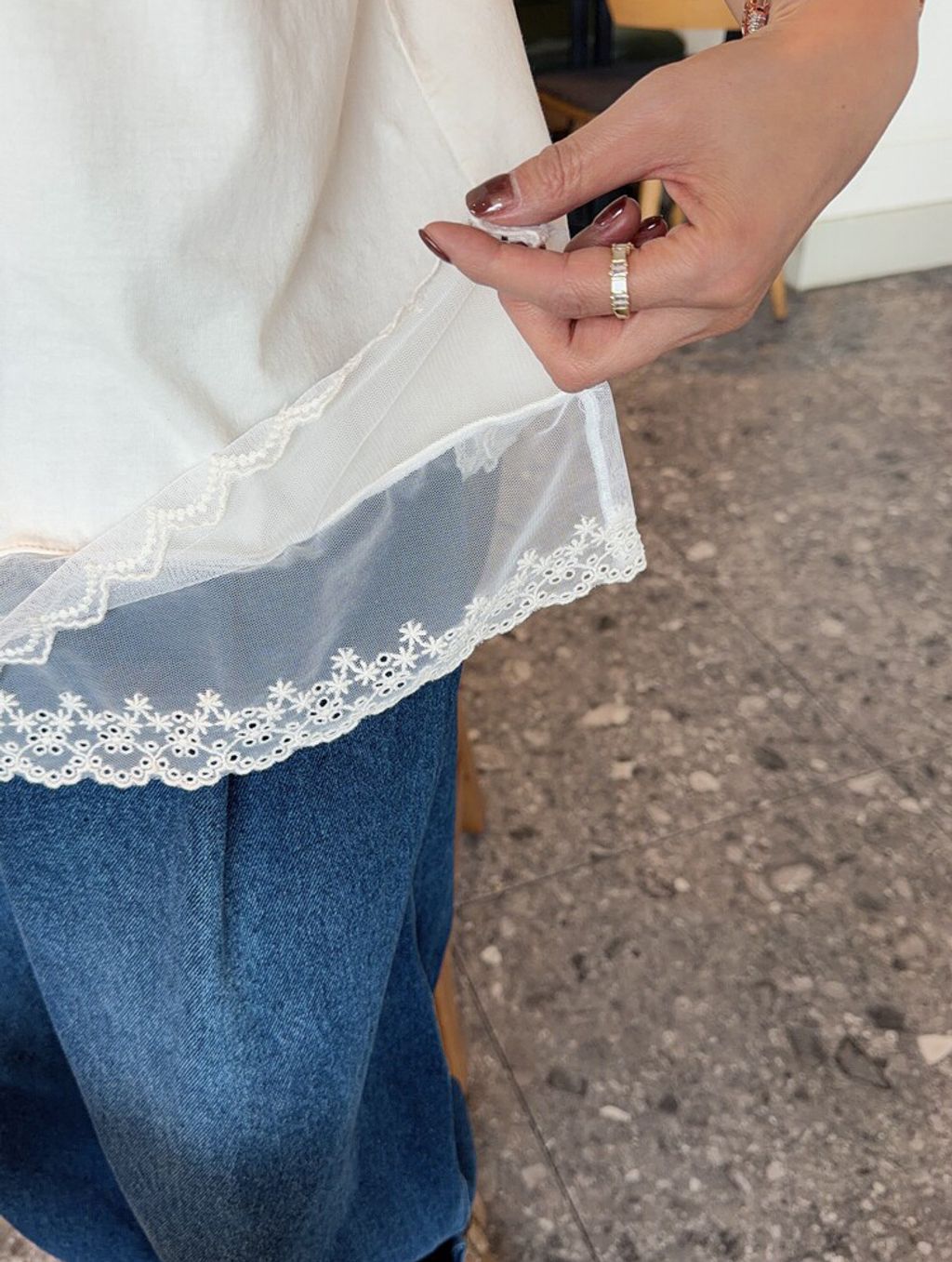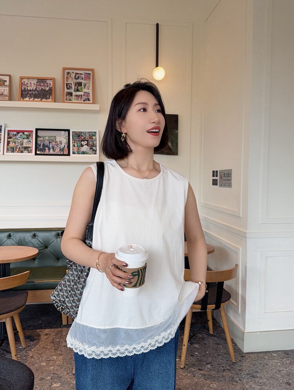 韓 甜美網紗蕾絲拼接長版背心*米*【S0412-58】