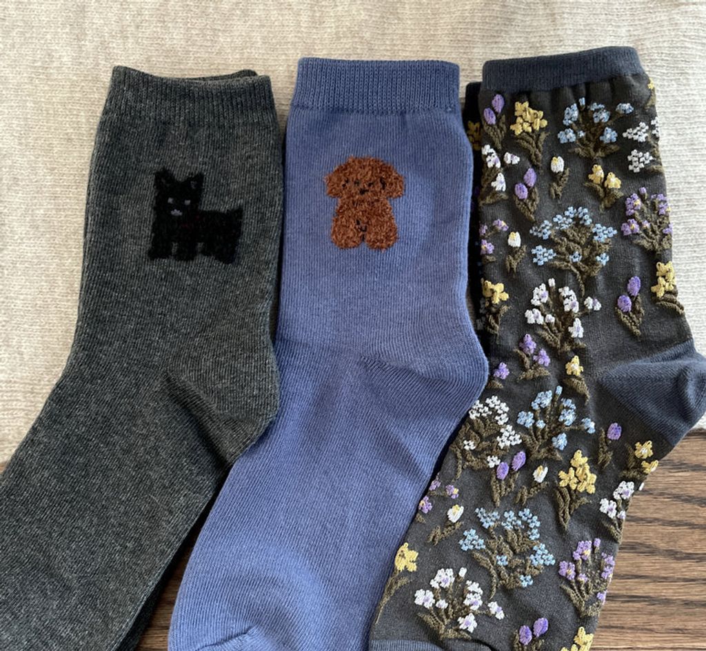 正韓 可愛毛毛動物唯美碎花短襪*圖片色*【N1010-170】