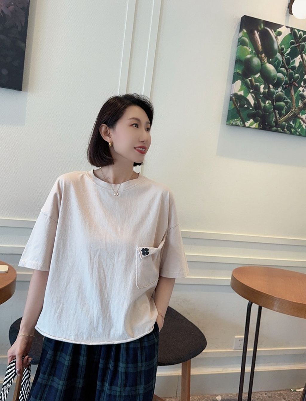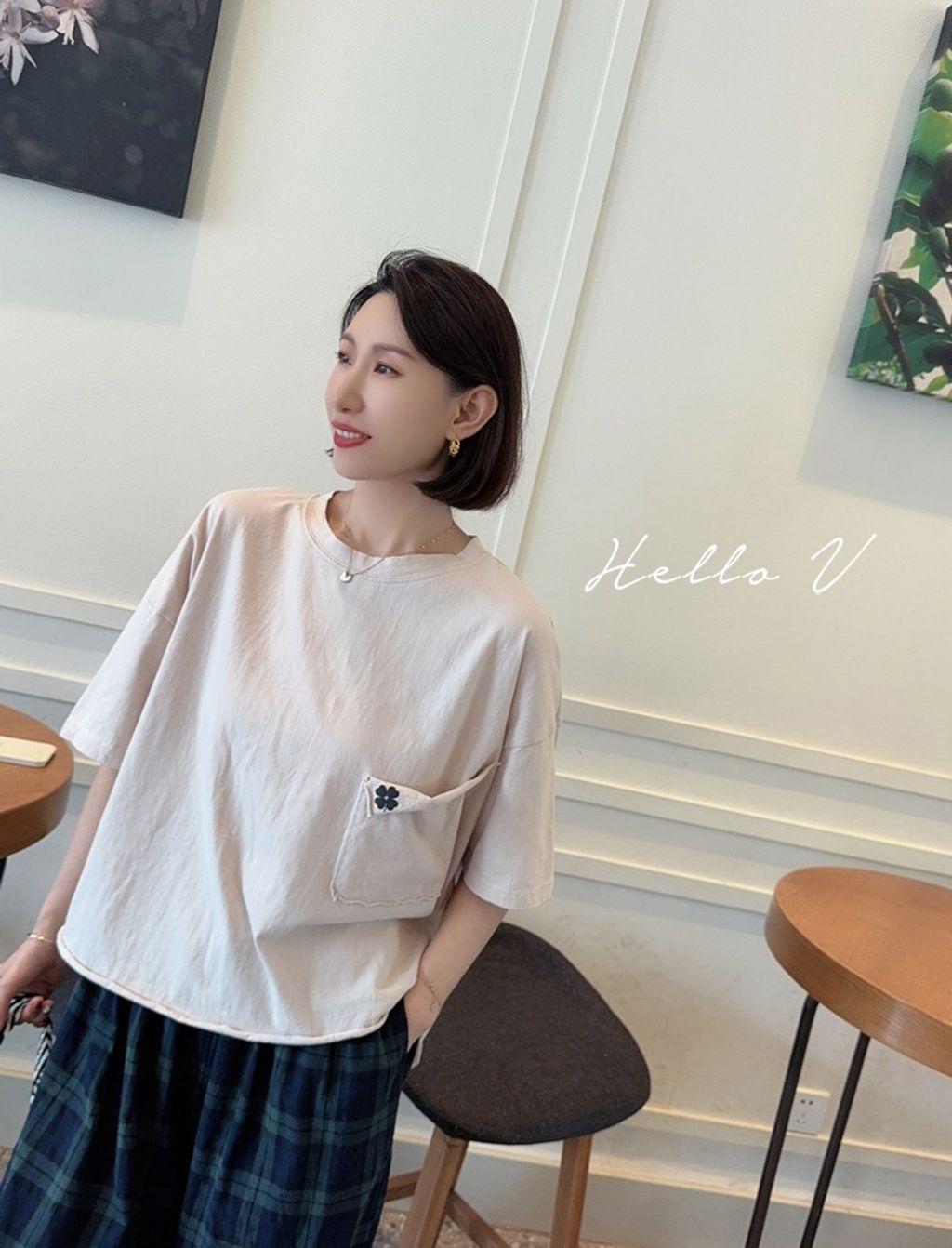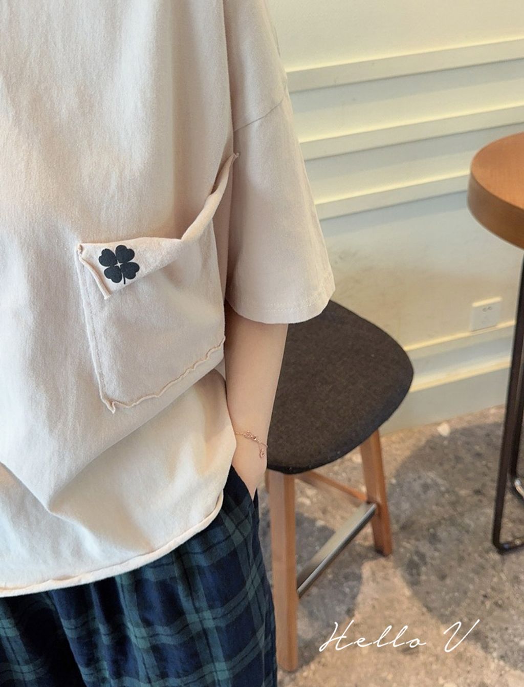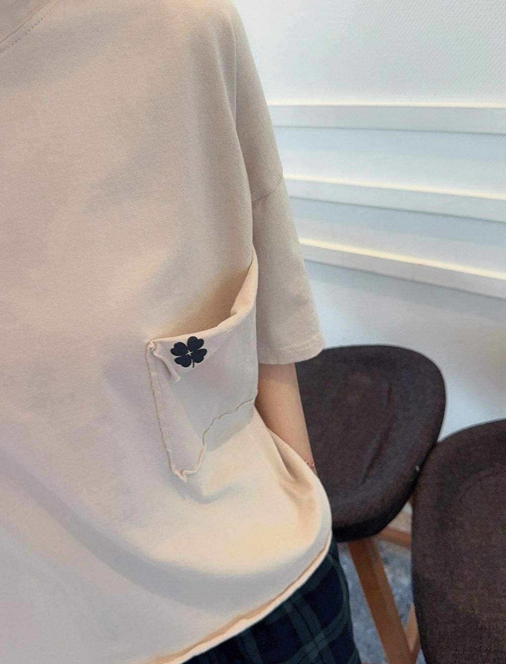 正韓 可愛幸運草口袋設計寬鬆感短T*米白*【N0731-94】