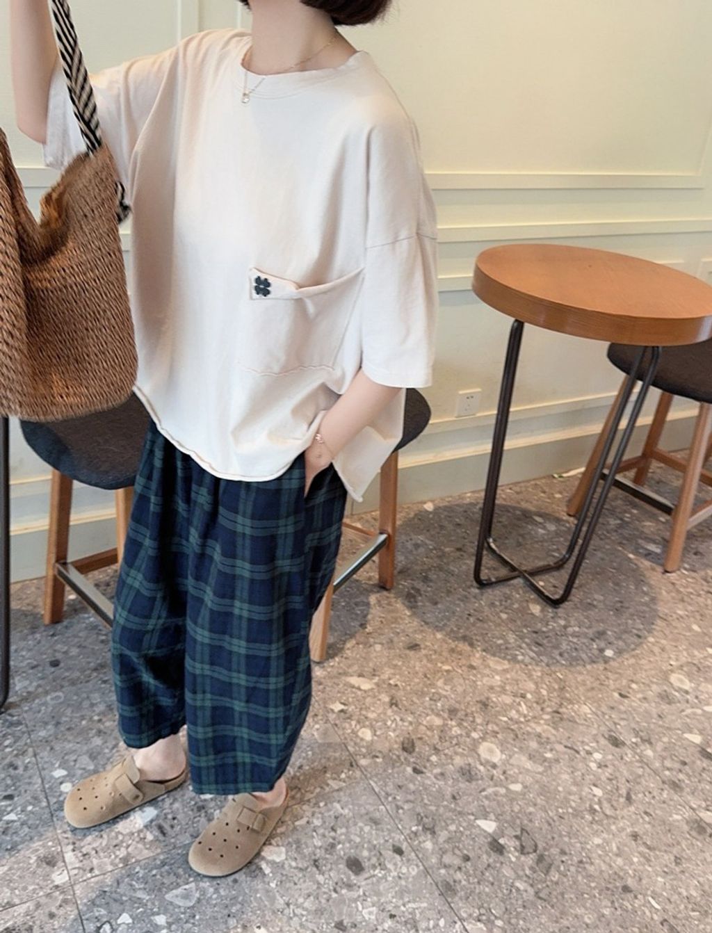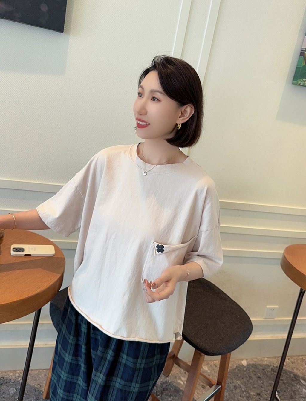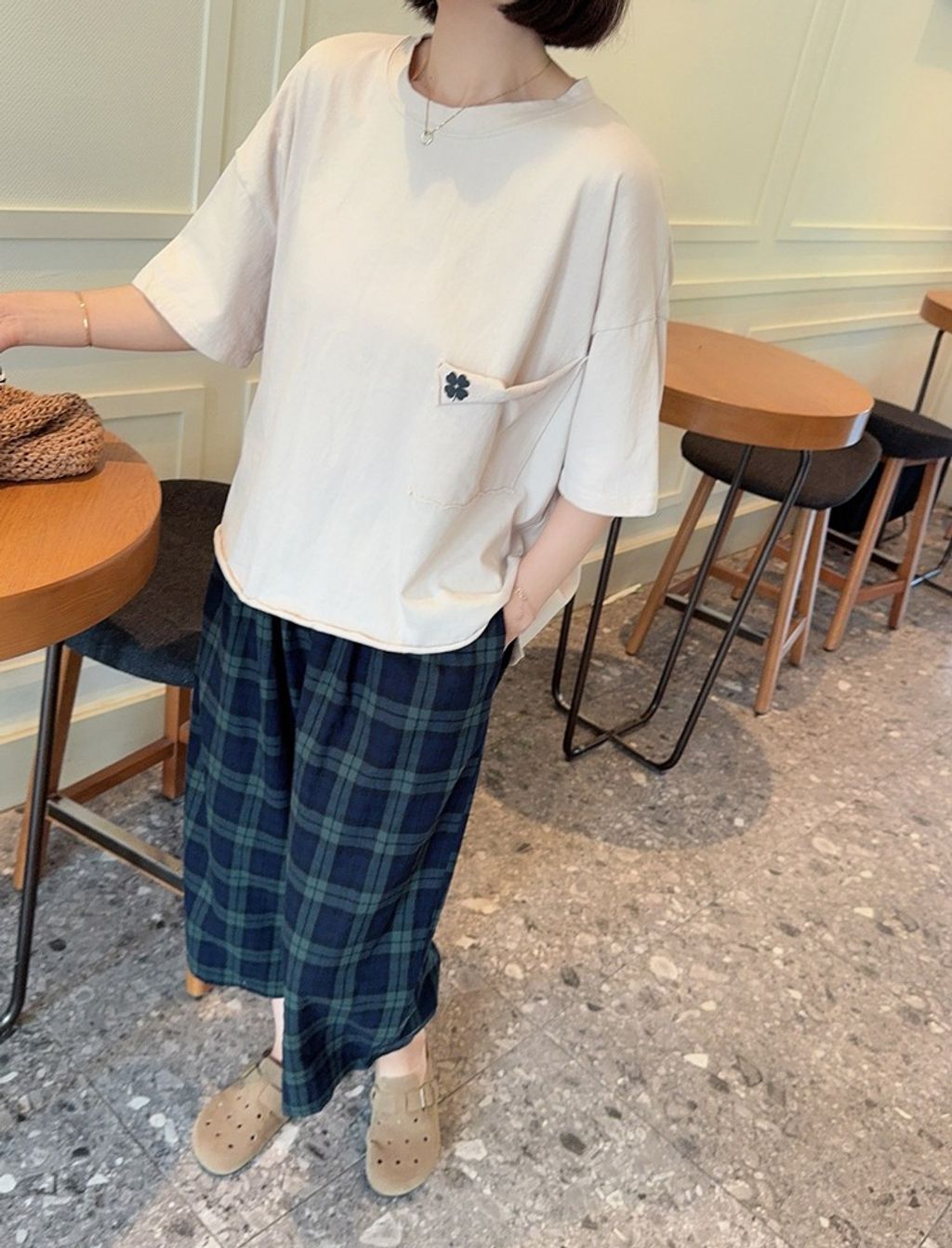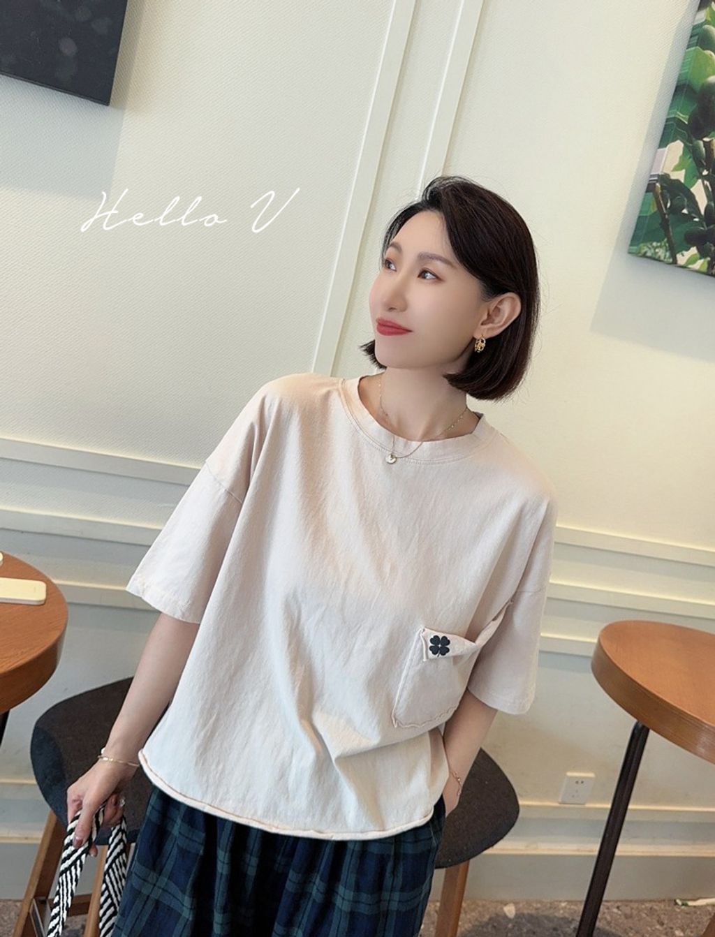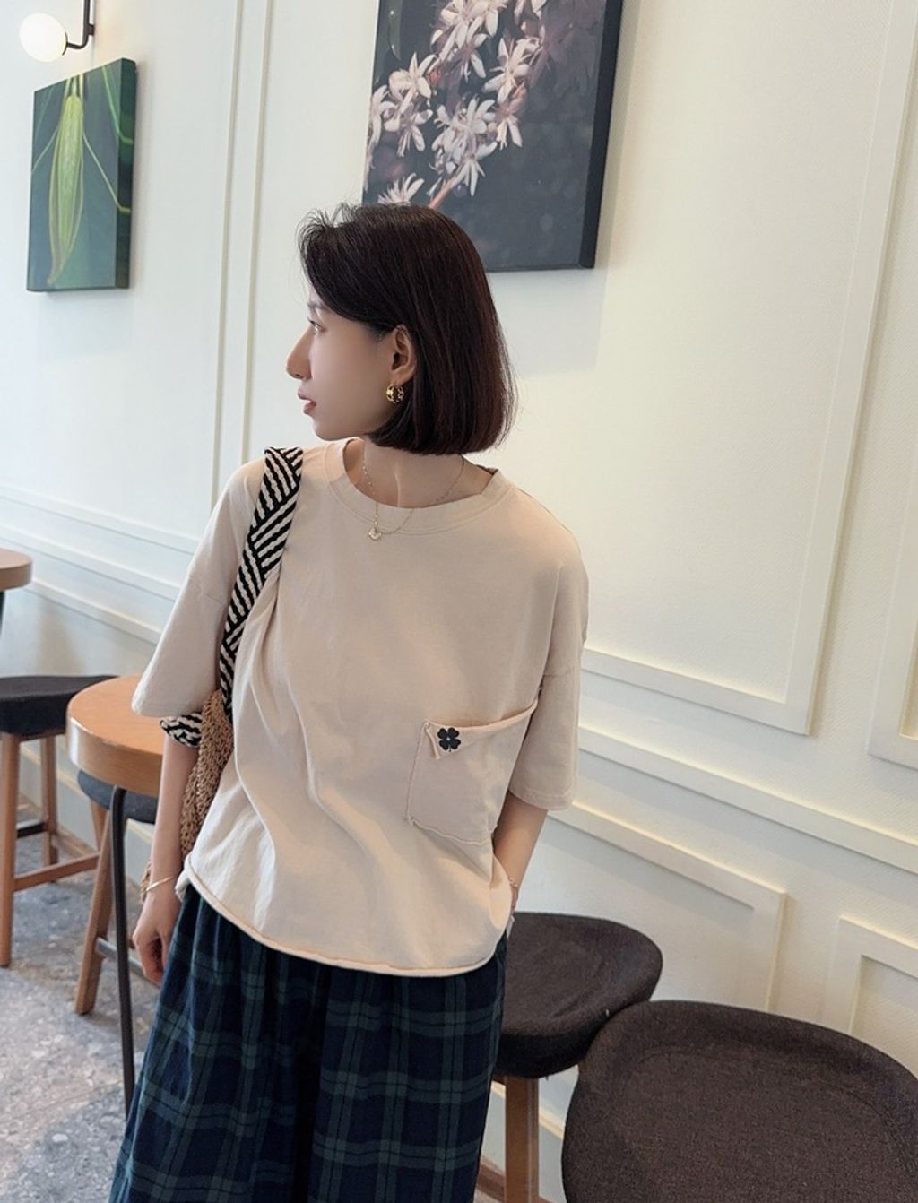 正韓 可愛幸運草口袋設計寬鬆感短T*米白*【N0731-94】